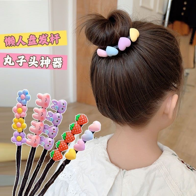 儿童盘发杆2024新款头饰女孩丸子头懒人盘发神器女童扎头宝宝发饰