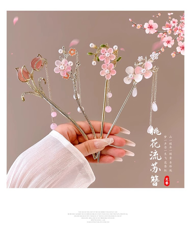 甜美少女心粉色发簪女儿童国风马面裙汉服簪子感发钗盘发头饰