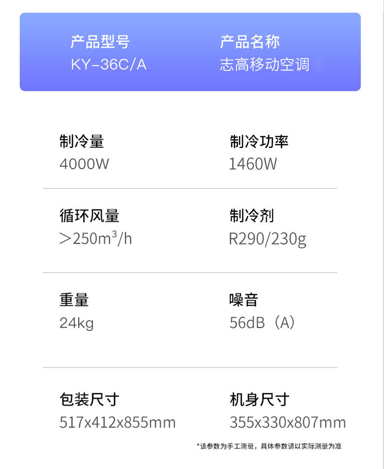 志高移动空调家用单冷暖小空调无外机两用立式可移动空调一体机