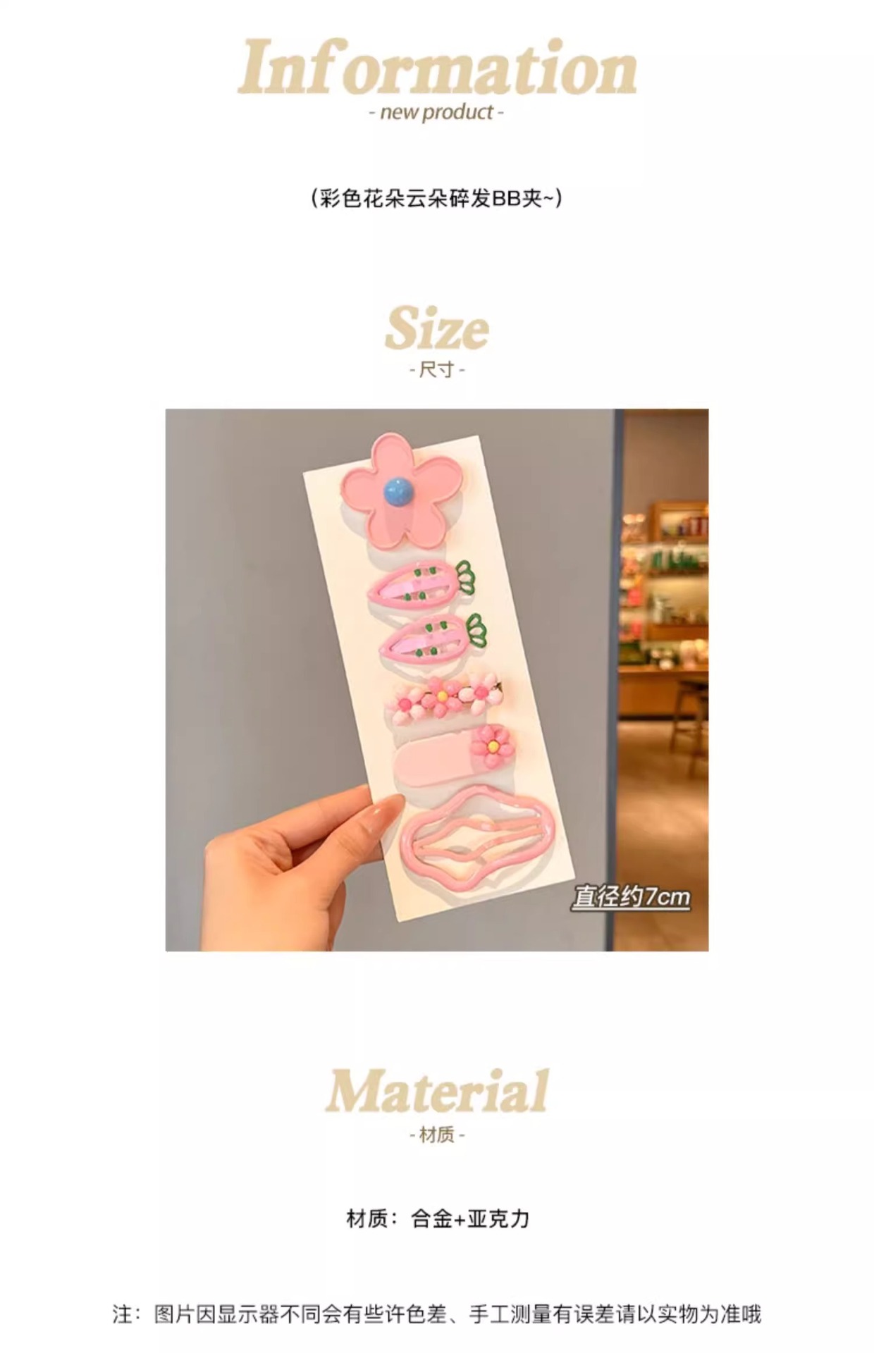 儿童多巴胺彩色发夹女童可爱花朵侧边刘海发卡后脑勺碎发bb夹头饰