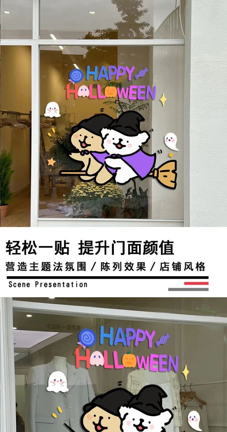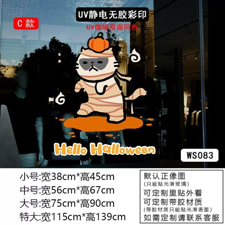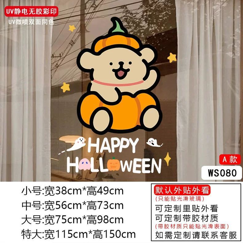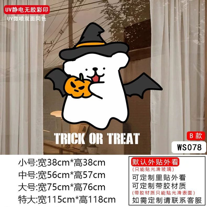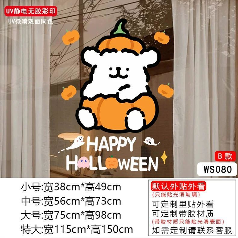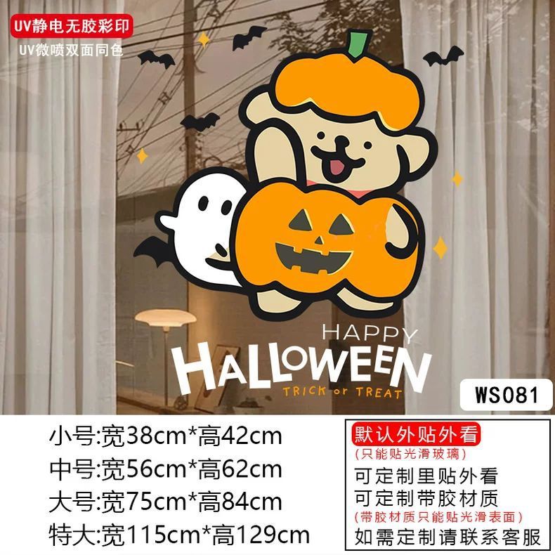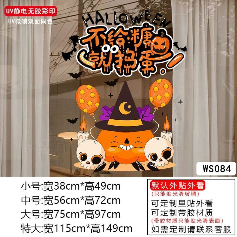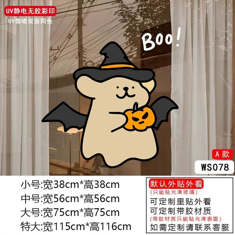 万圣节装饰商场玻璃贴卡通场景布置氛围窗花节日橱窗玻璃贴纸静电