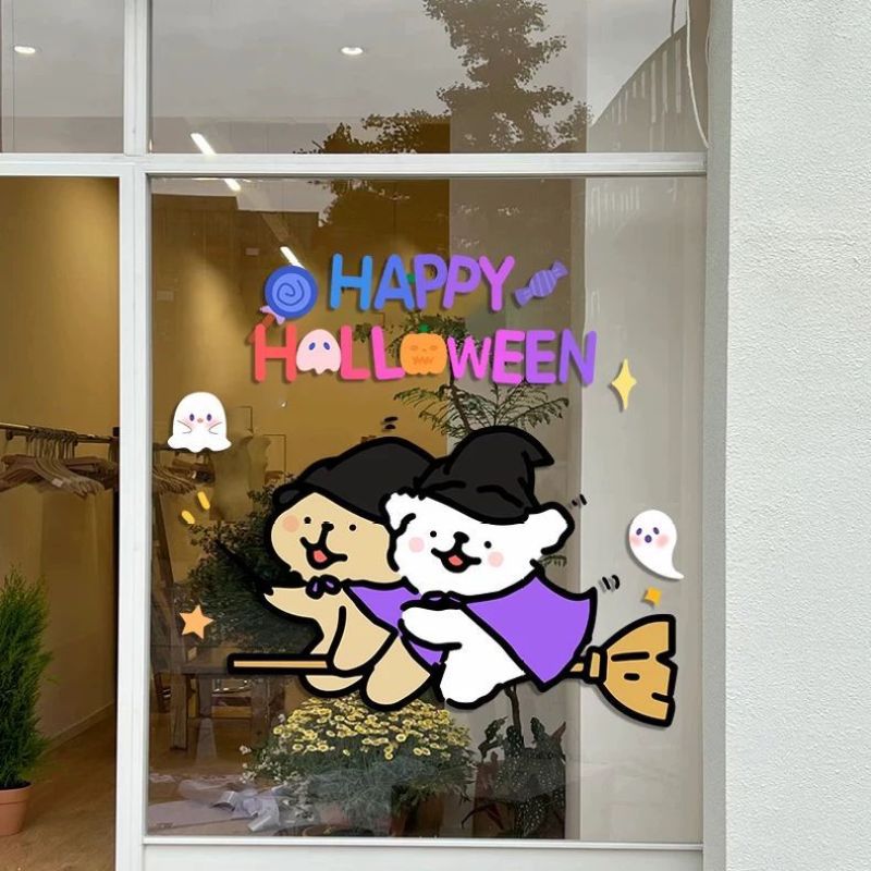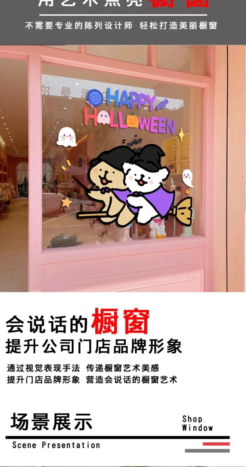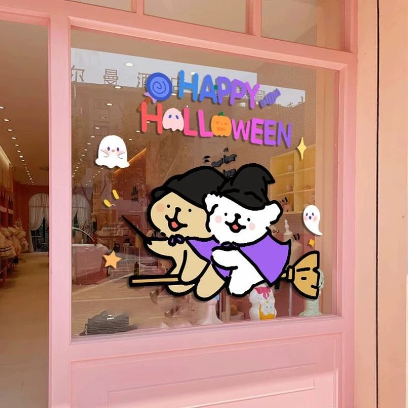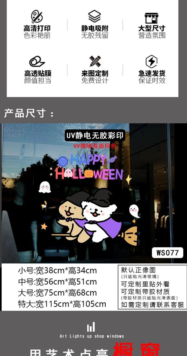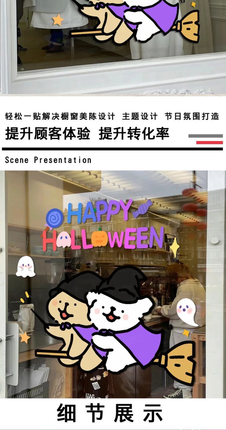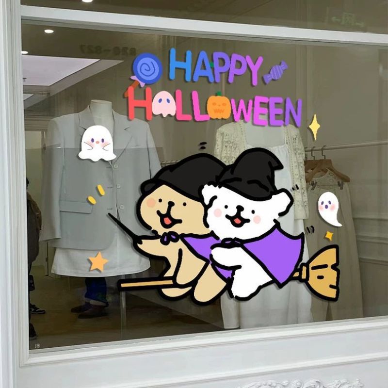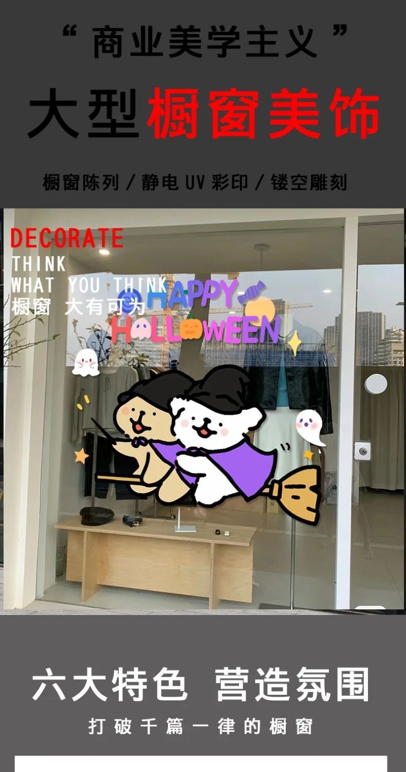 万圣节装饰商场玻璃贴卡通场景布置氛围窗花节日橱窗玻璃贴纸静电