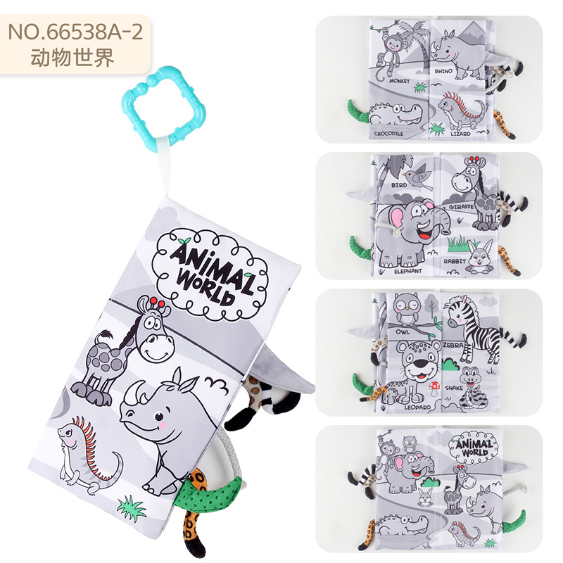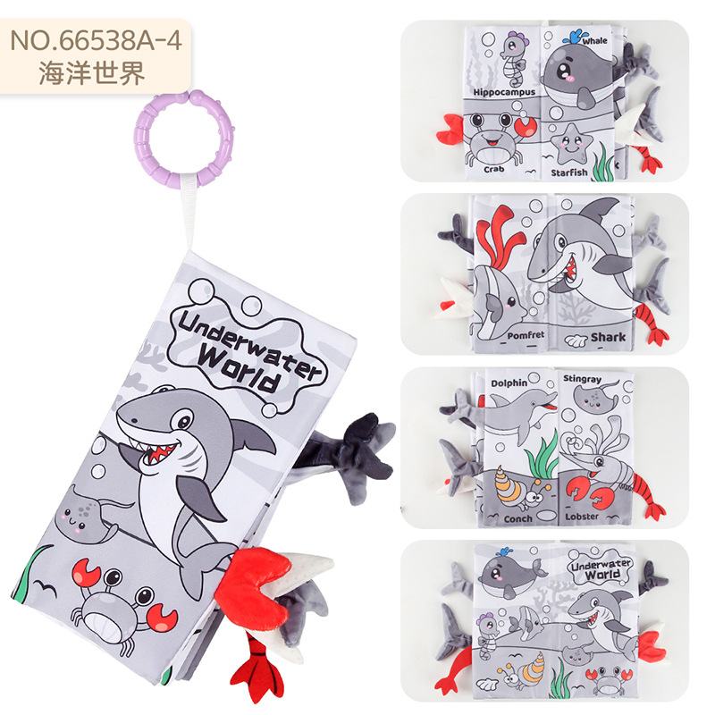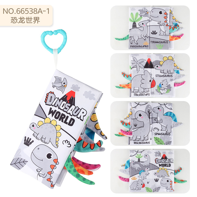 婴幼儿撕不烂可水洗尾巴布书4页8面早教认知恐龙动物海洋布书套装