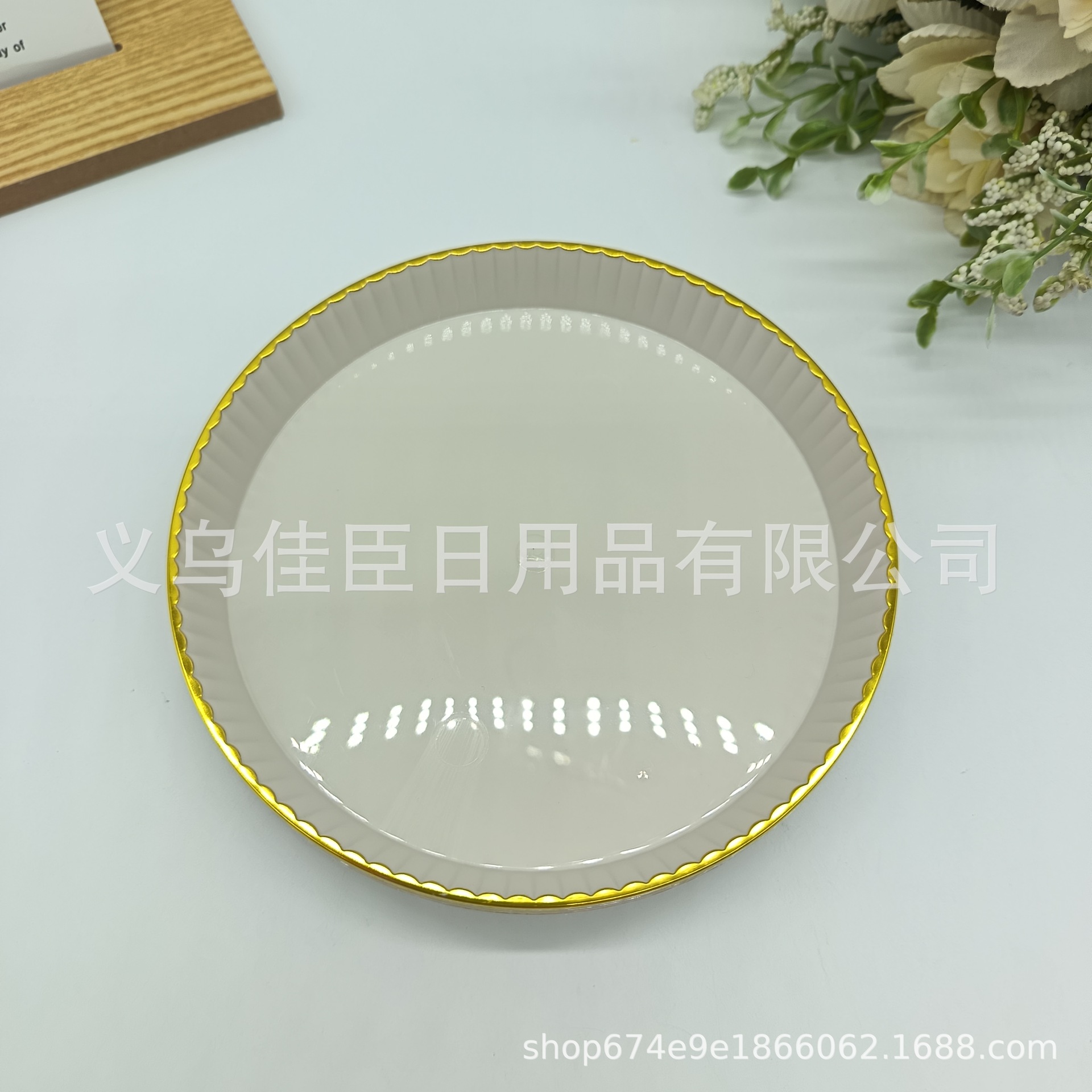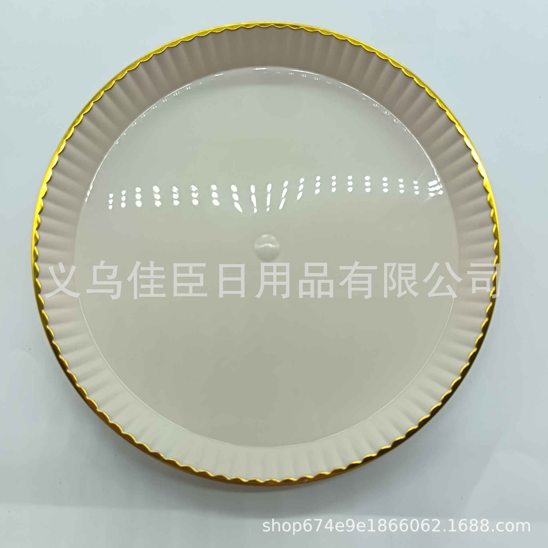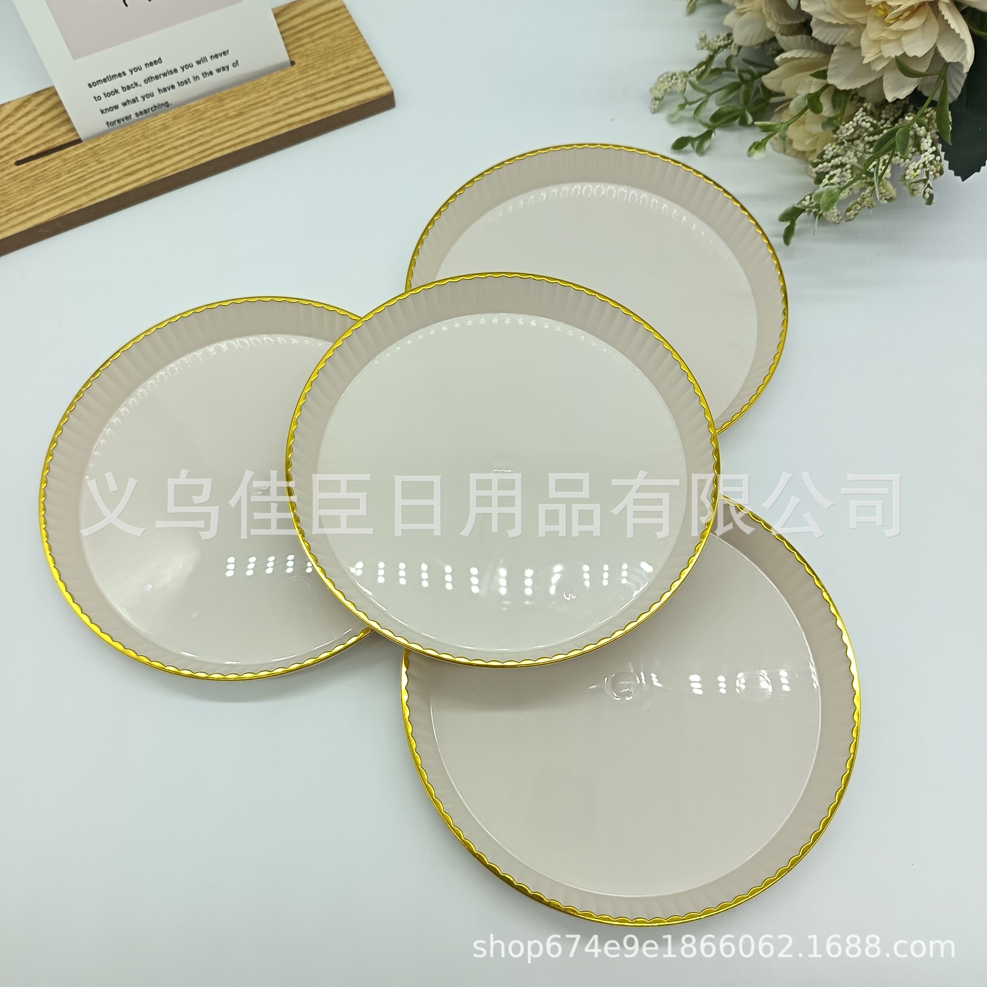 外贸批塑料果盘金边款碟子圆形形状高颜值4个一袋高颜值简约果碟