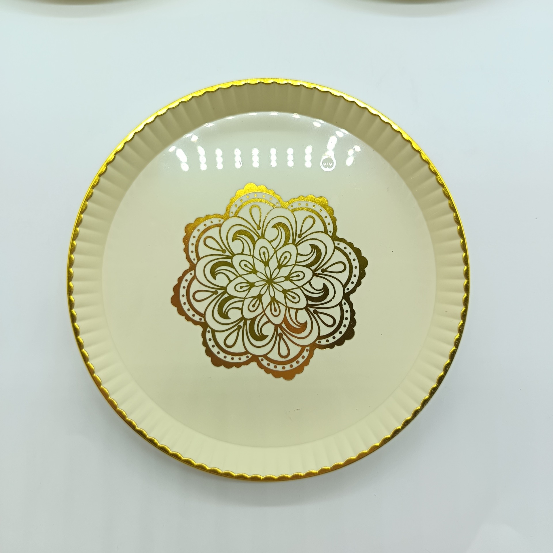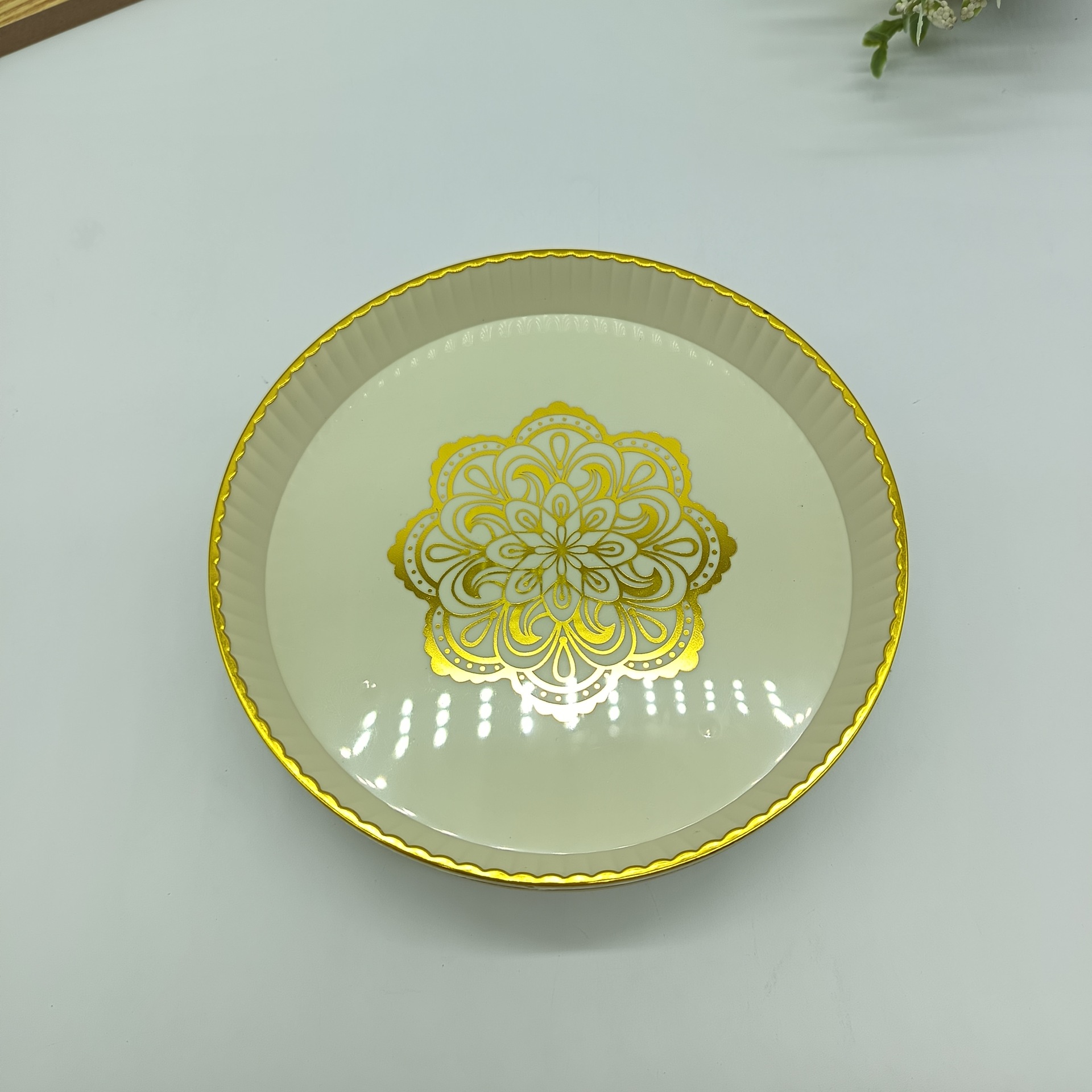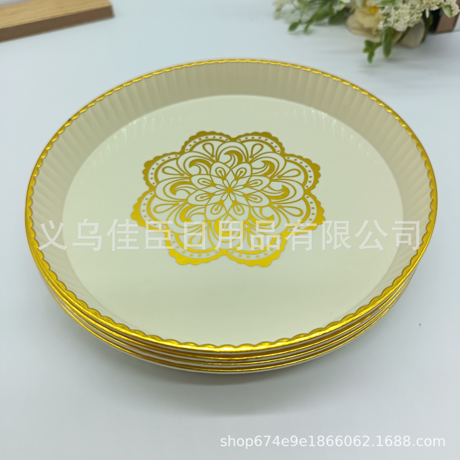 外贸批塑料果盘金边款碟子圆形形状高颜值 4个一袋现代简约干果碟