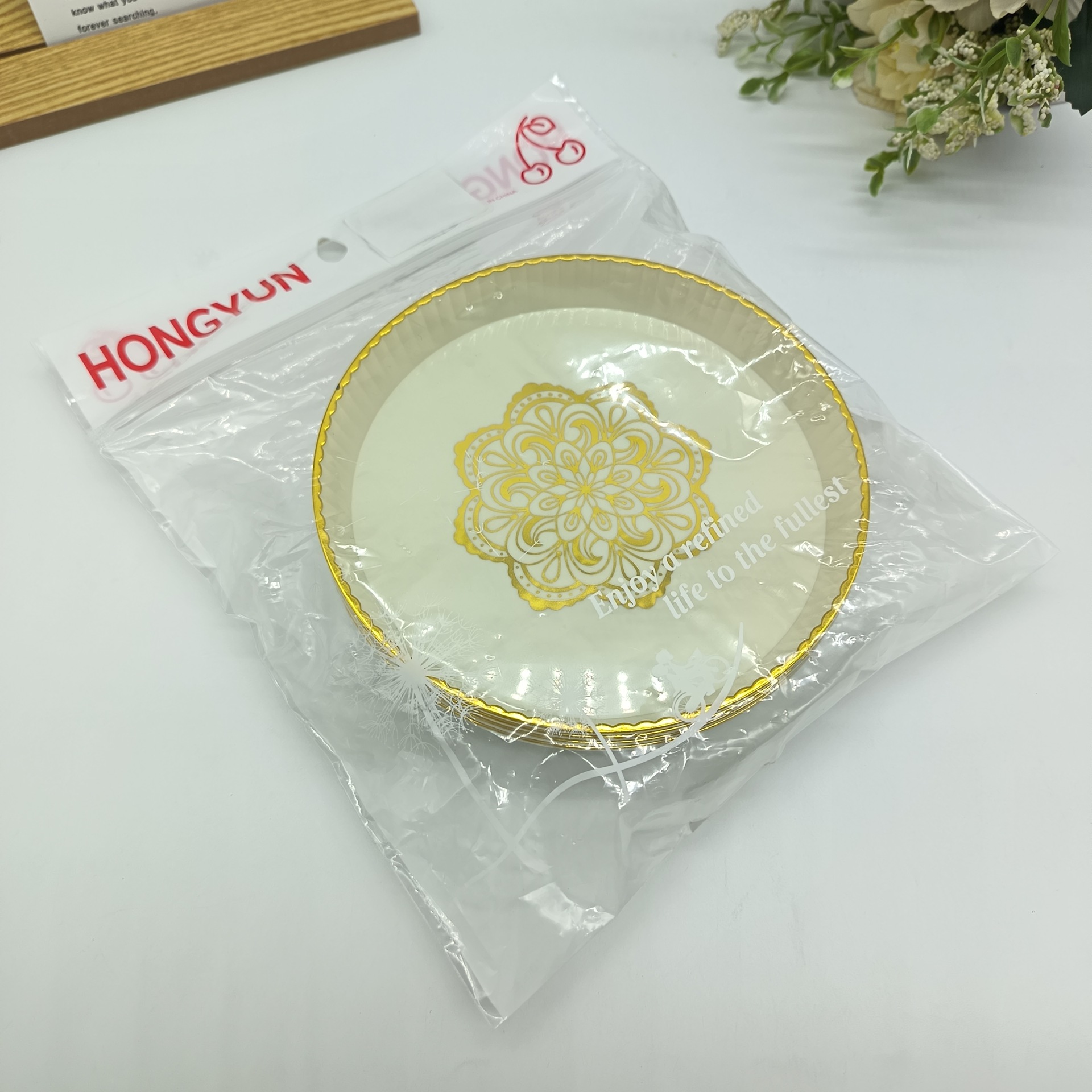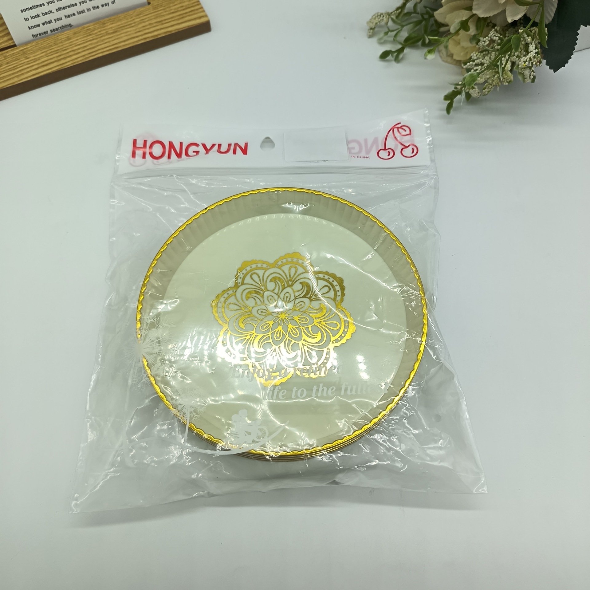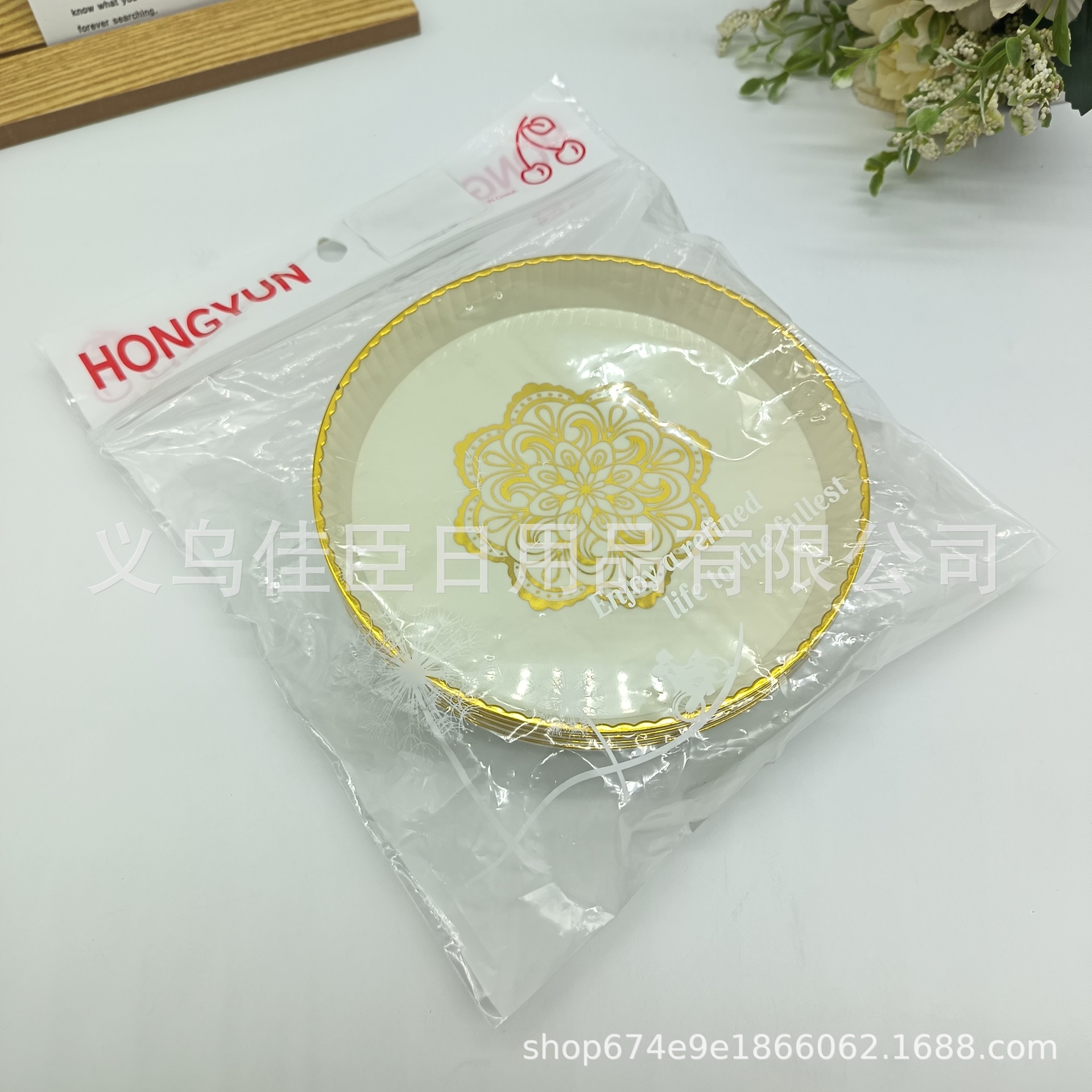 外贸批塑料果盘金边款碟子圆形形状高颜值 4个一袋现代简约干果碟