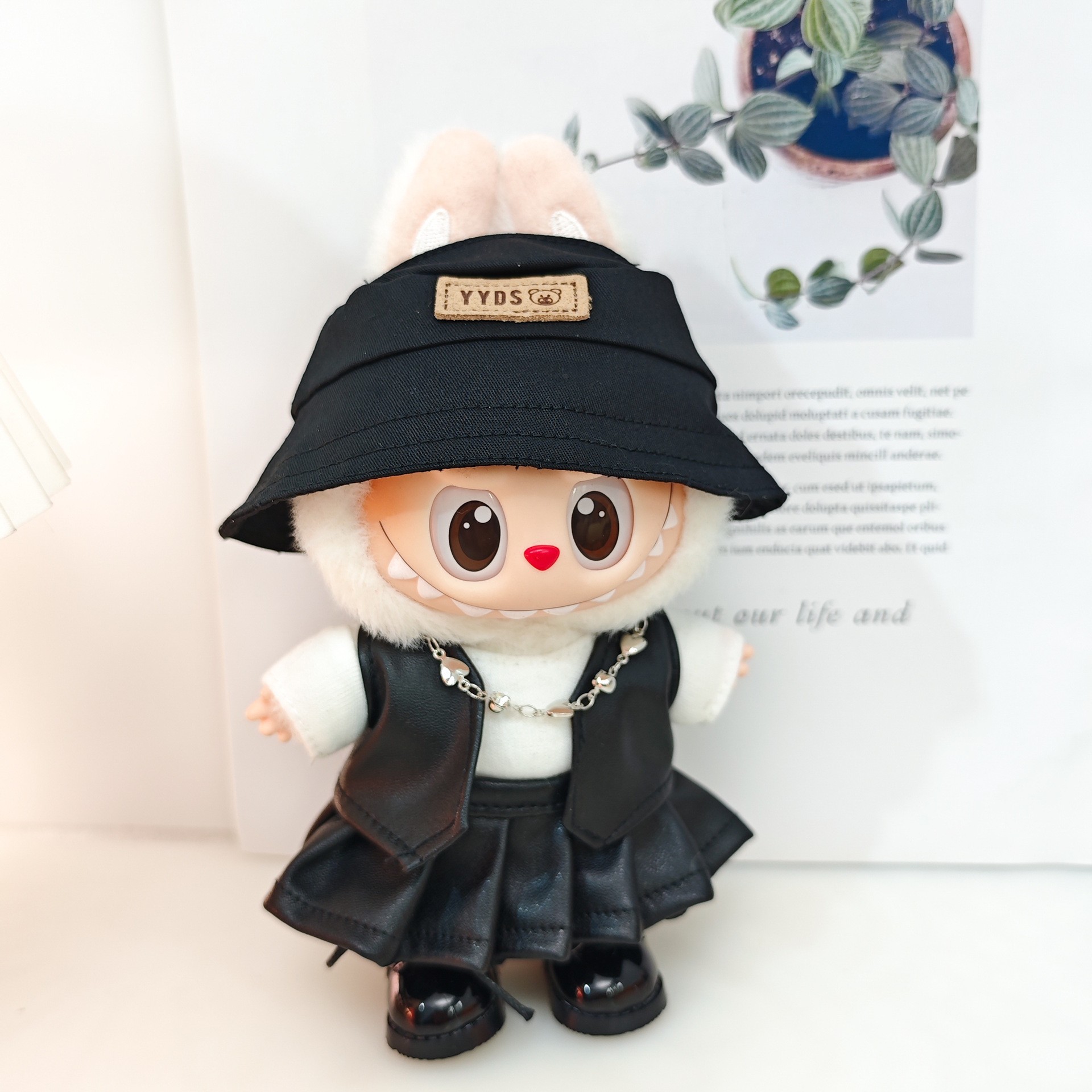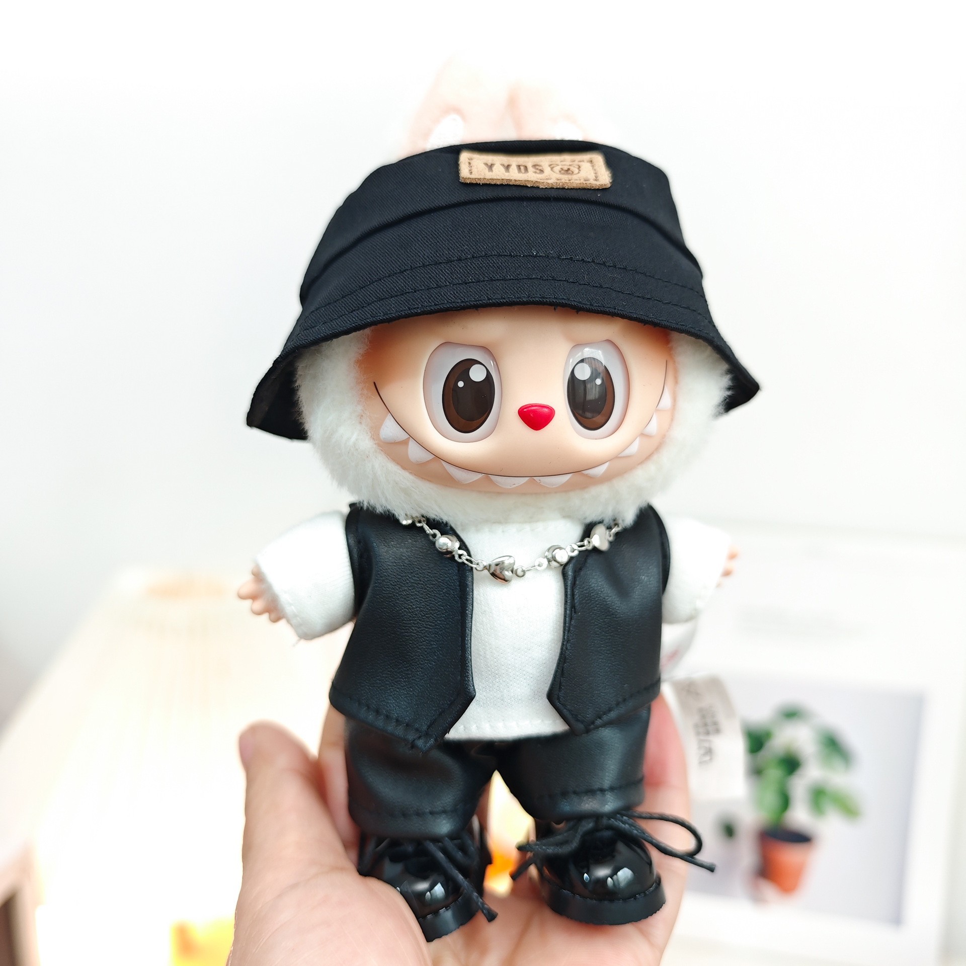 一二三代Labubu娃衣坐坐拉布布派对潮流皮马甲皮裤皮裙套装牛仔服