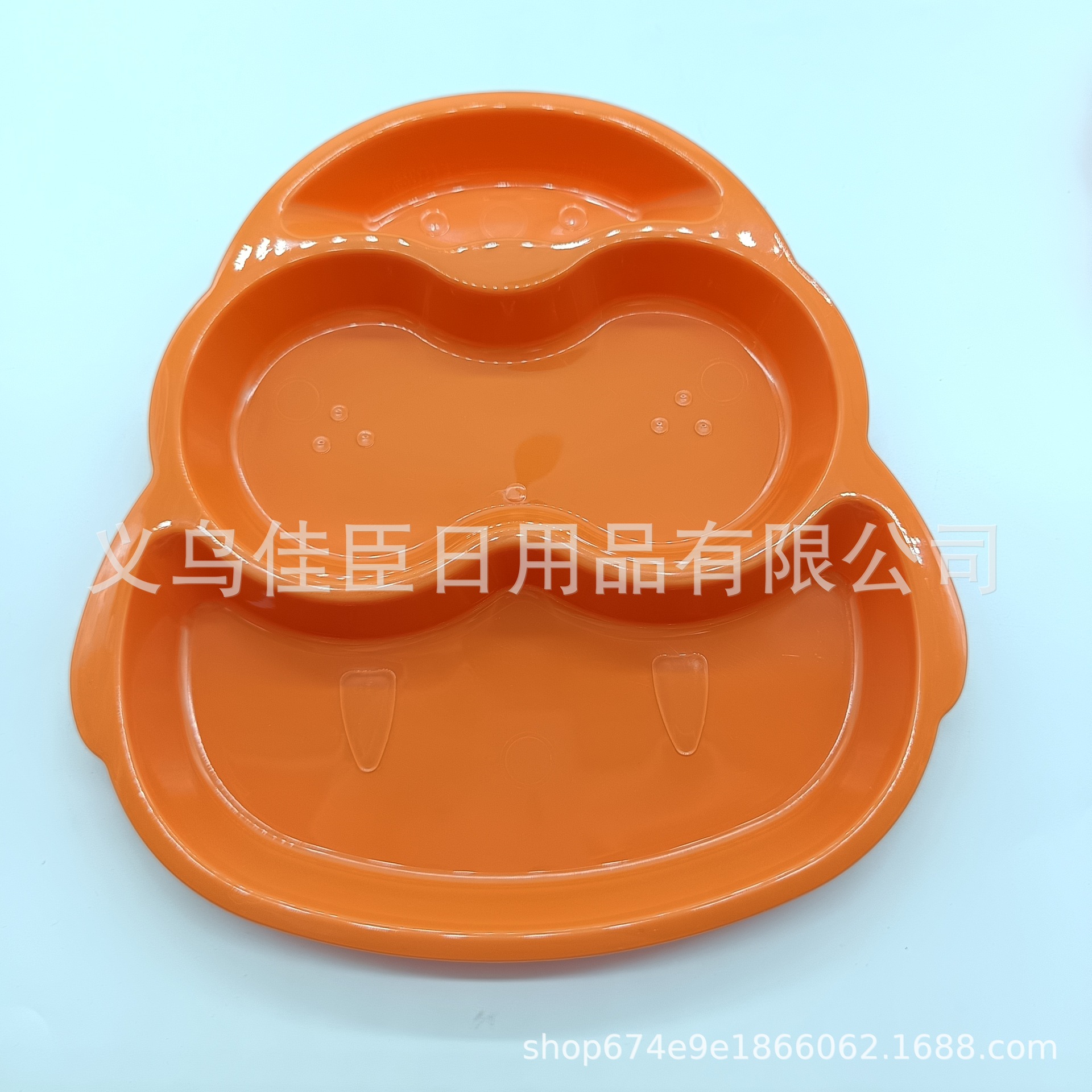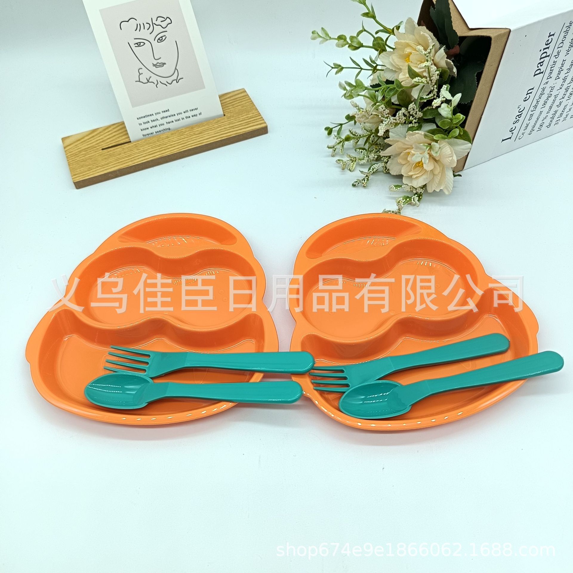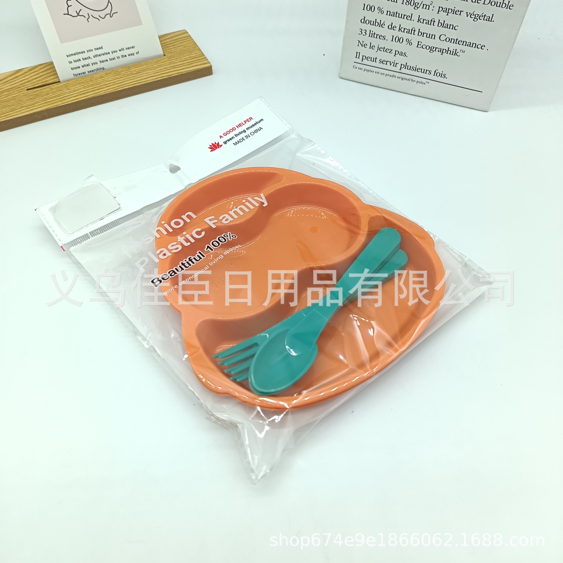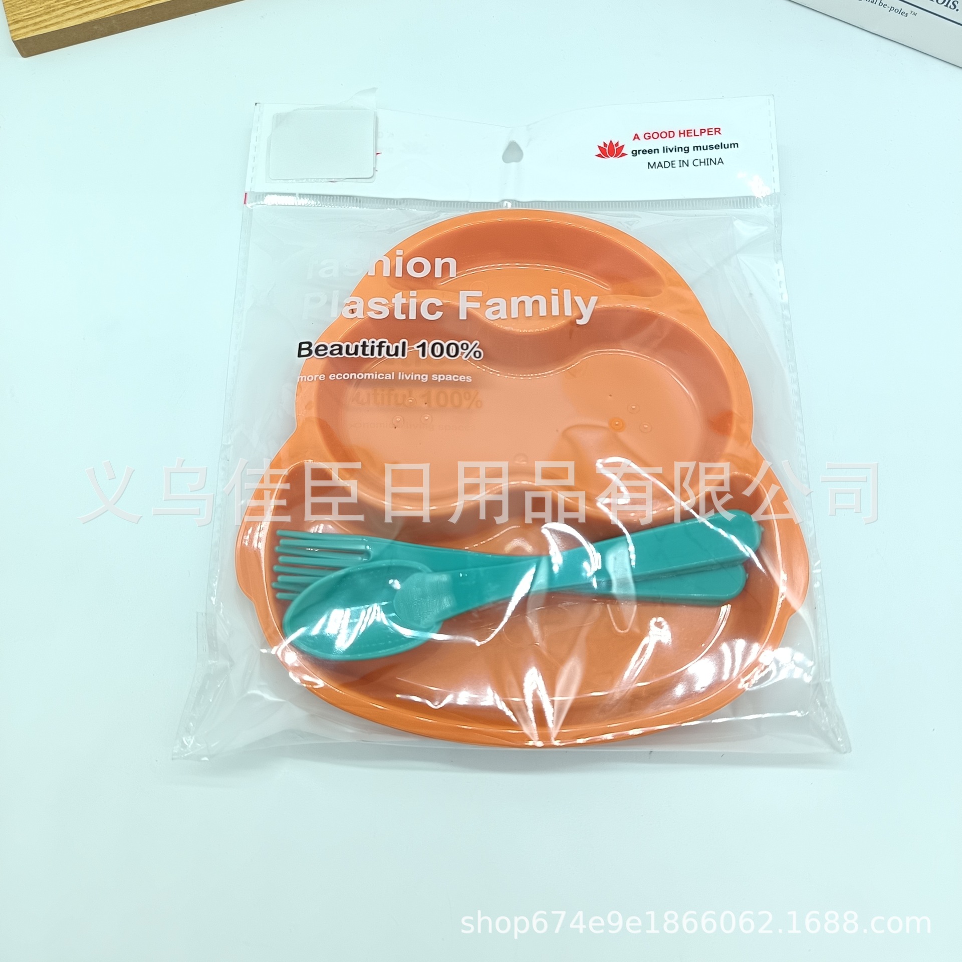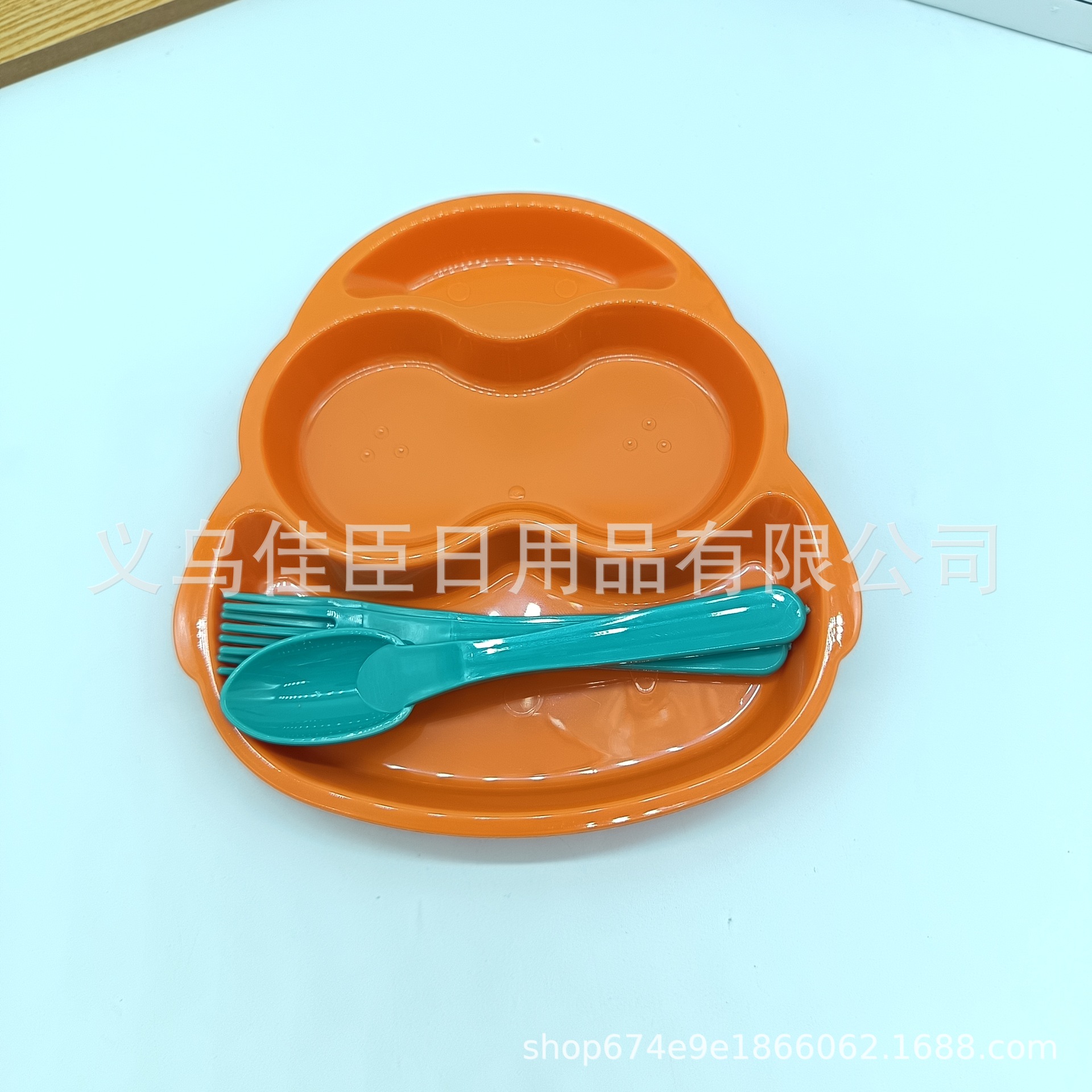 跨境热销pp材质儿童餐盘带餐具可爱造型餐具萌趣宝宝分格盘防串味
