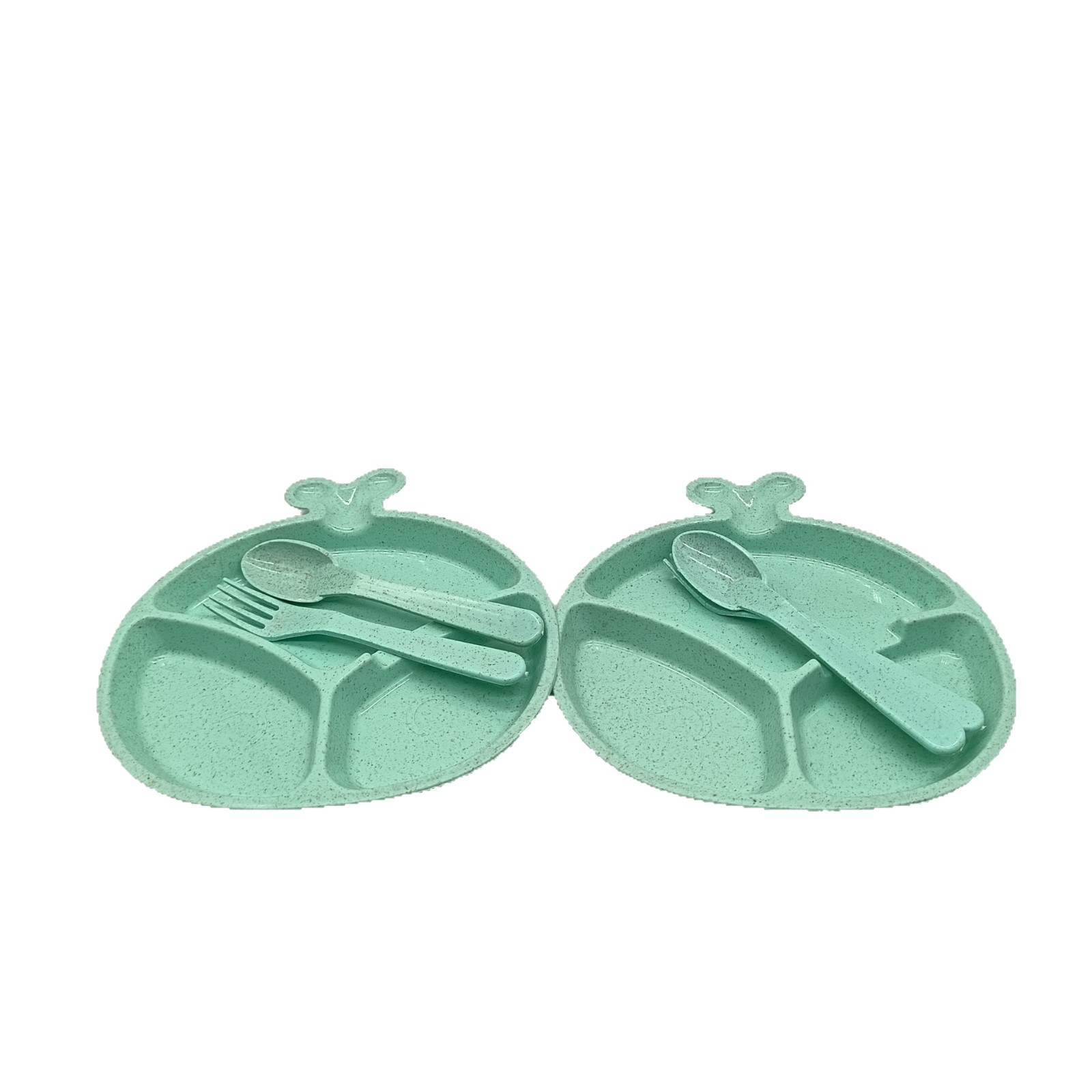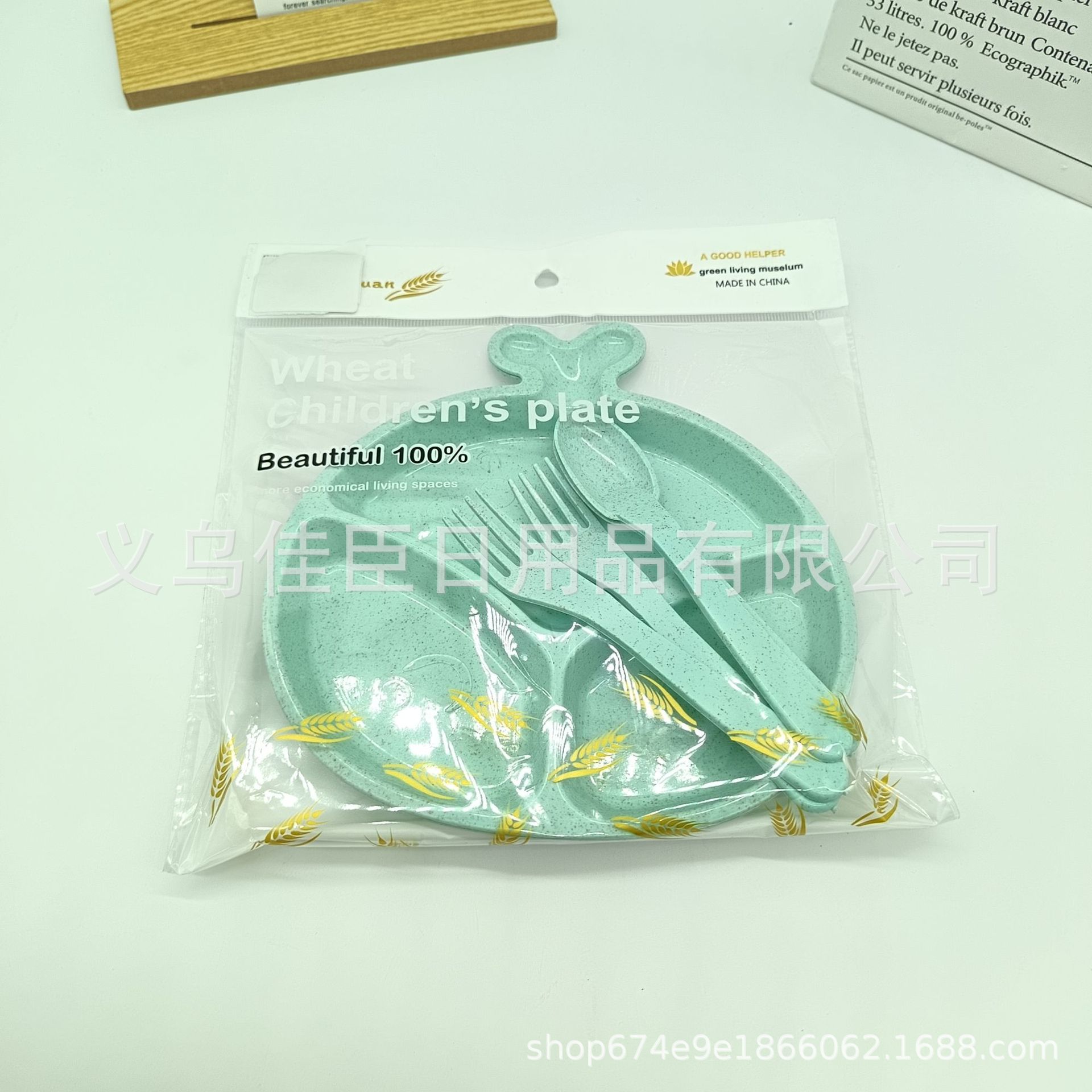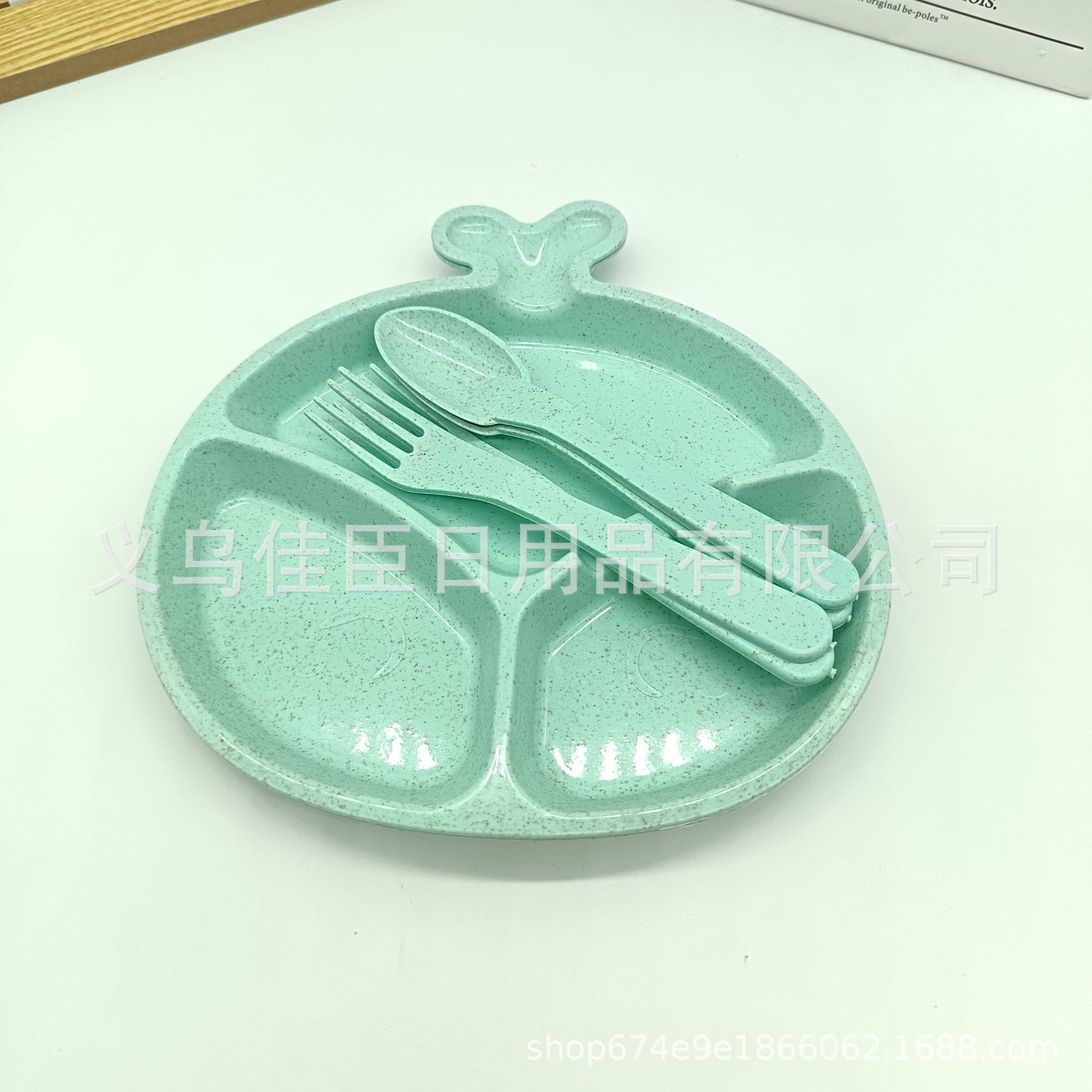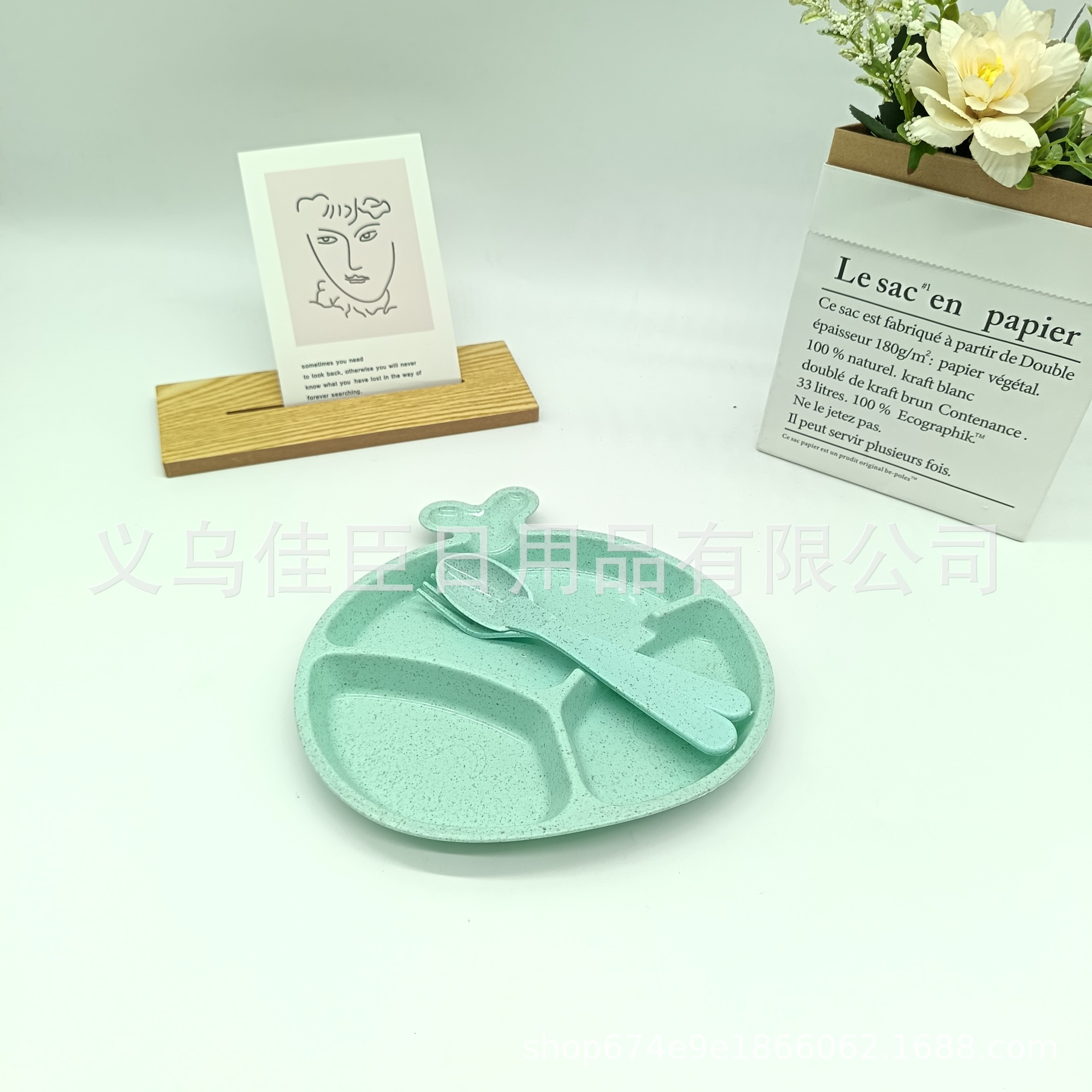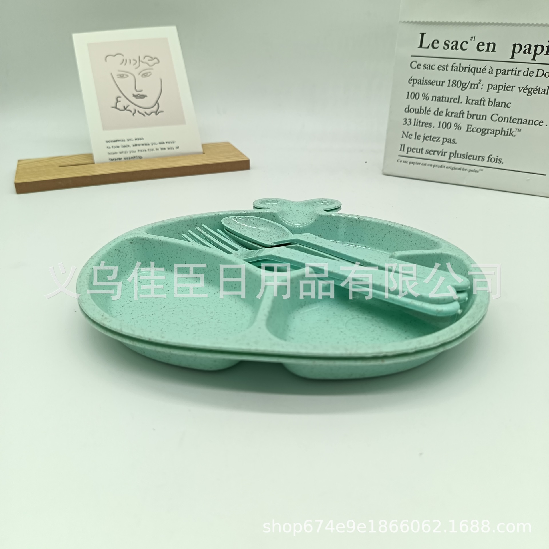 跨境热销pp材质麦纤维儿童餐盘带餐具可爱造型餐具萌趣宝宝分格盘
