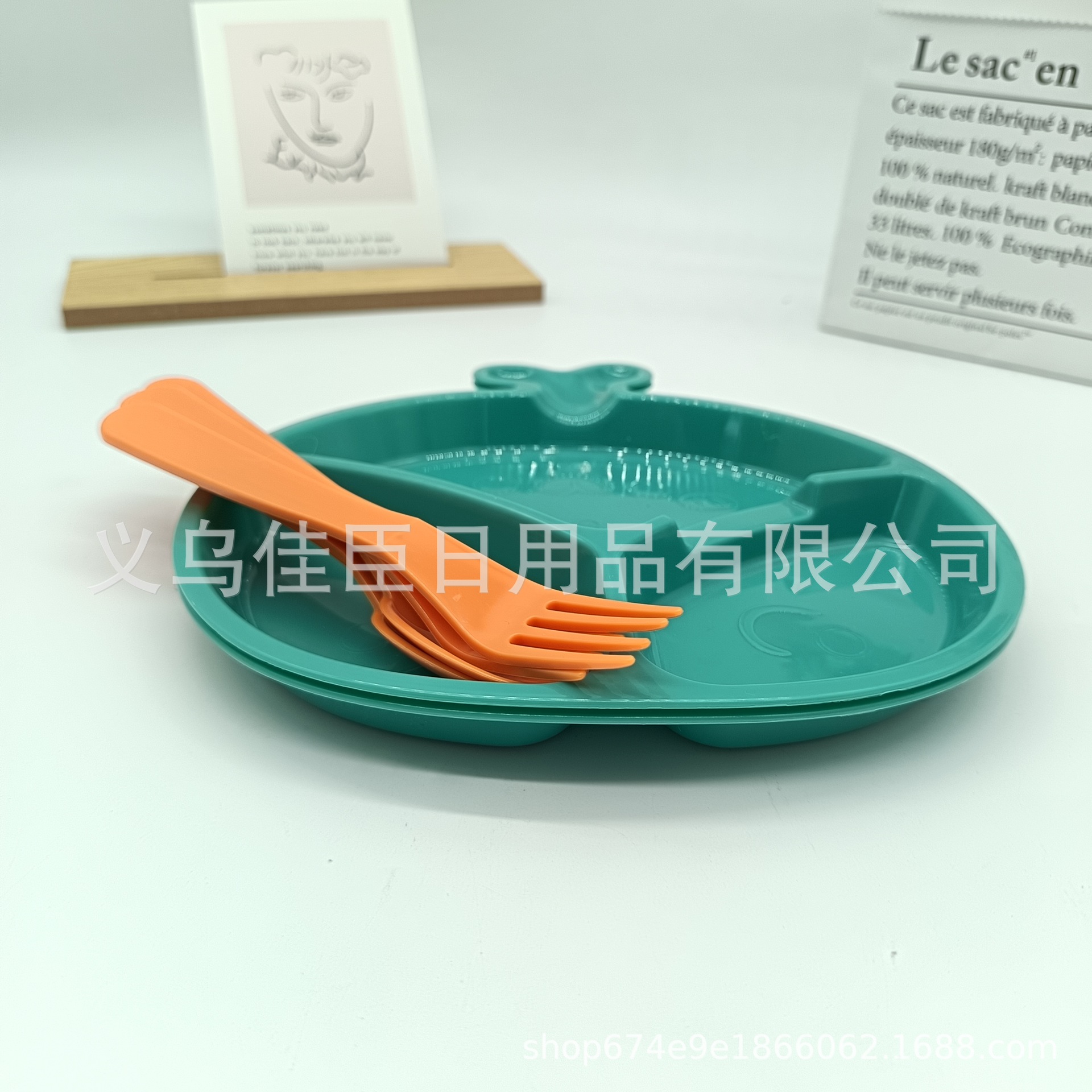 跨境热销pp材质儿童餐盘带餐具套装 可爱造型 创意高颜值宝宝餐盘