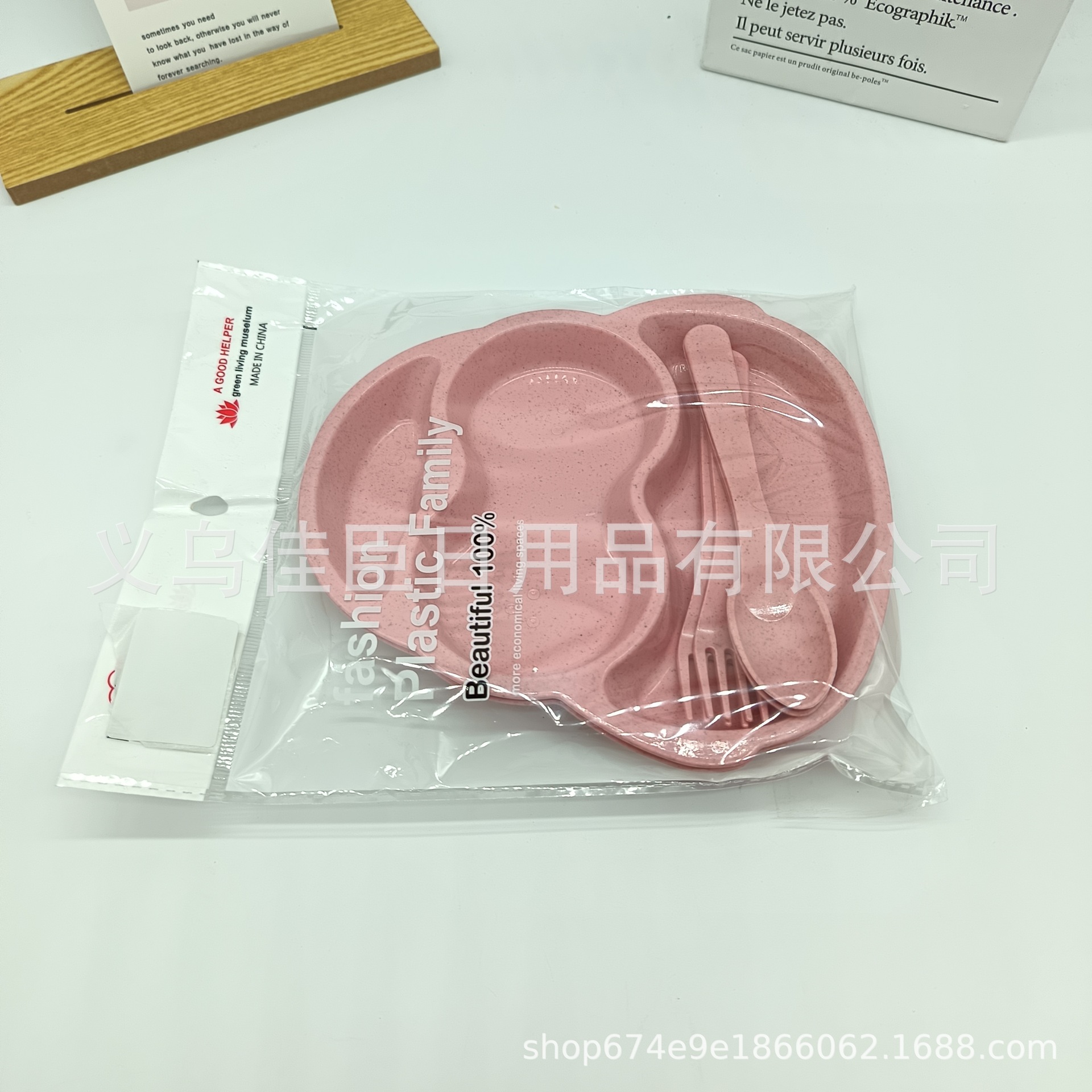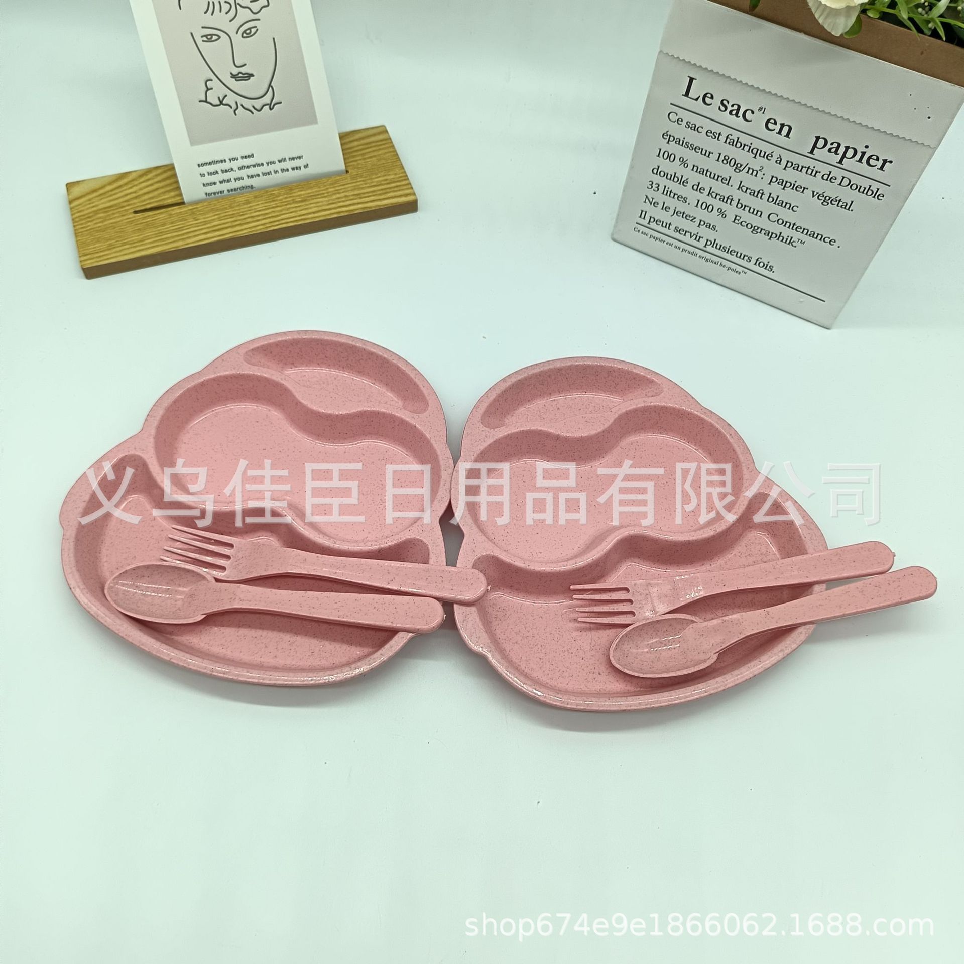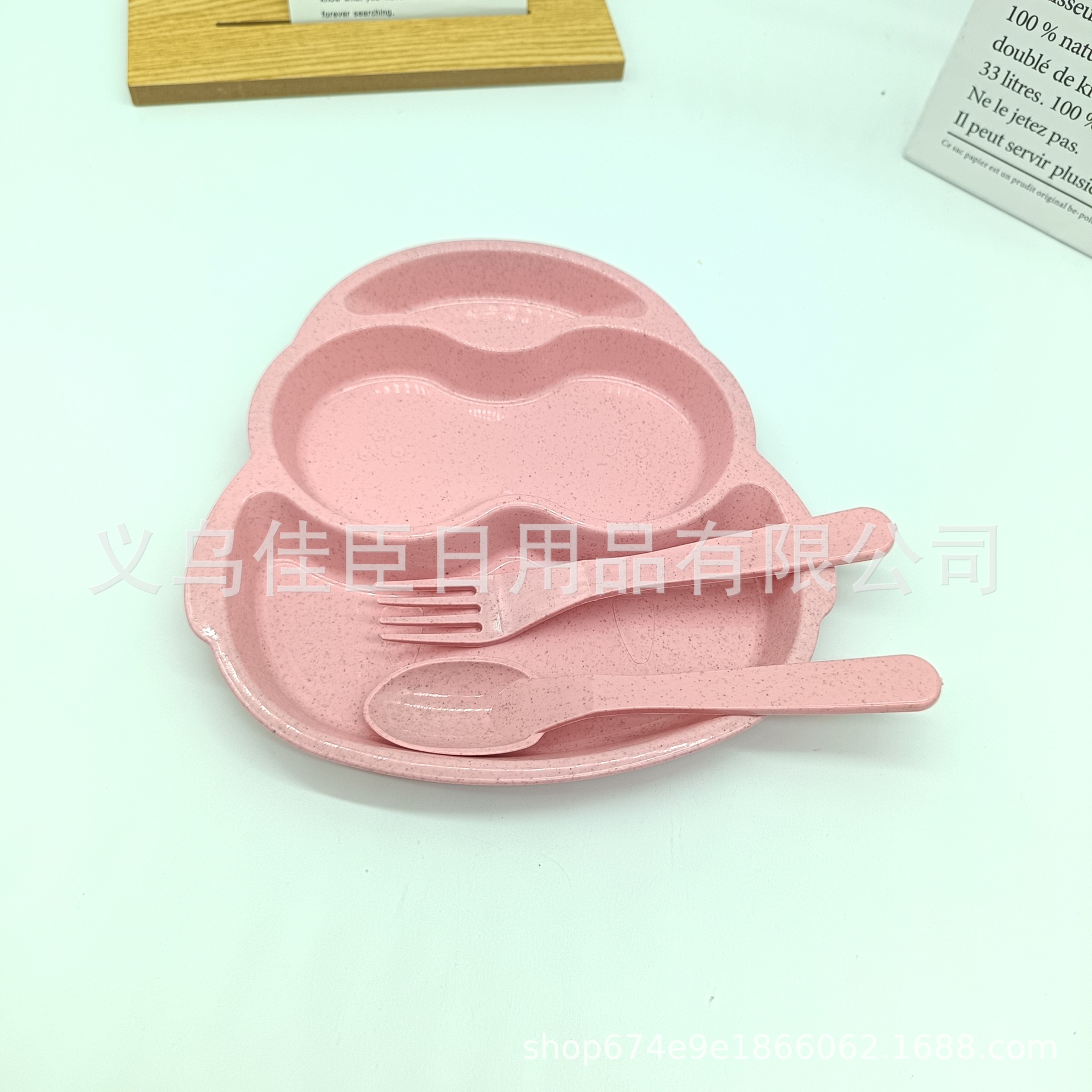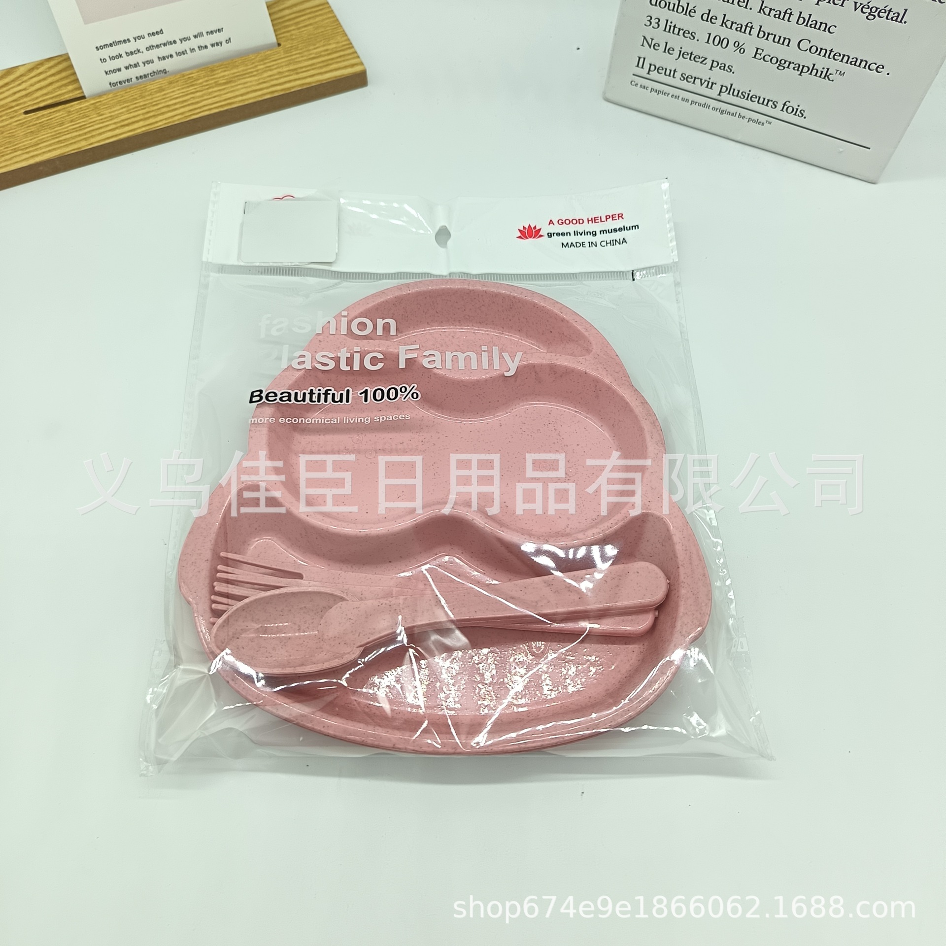 跨境热销pp材质麦纤维儿童餐盘带餐具多分格餐盘可爱萌趣宝宝餐盘