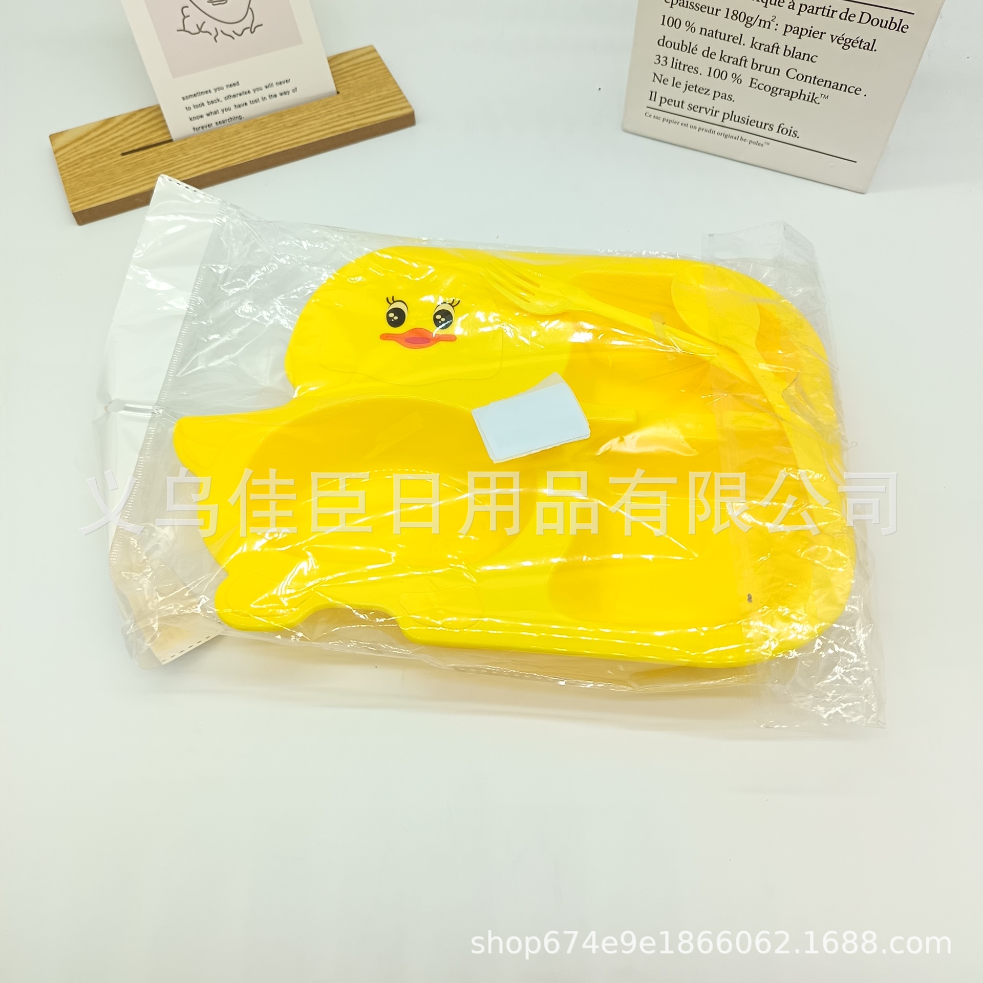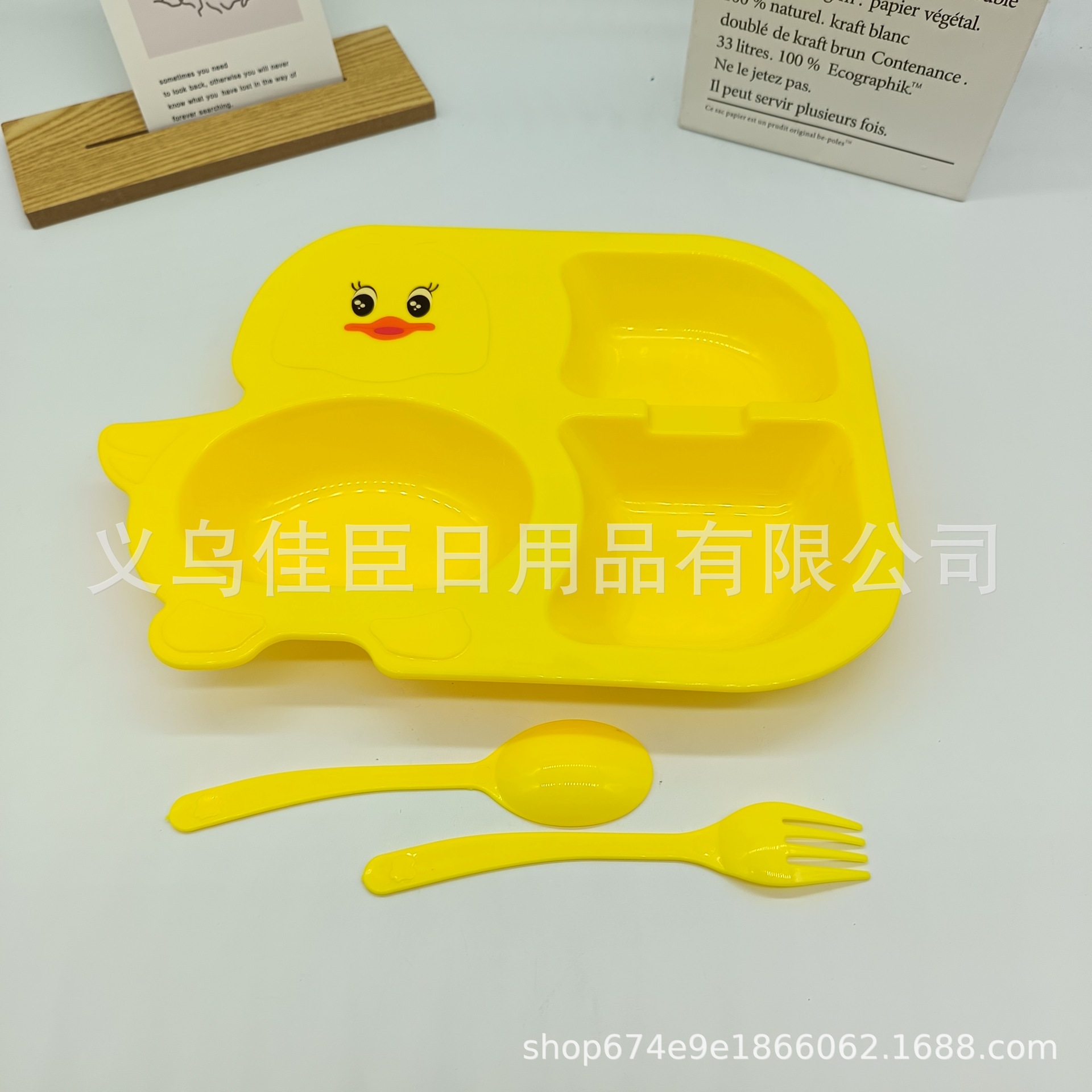 跨境热销pp材质儿童多格餐盘带叉勺小黄鸭造型餐具可爱萌趣宝宝盘