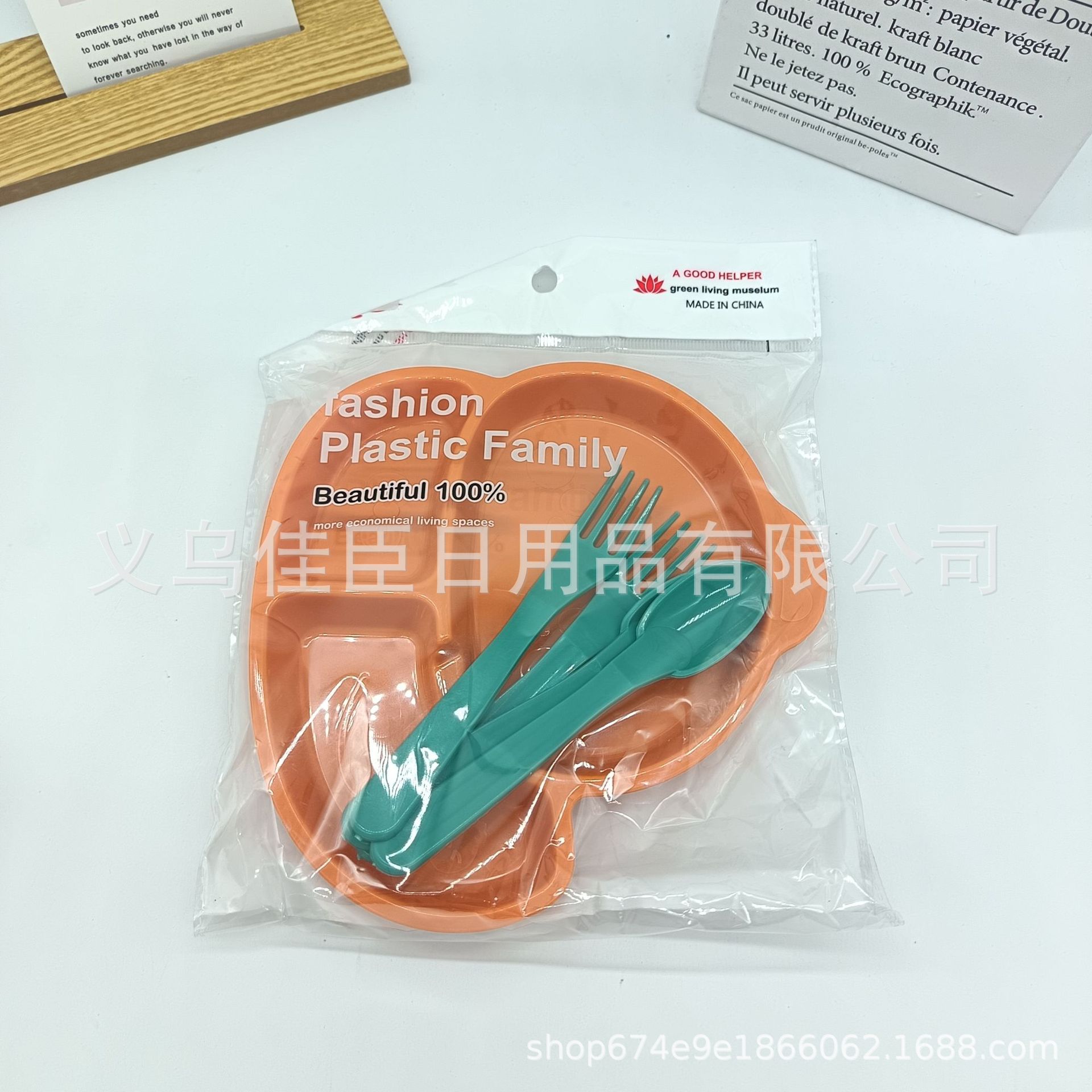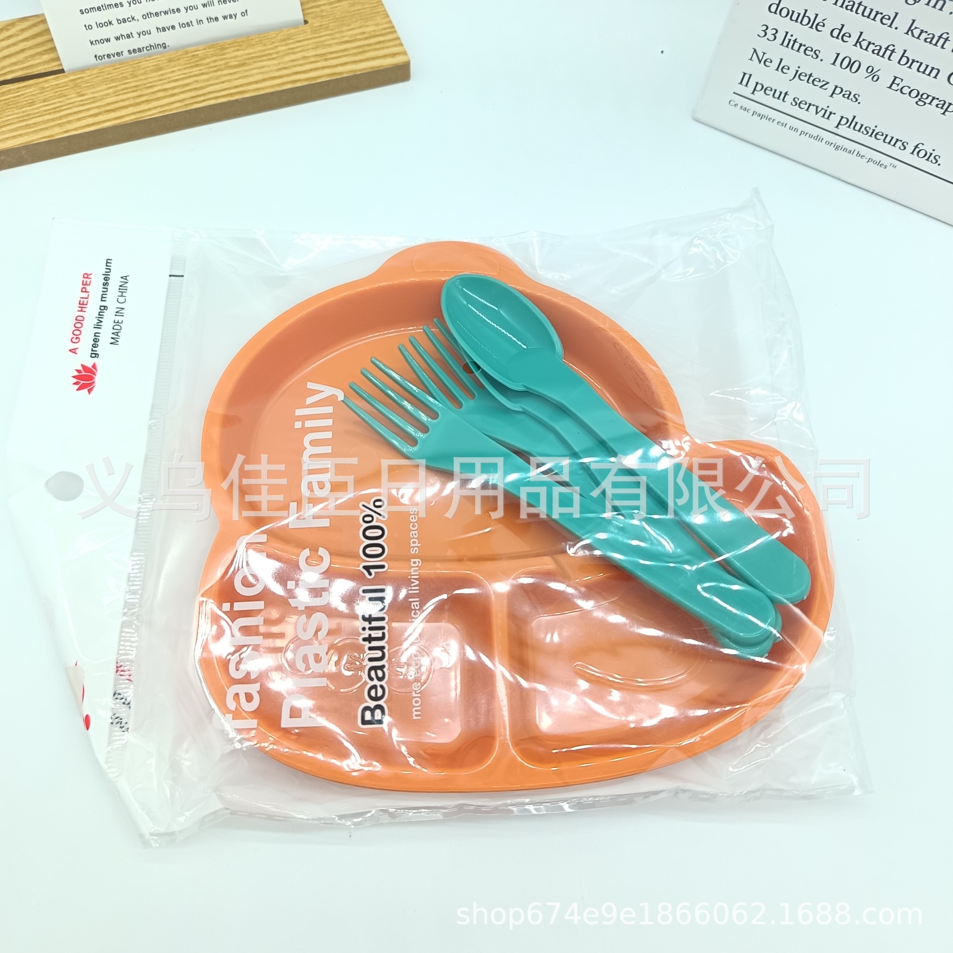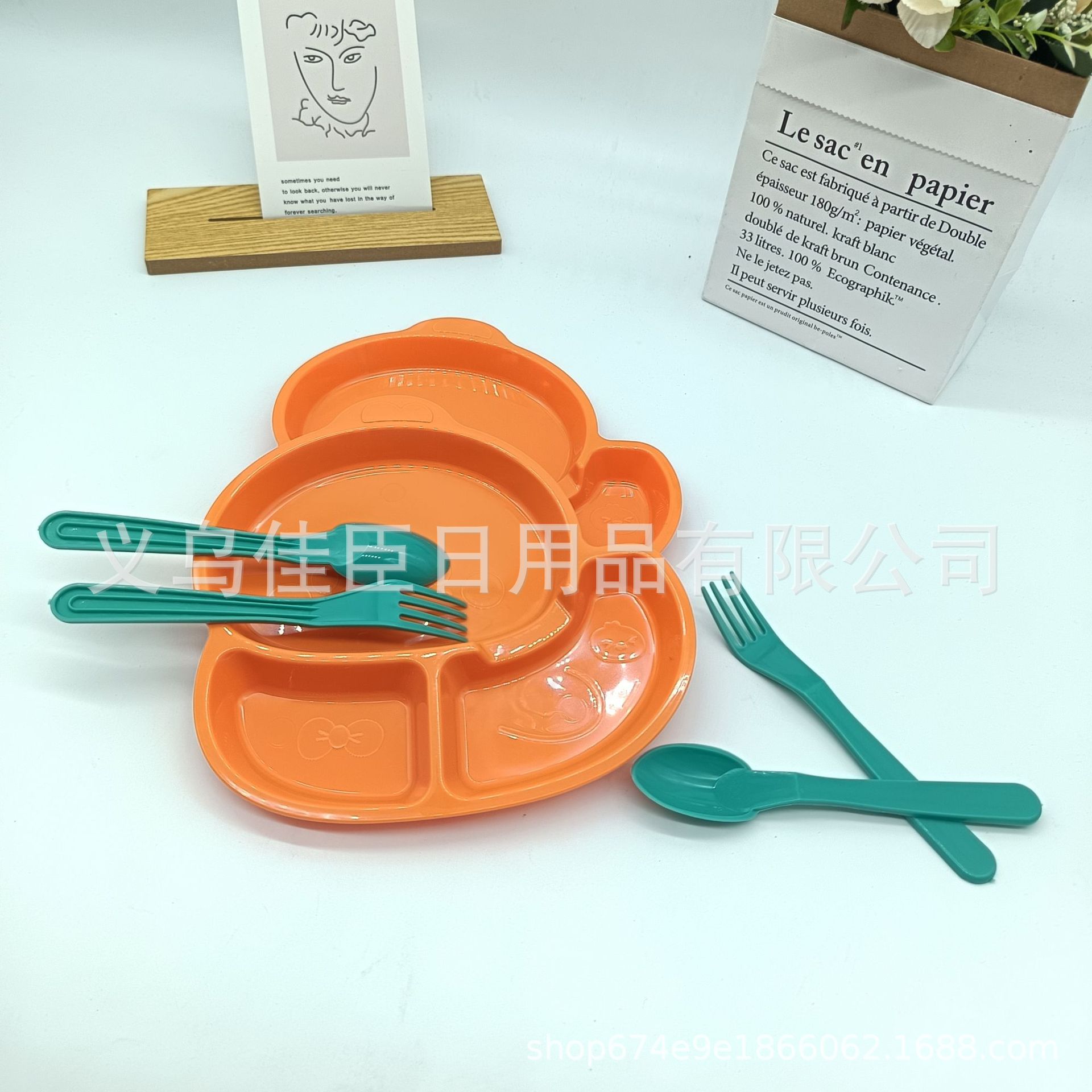 跨境热销pp材质儿童餐盘带餐具套装小鸭子造型创意高颜值儿童餐盘