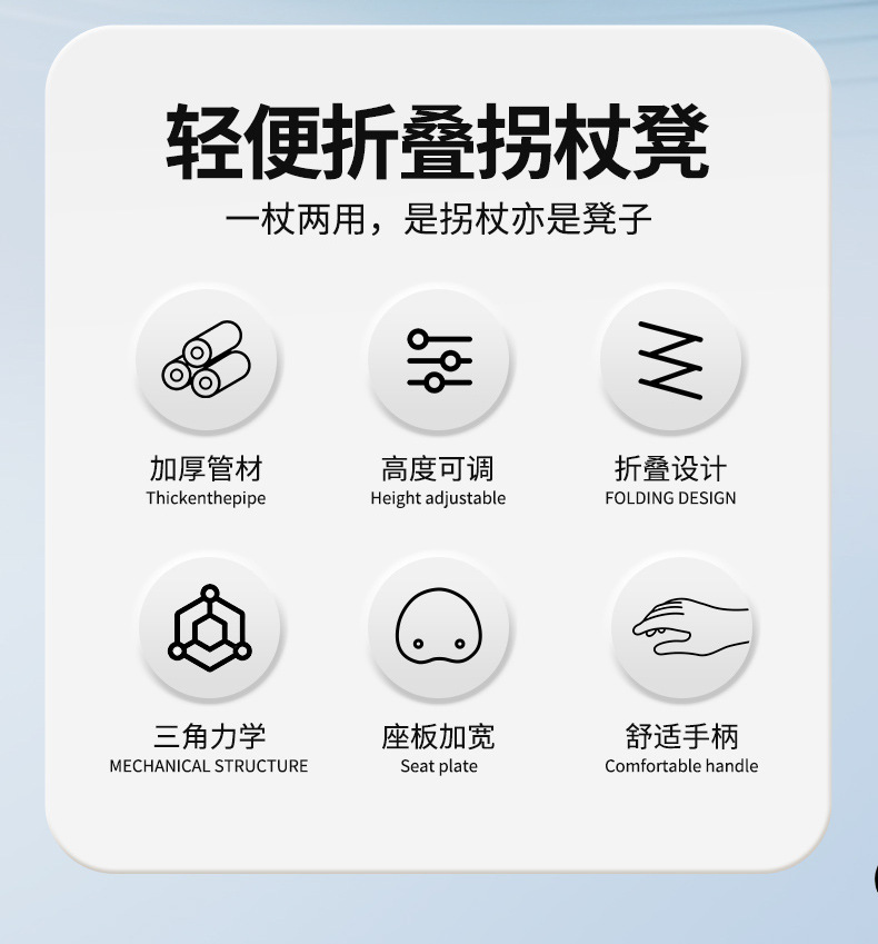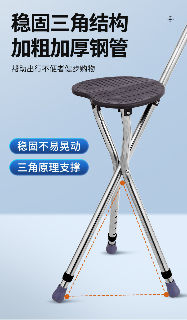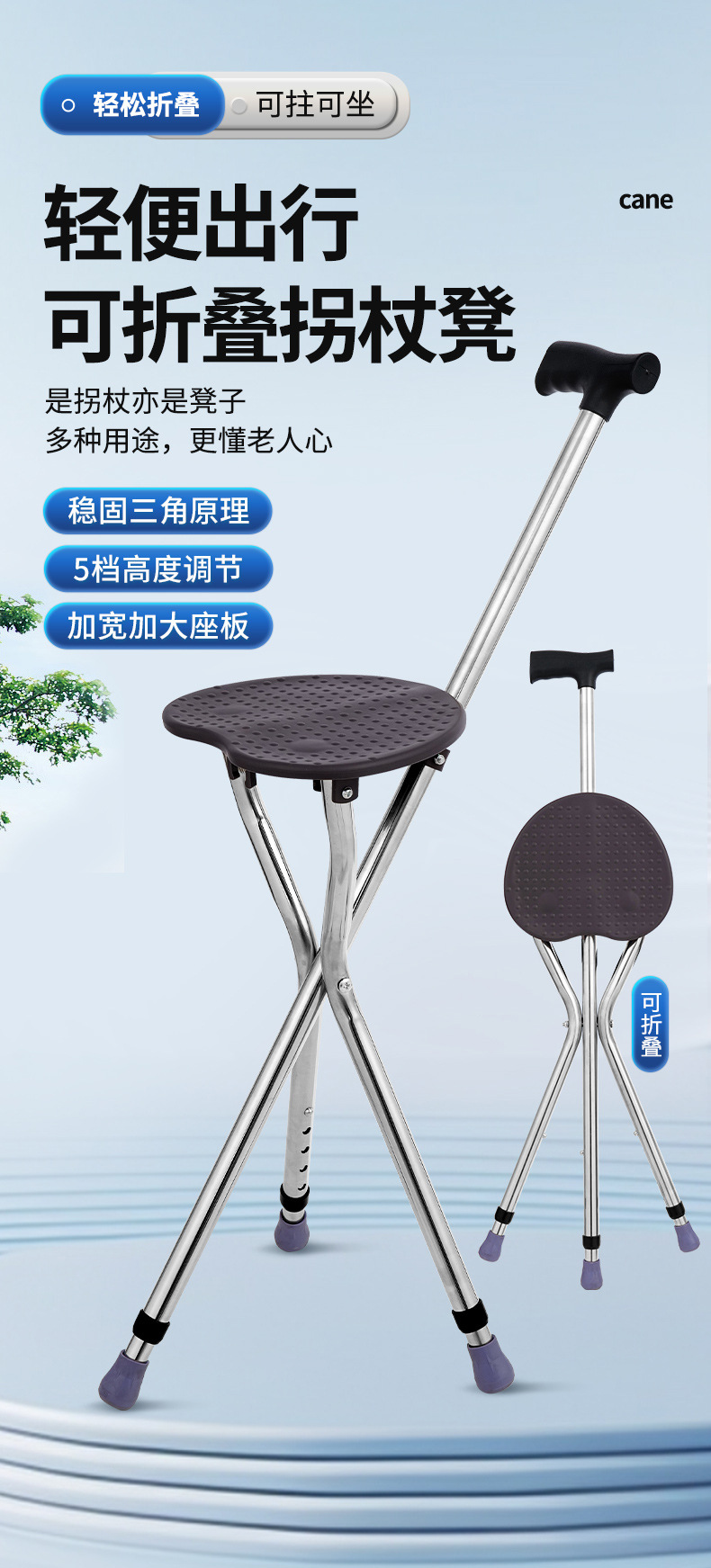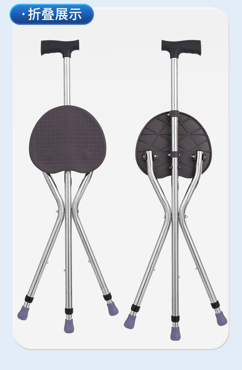 专供出口老人拐杖手杖凳子防滑拐棍轻便康复走路折叠带坐助行器