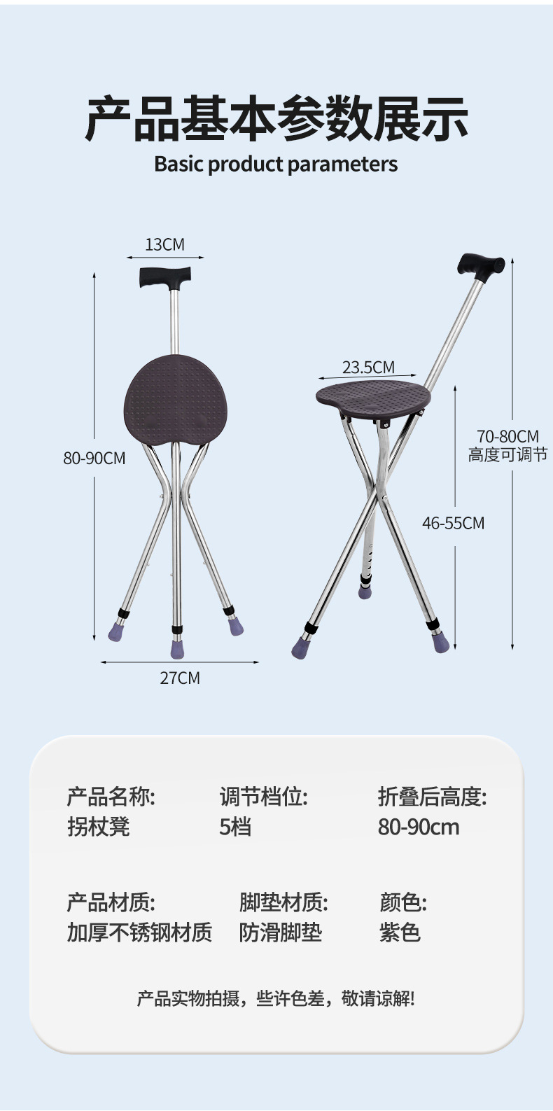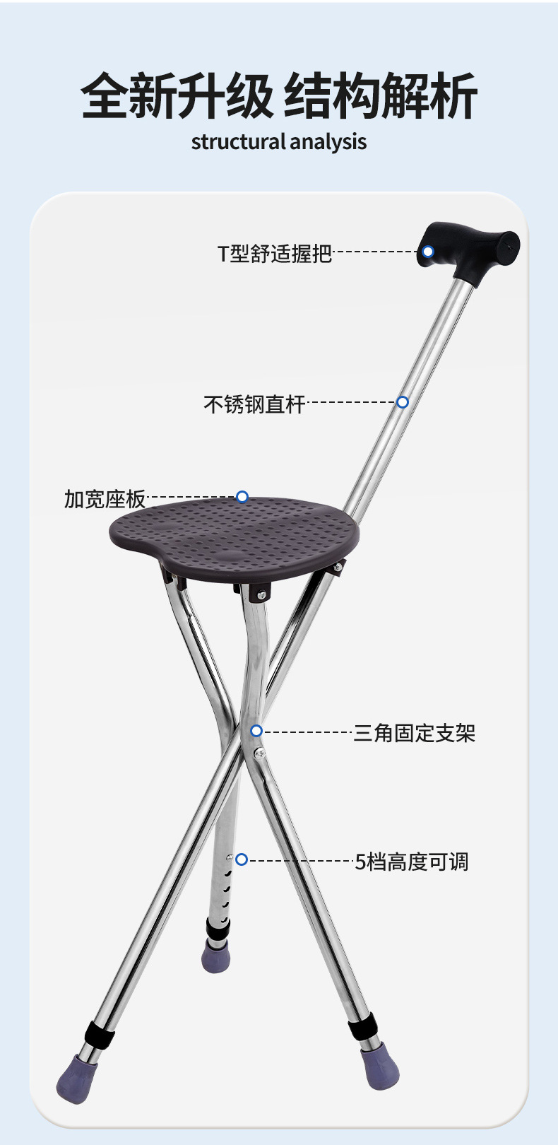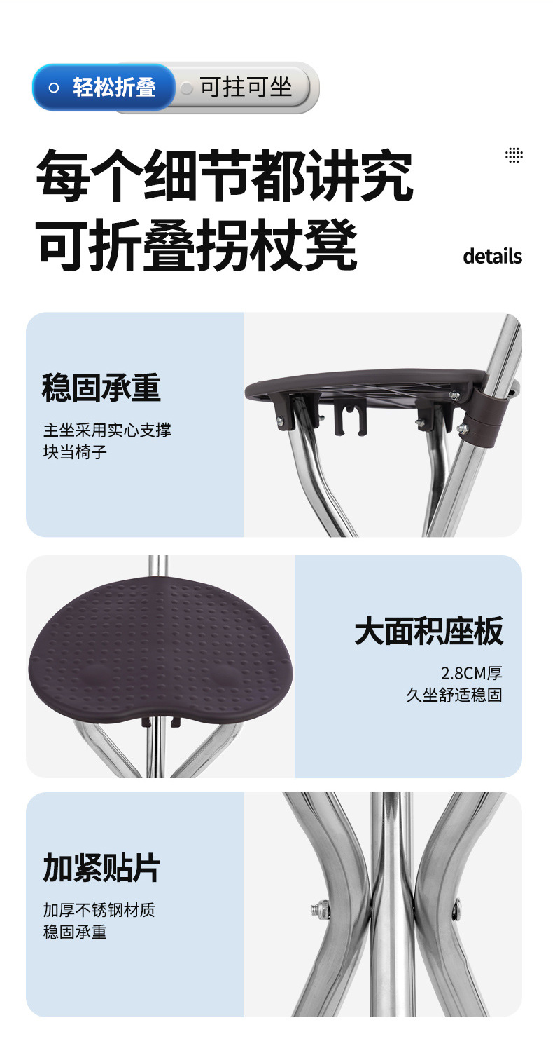 专供出口老人拐杖手杖凳子防滑拐棍轻便康复走路折叠带坐助行器