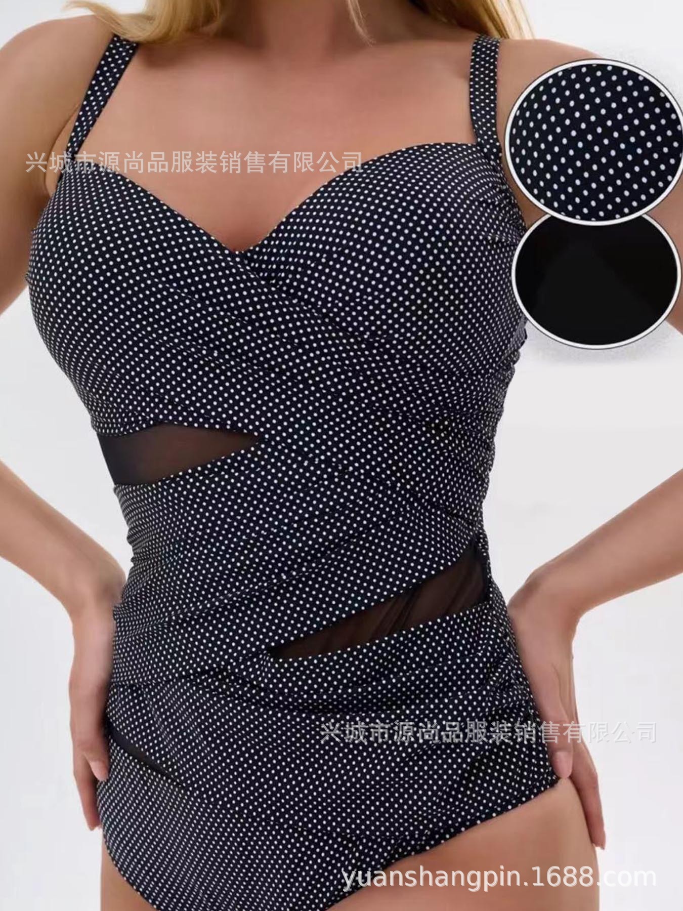 纯色硬包女士网纱拼接露背连体泳衣女2025新款俄罗斯亚马逊速卖通