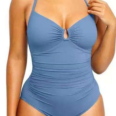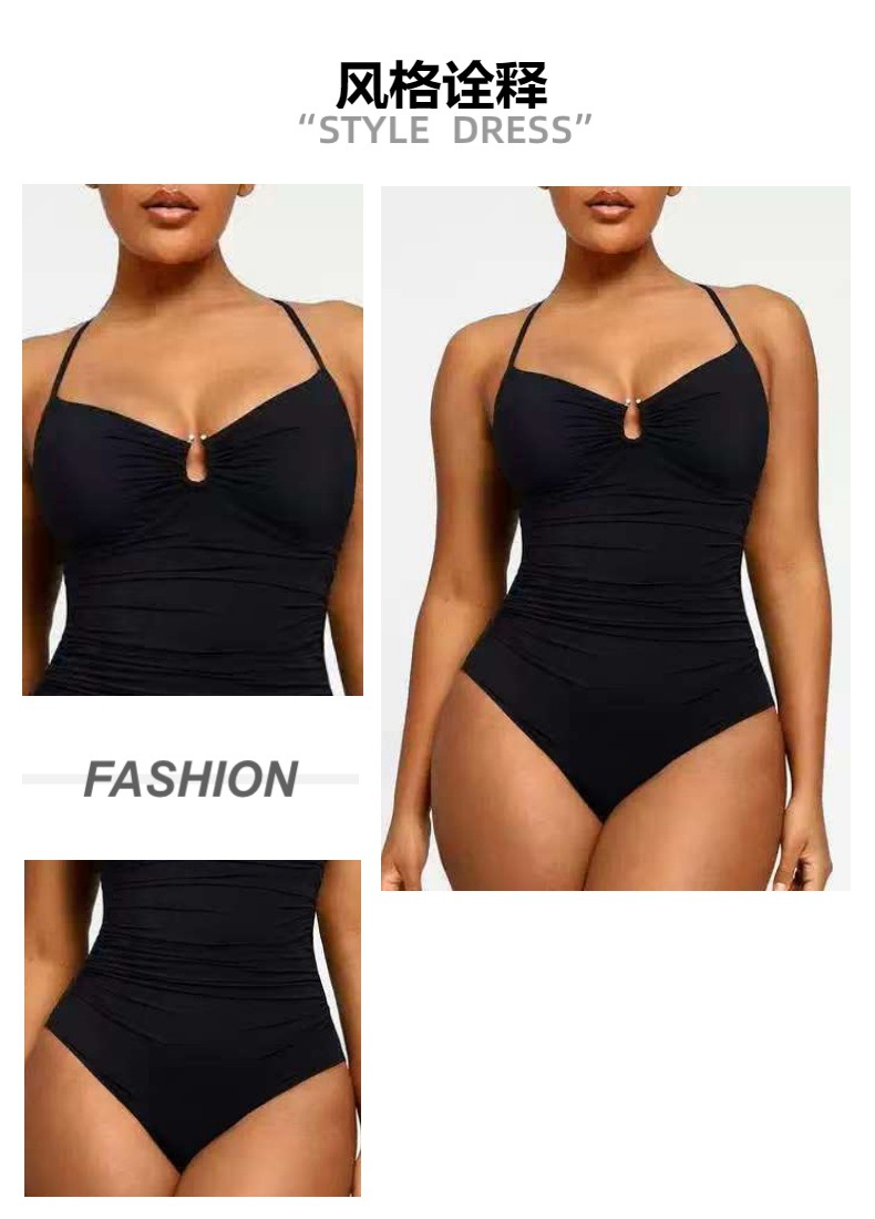 亚马逊2025年新款欧美纯色时尚遮肉显瘦连体女士双肩带游泳衣泳装
