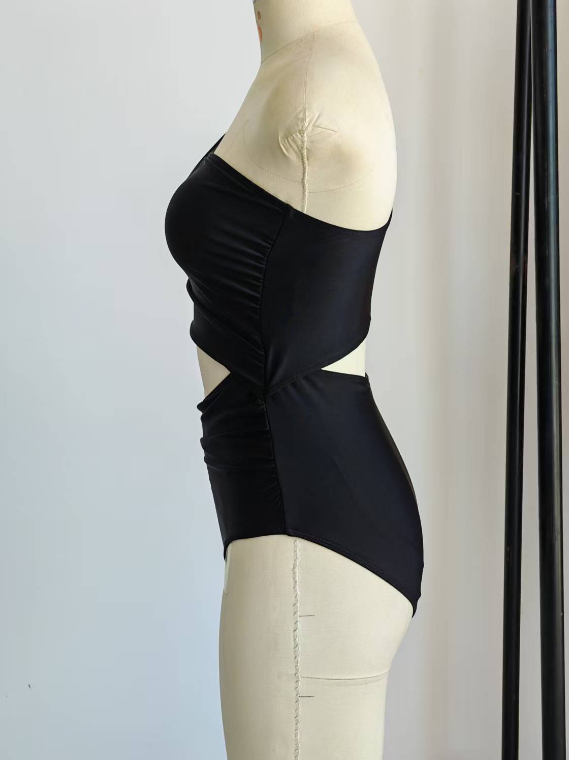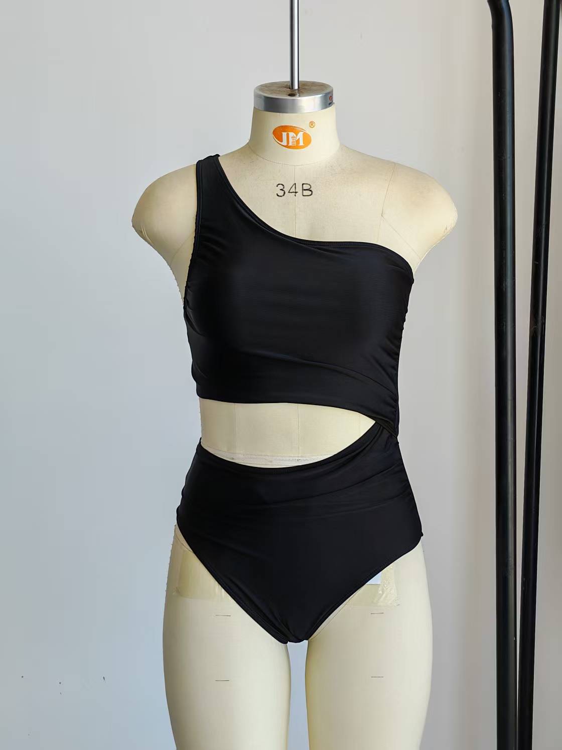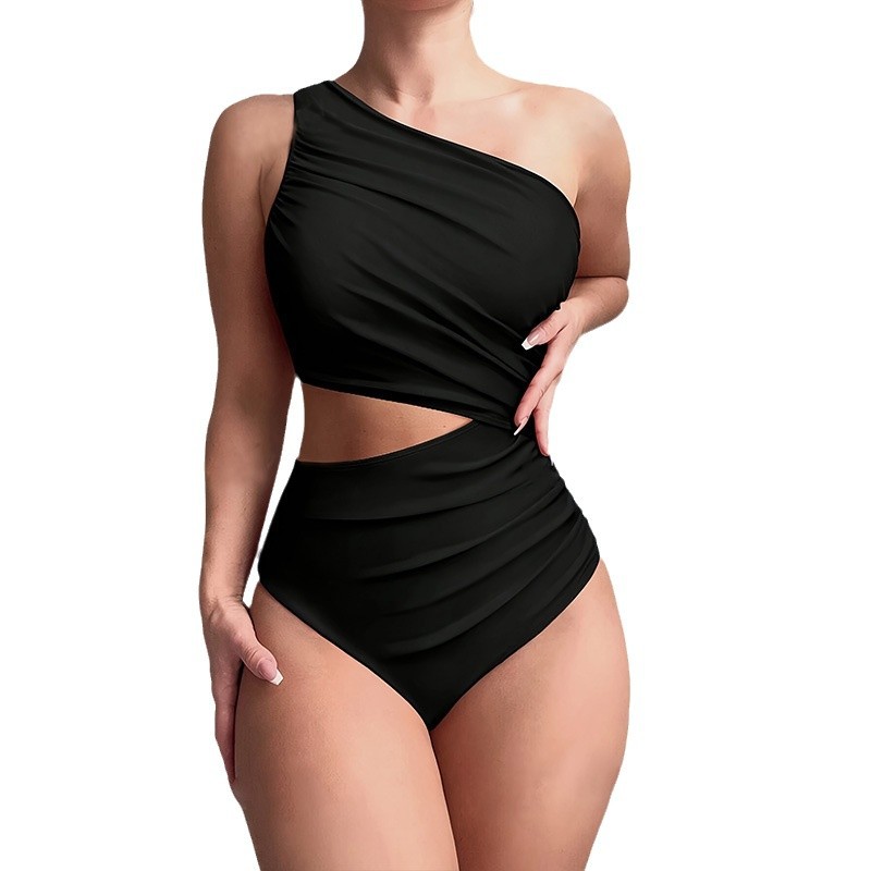 纯色单肩连体泳衣女款性感紧身跨境外贸葫芦岛泳装速卖通泳衣