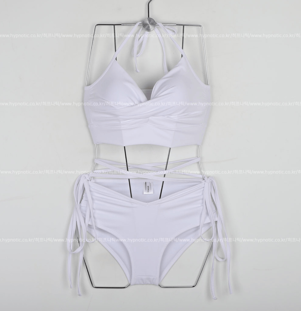 韩国2025ins风新款纯色分体游泳衣女士纯欲风闺蜜款交叉绑带泳衣