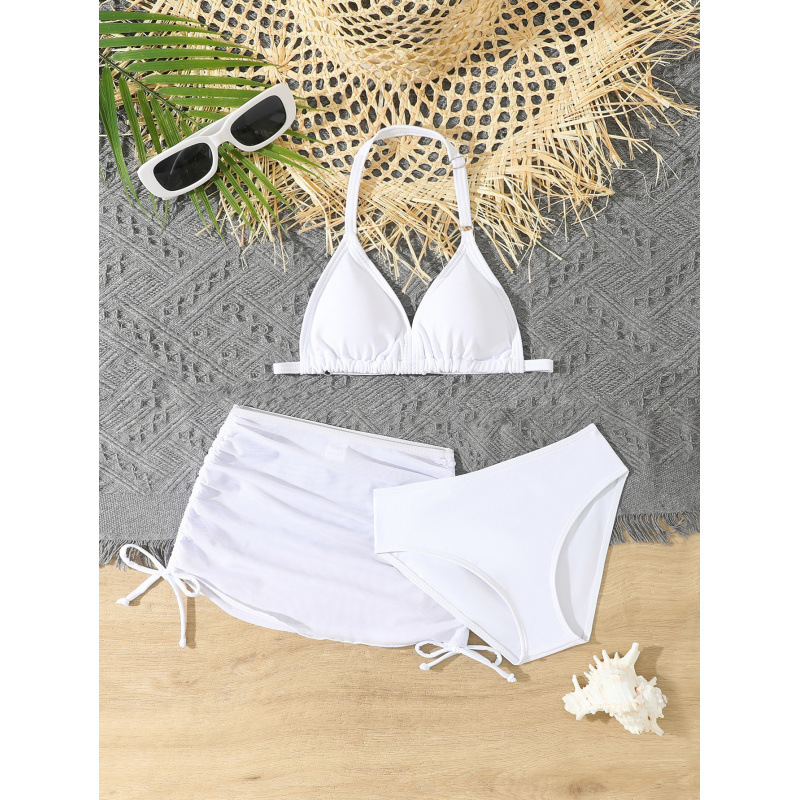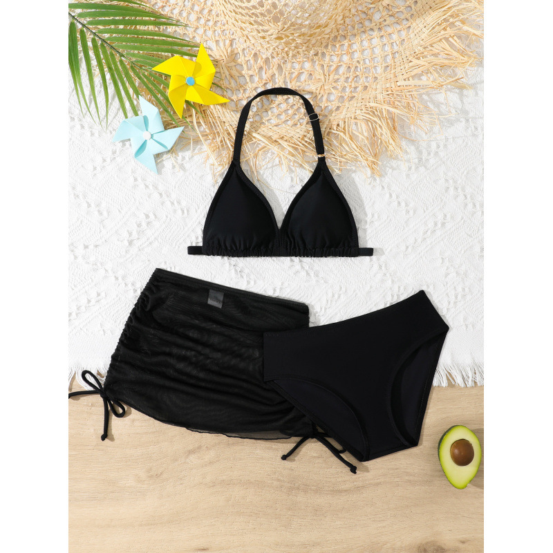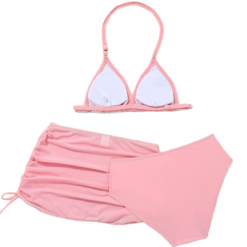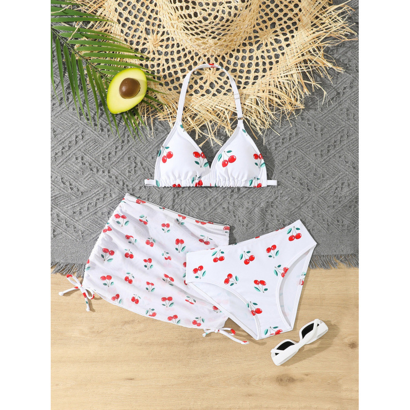 2025外贸新款儿童比基尼泳衣可爱女童分体三件套中大童带胸垫泳装