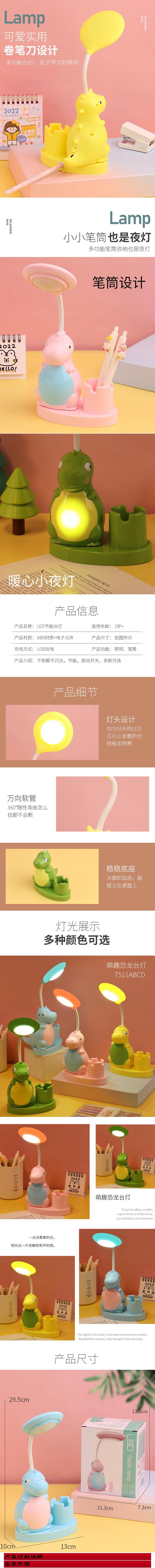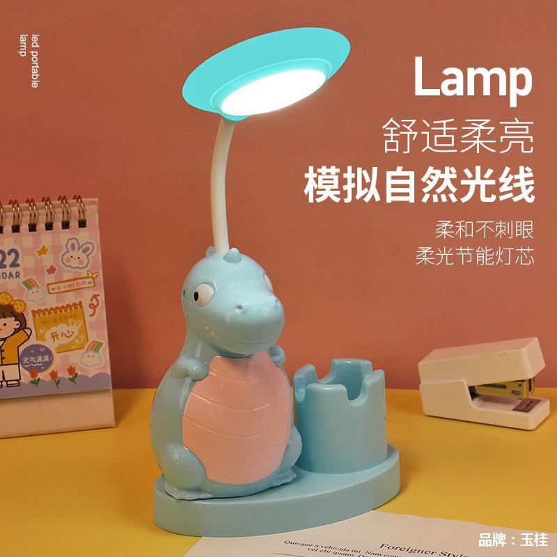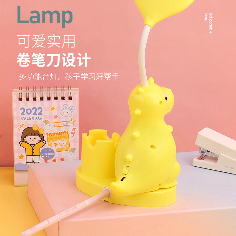 网红创意恐龙笔筒削笔刀台灯USB充电桌面儿童阅读灯床头小夜灯