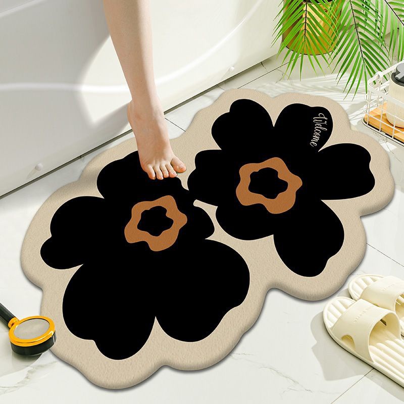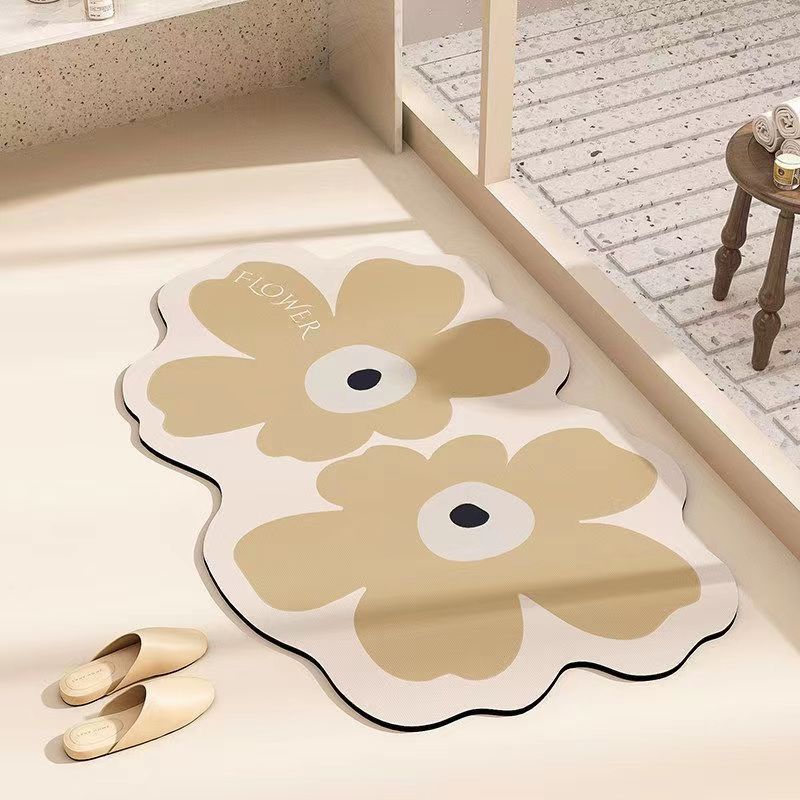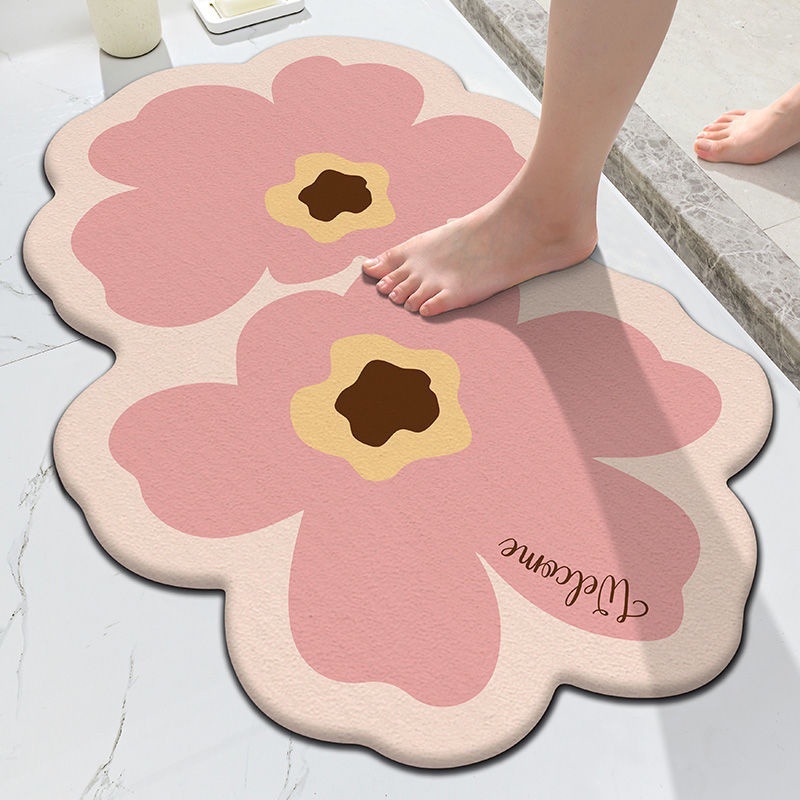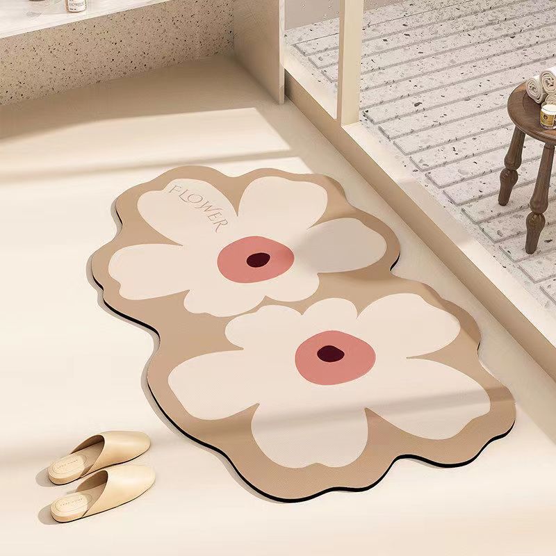 花朵浴室橡胶防滑易打理地垫小清新卫生间门口硅藻泥吸水速干脚垫