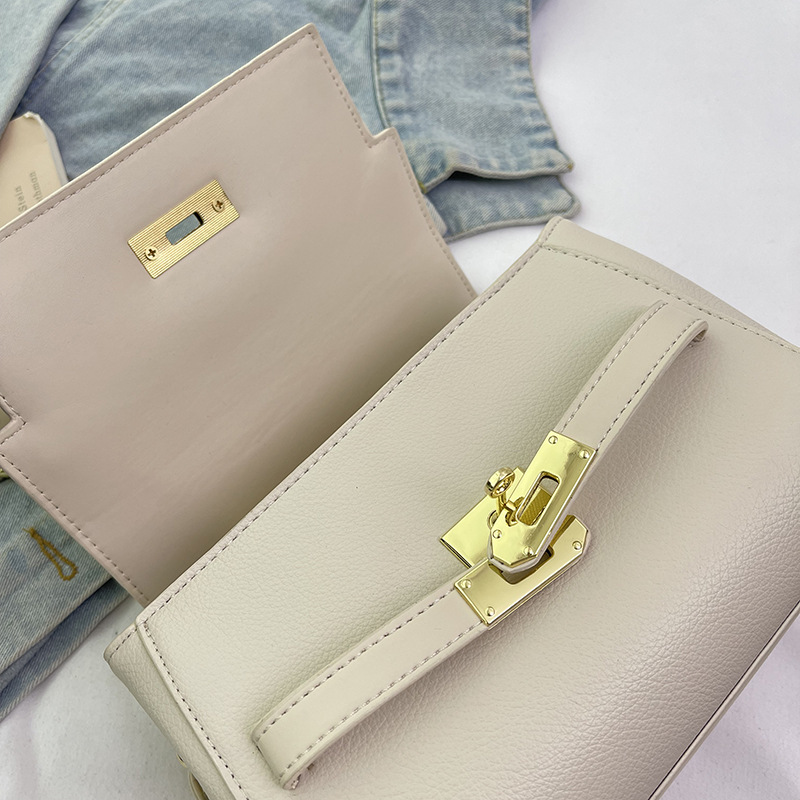 新款纯色锁扣包包2025夏季韩版时尚高级百搭单肩包女士休闲斜挎包