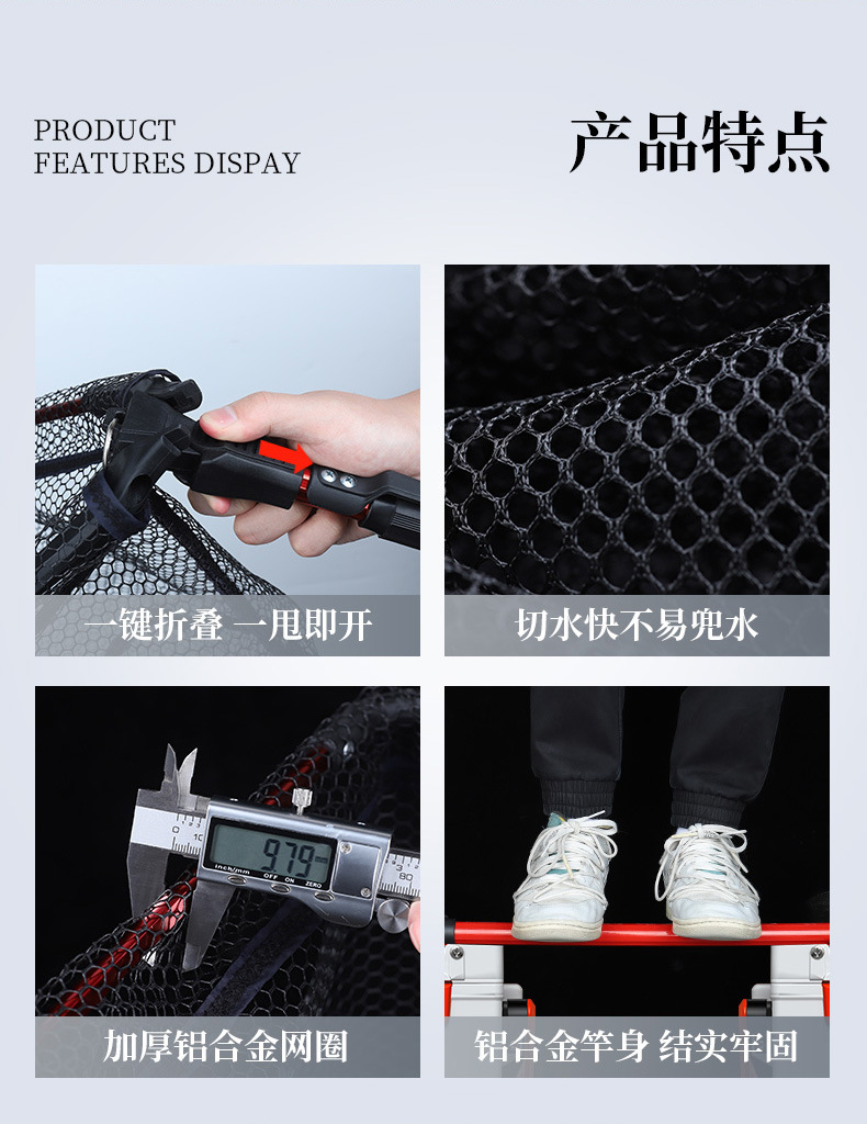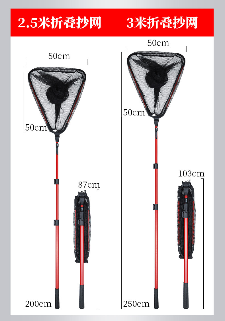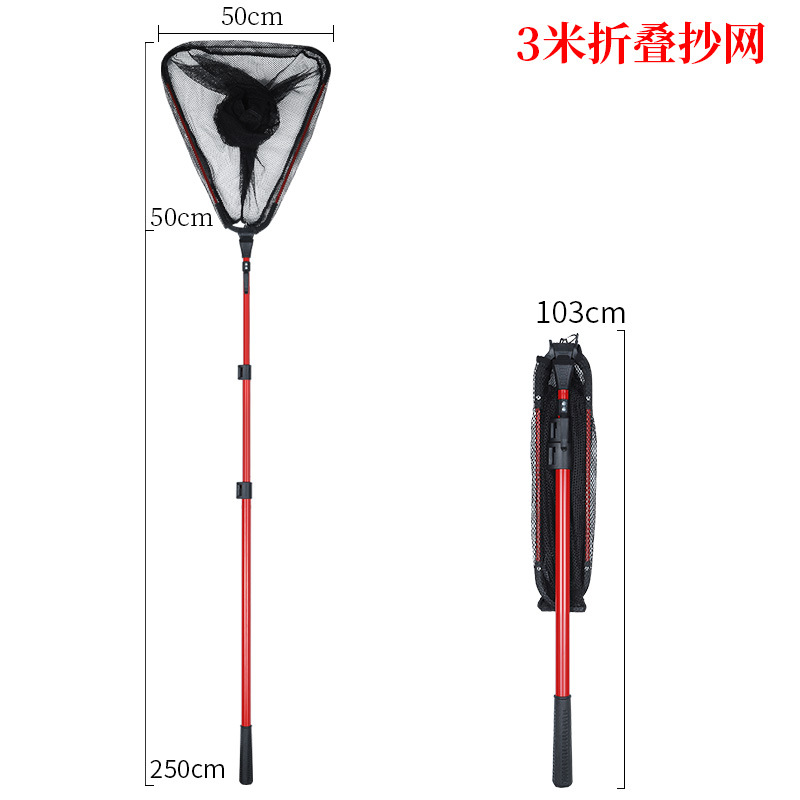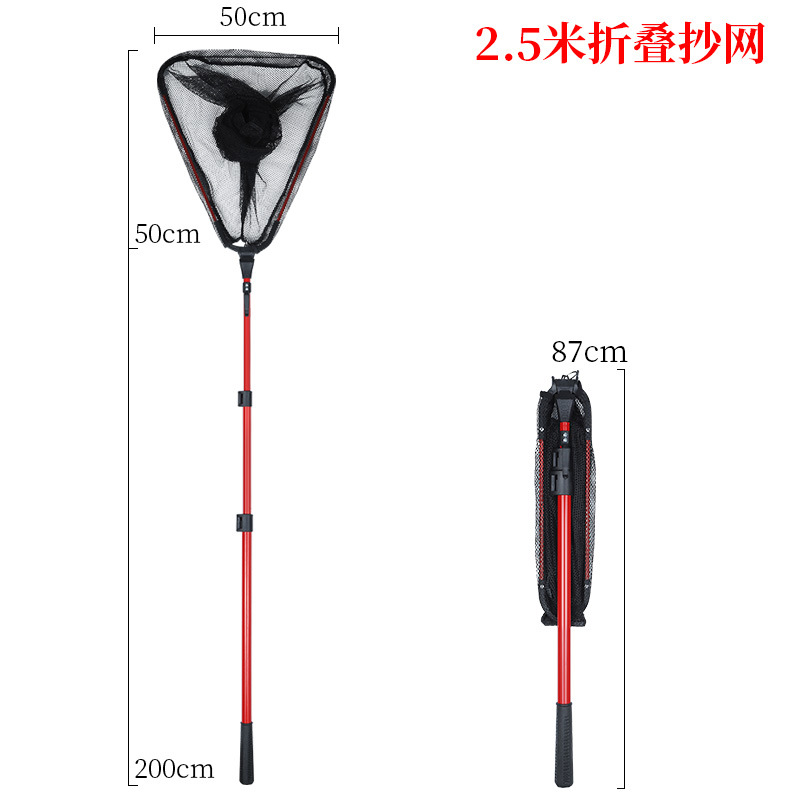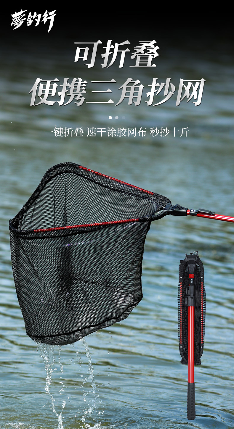 梦钓行一体式折叠抄网铝合金抄网头全套网兜巨物三角网头路亚抄网
