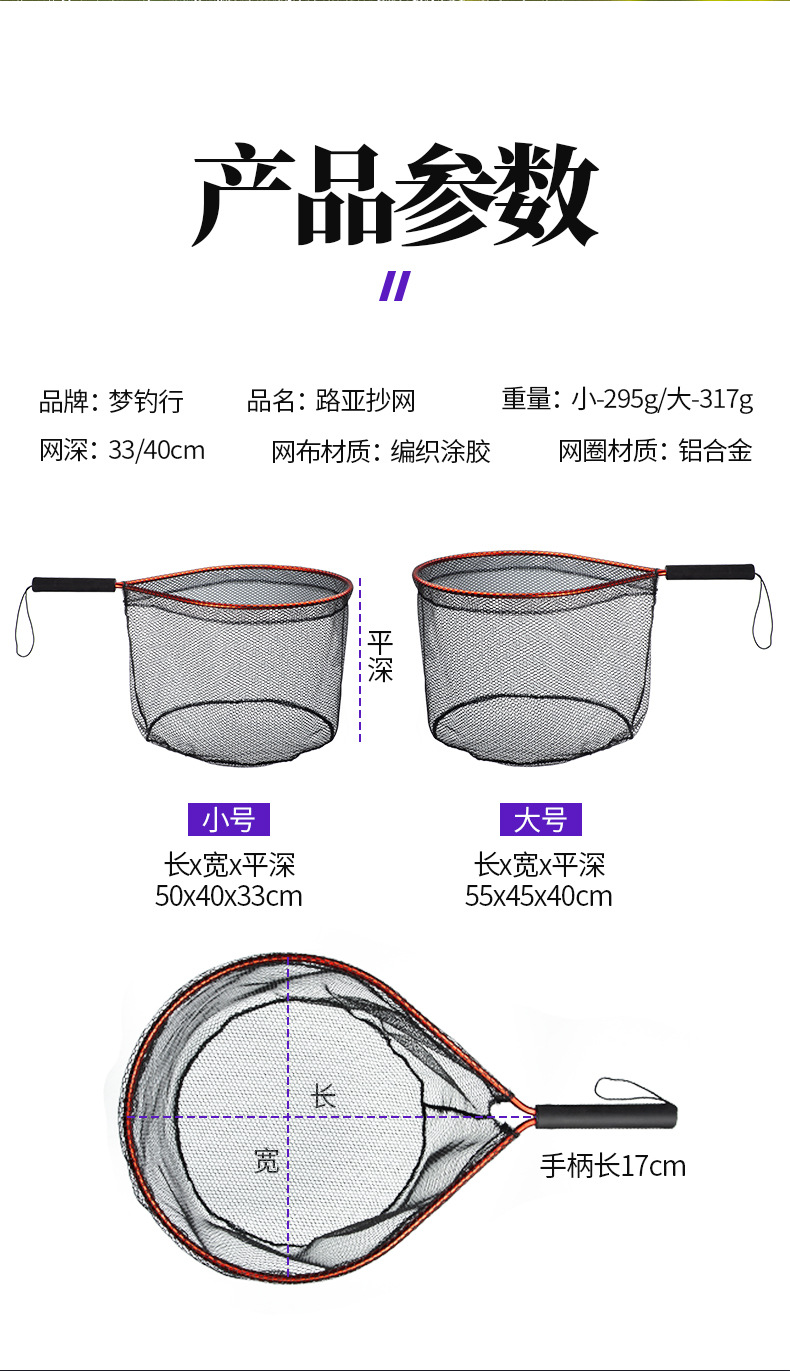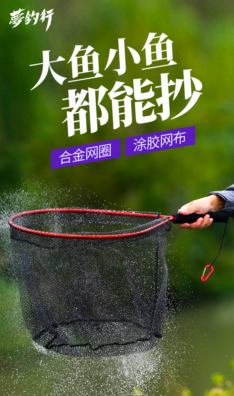 梦钓行路亚短柄手抄网钓鱼捞鱼网兜铝合金抄网头 防挂钩超轻便携