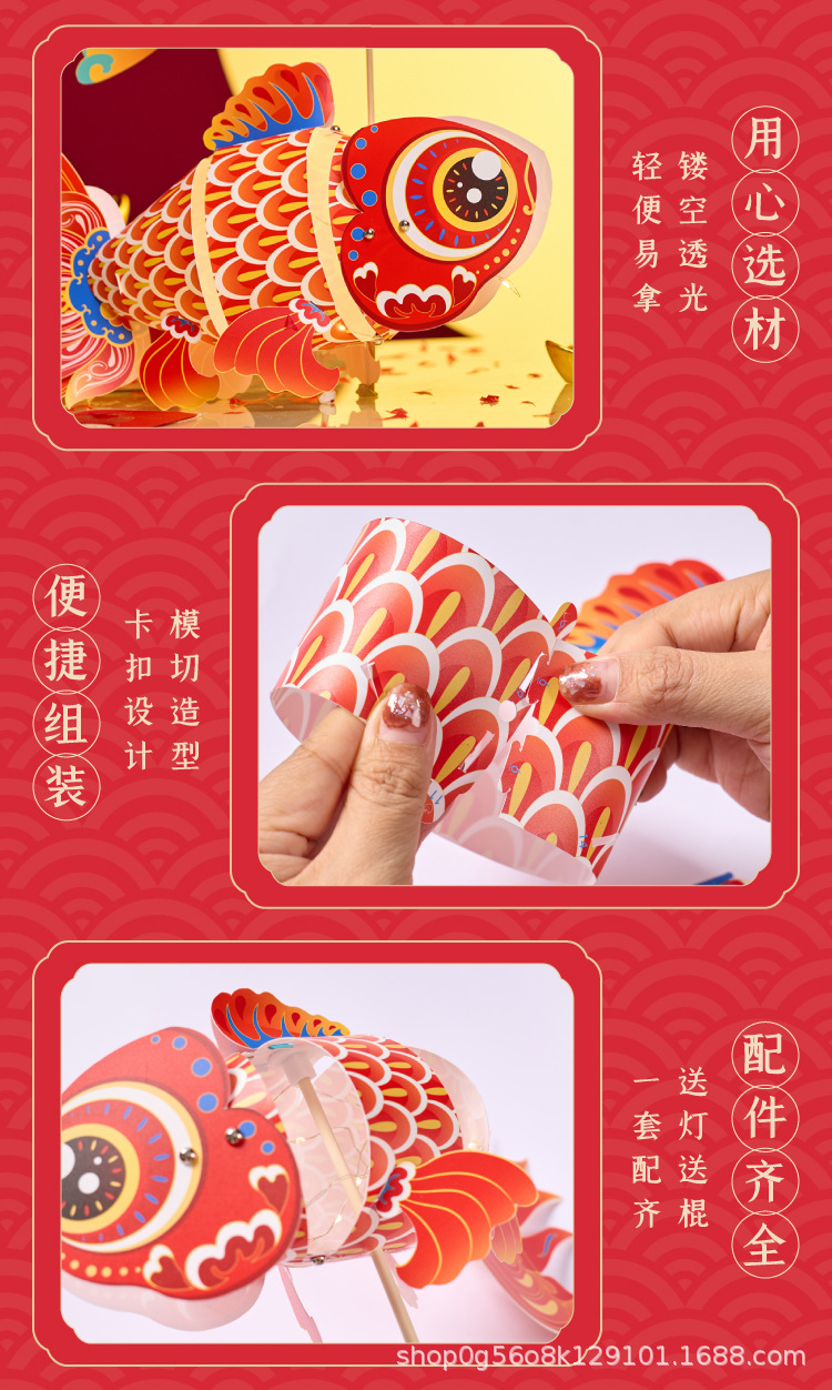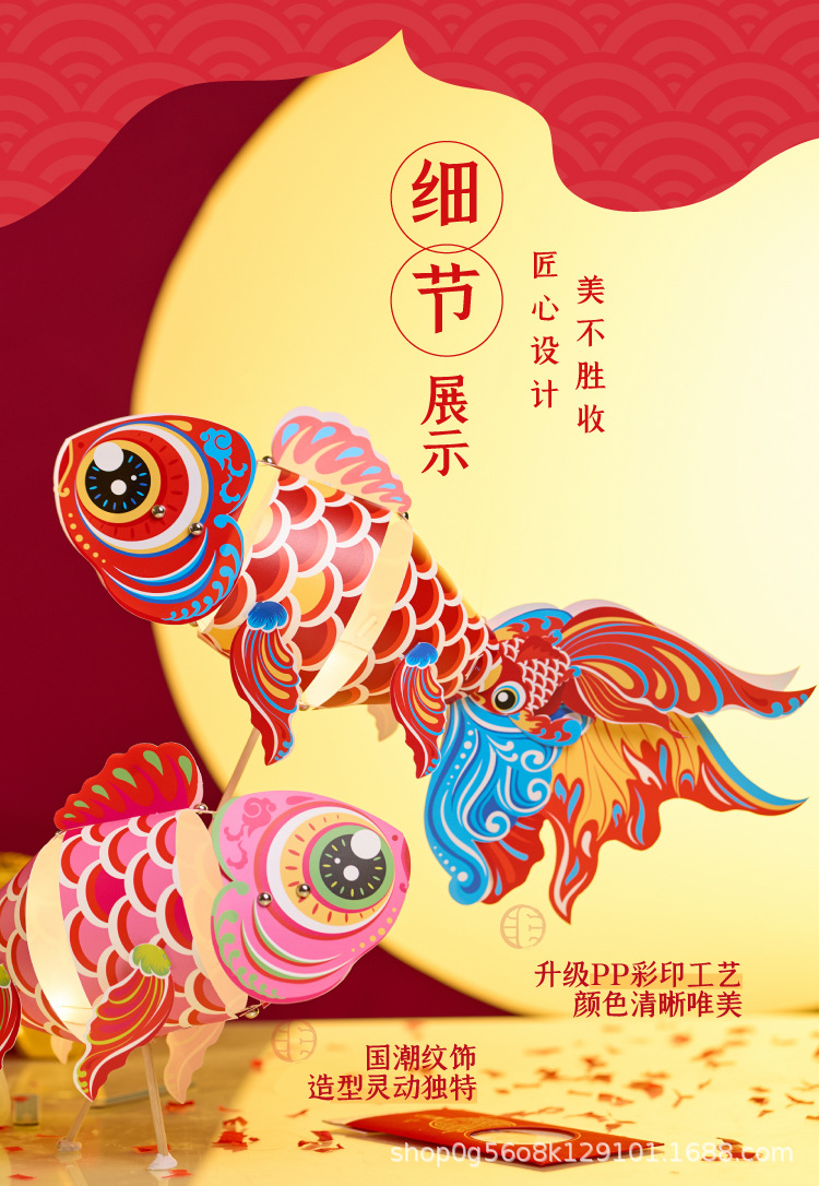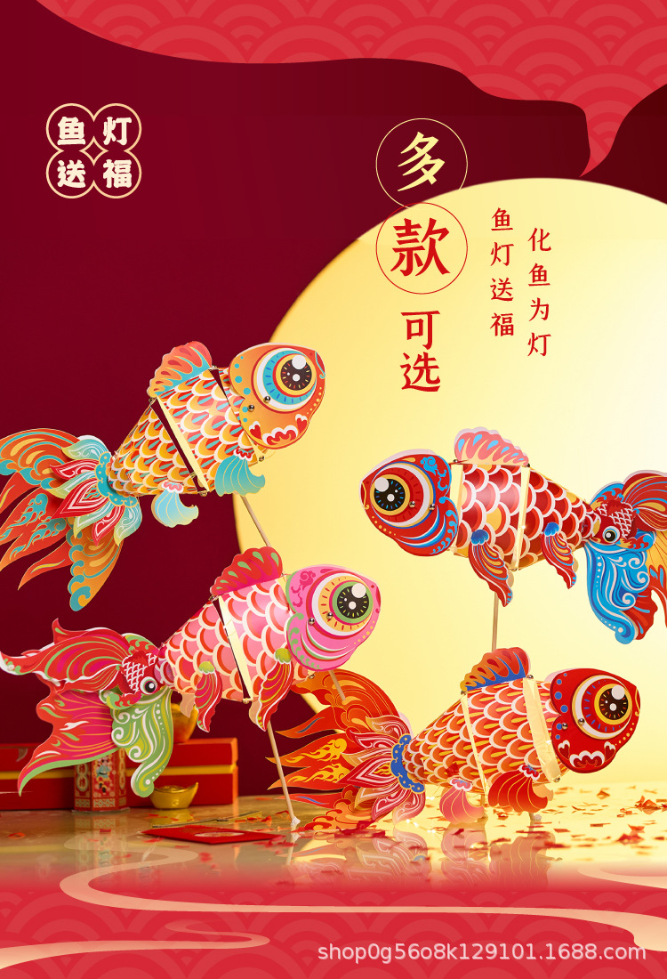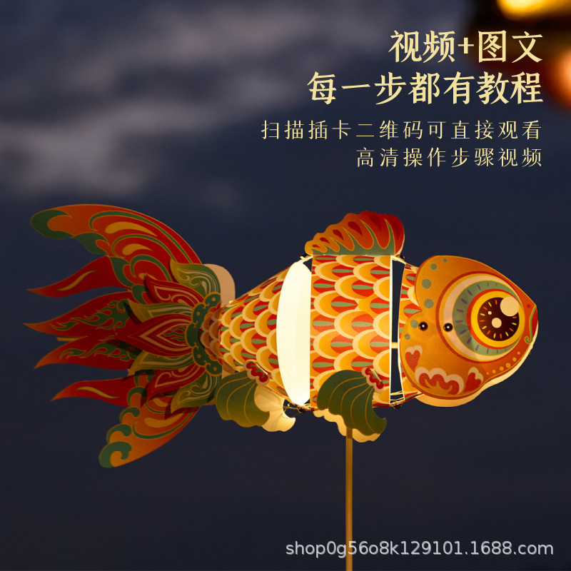 蛇年中秋节锦鲤鱼灯笼手工diy材料包国潮金鱼花灯古风手提小灯笼