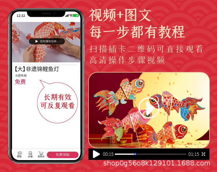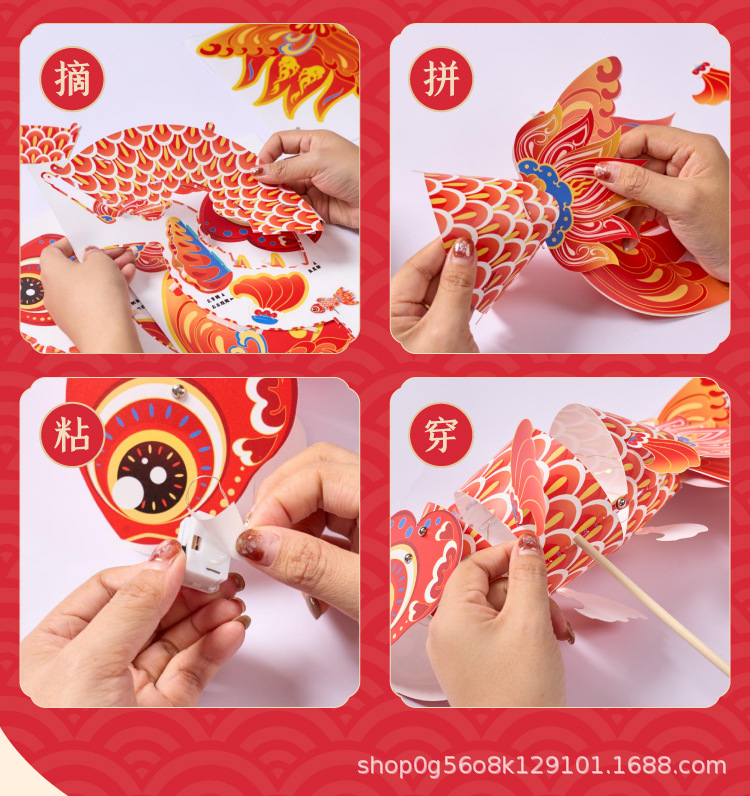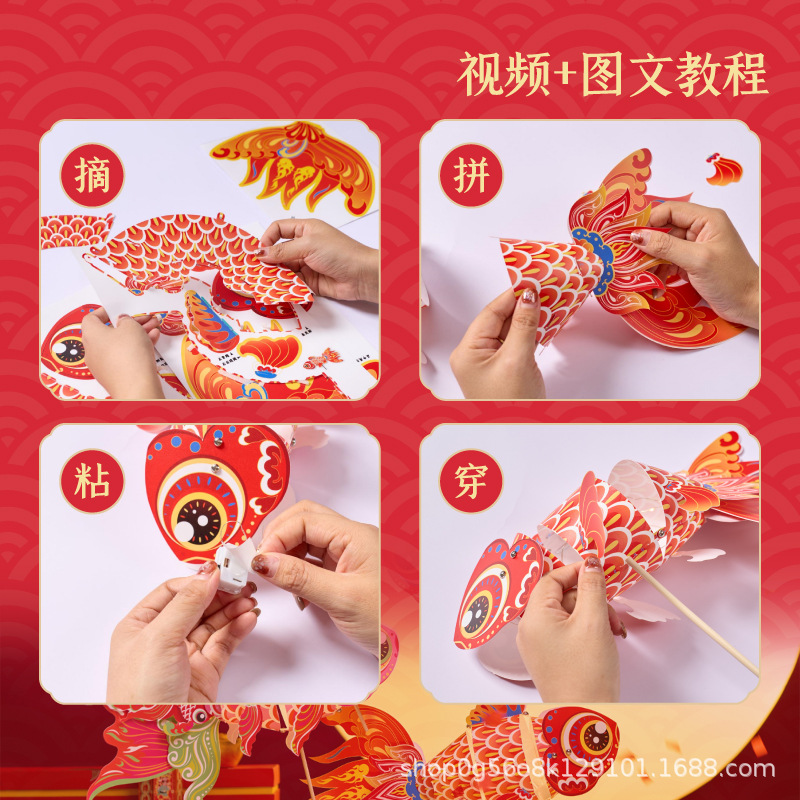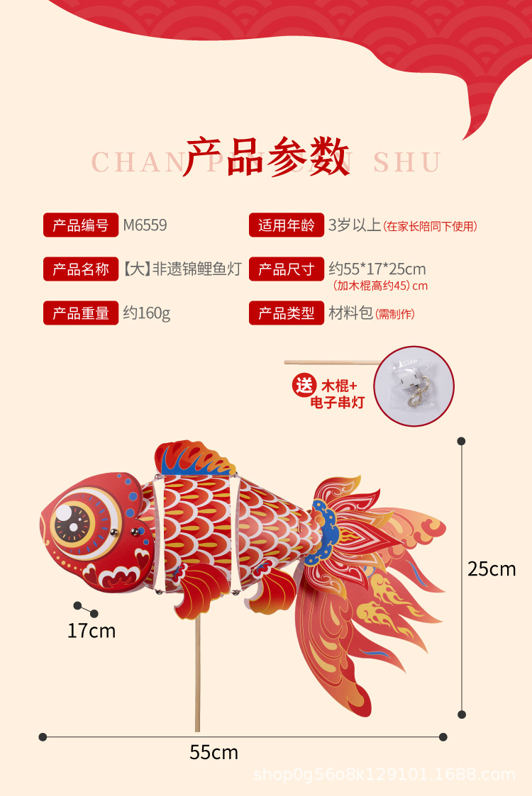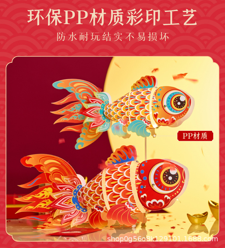 蛇年中秋节锦鲤鱼灯笼手工diy材料包国潮金鱼花灯古风手提小灯笼