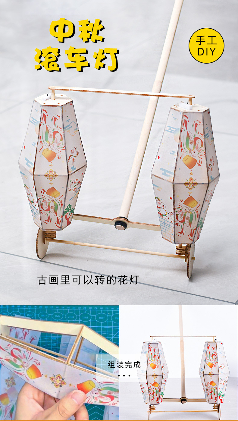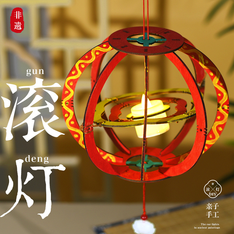 中秋节花灯滚车灯笼古风手工材料包发光滚灯国风团建diy儿童礼物