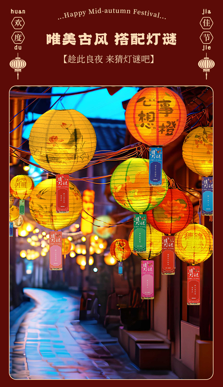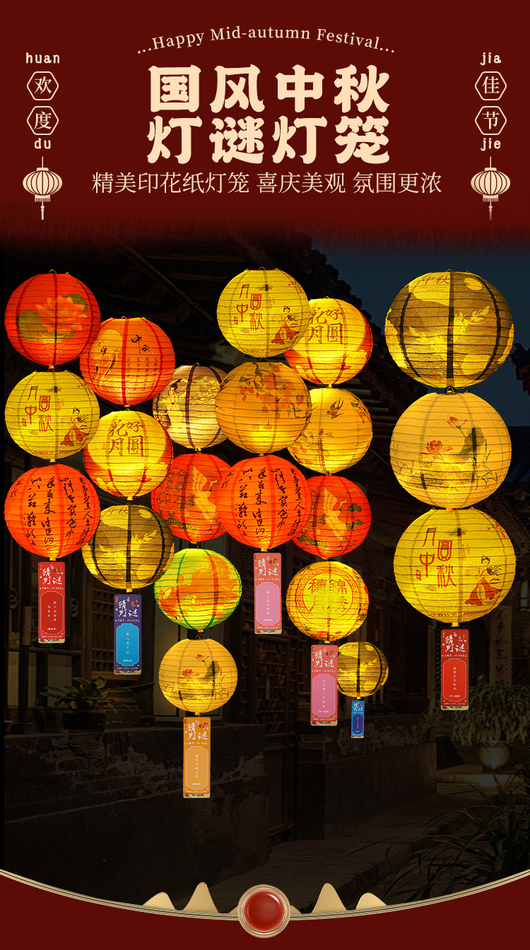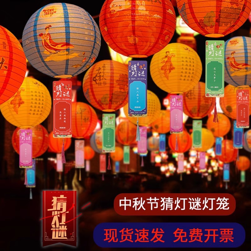 中秋节国庆节场景布置国风发光灯笼灯谜商场猜灯谜活动布置挂件