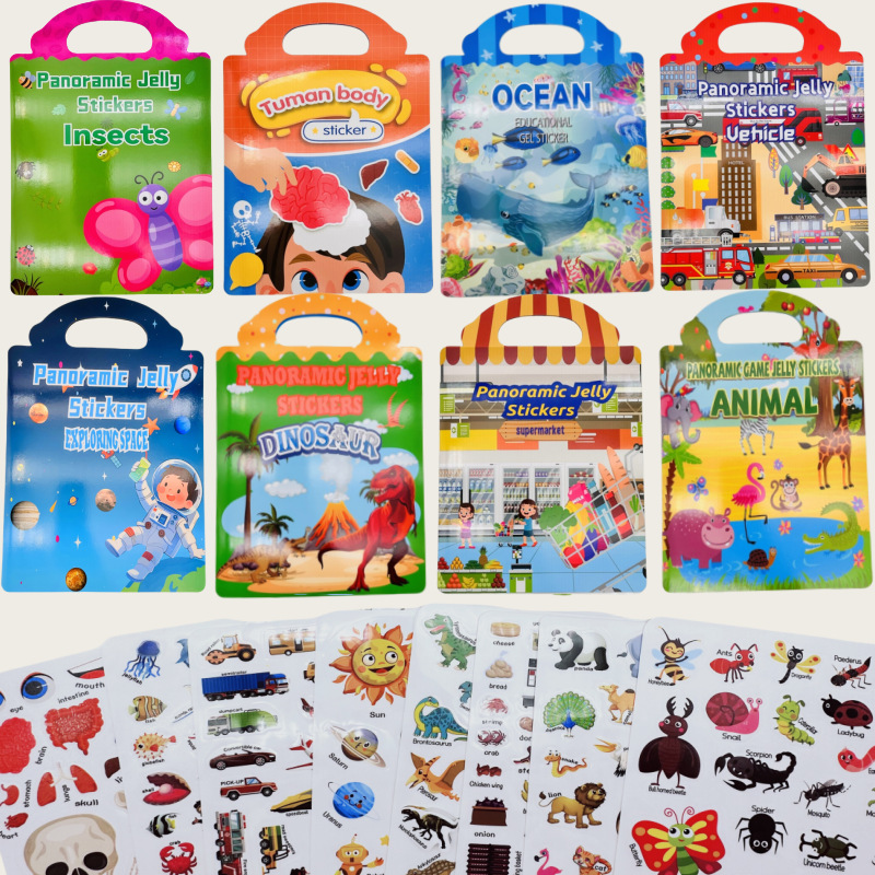 趣味果冻贴纸书儿童益智玩具03-6岁宝宝反复贴可水洗果冻贴安静书