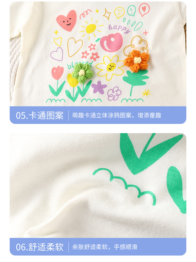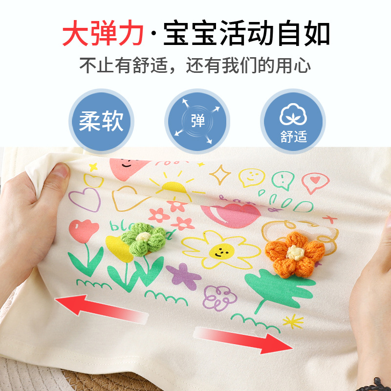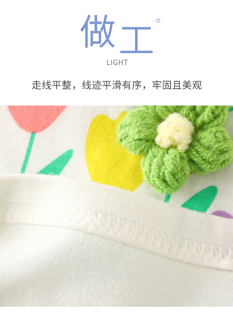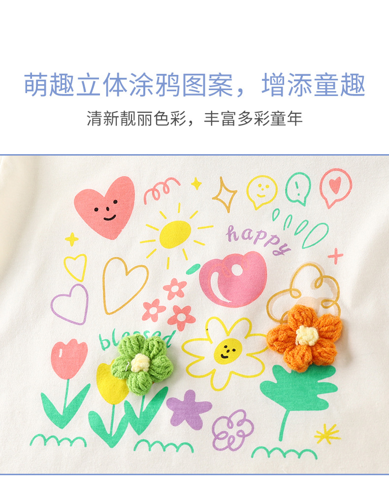 25年夏季新款清凉彩绘花朵圆领短袖女童纯棉t恤儿童宝宝百搭上衣