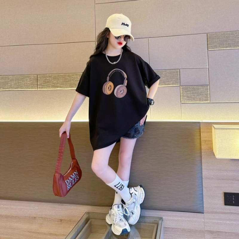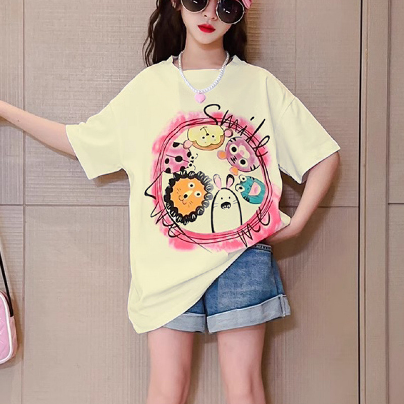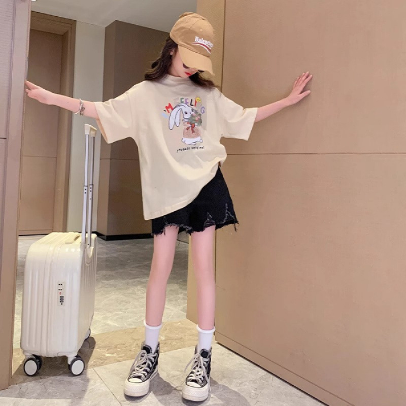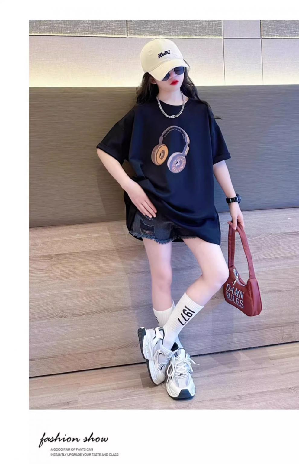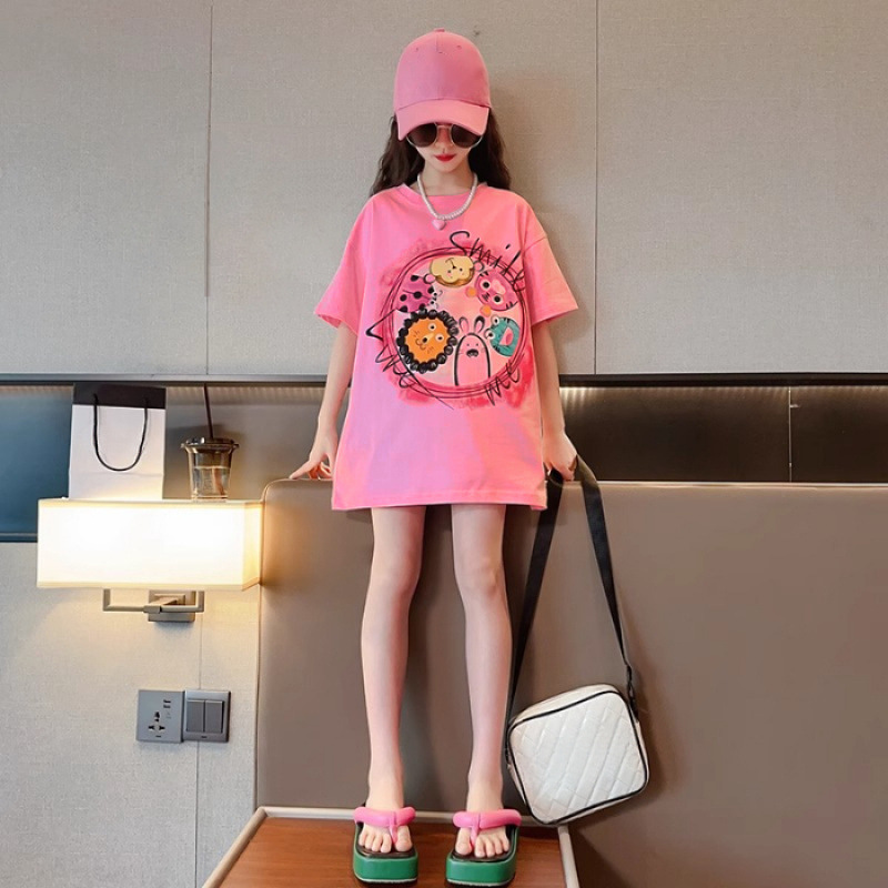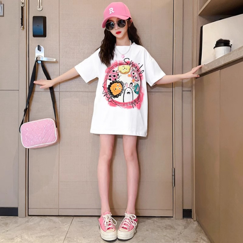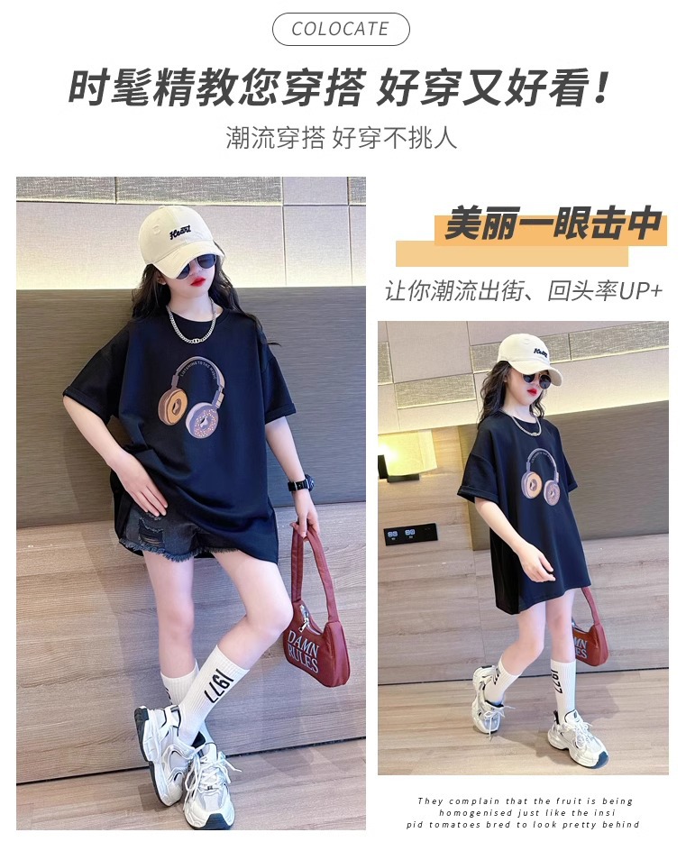 纯棉女童t恤短袖2025新款夏季儿童中大童夏装上衣半袖潮款时尚