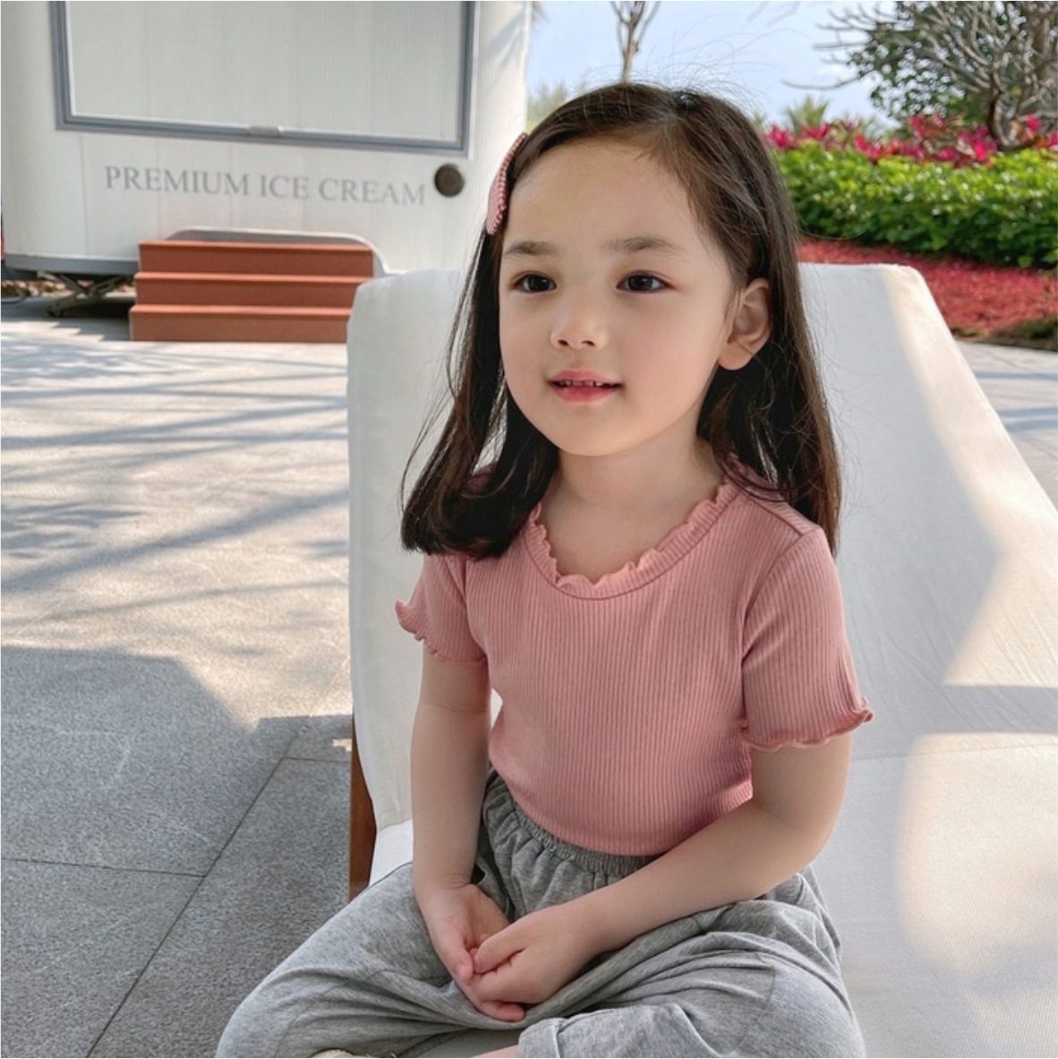 女童夏季短袖T恤圆领韩货童装新款儿童纯色打底衫针织内搭上衣批6