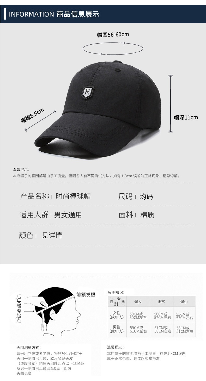 帽子男女春秋夏薄款速干鸭舌帽运动跑步户外棒球帽遮阳防晒太阳帽