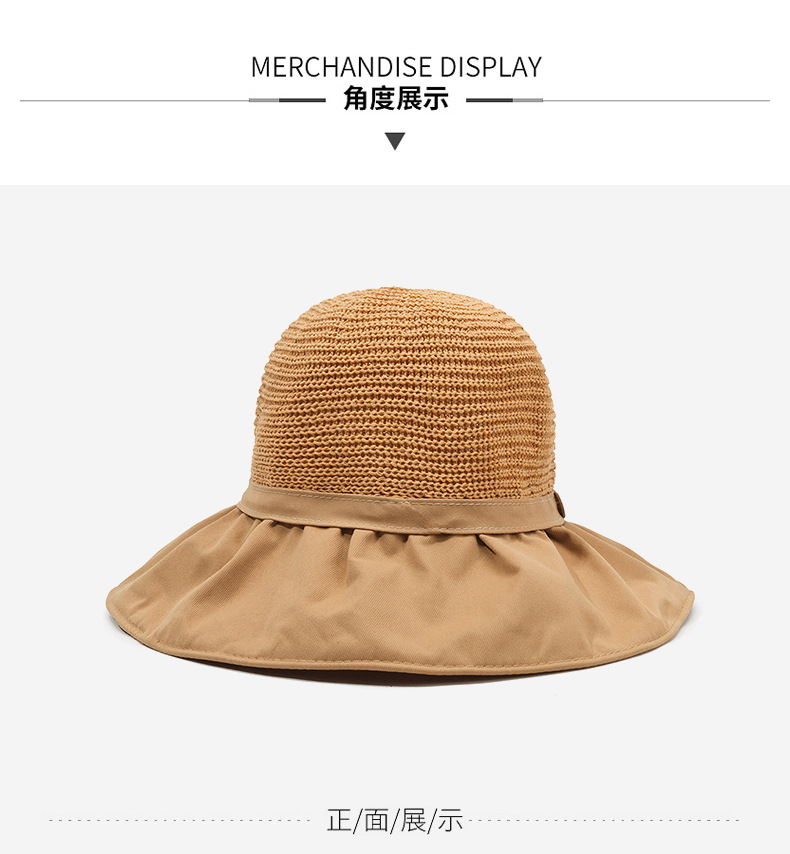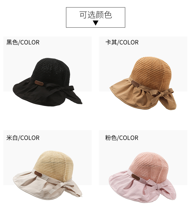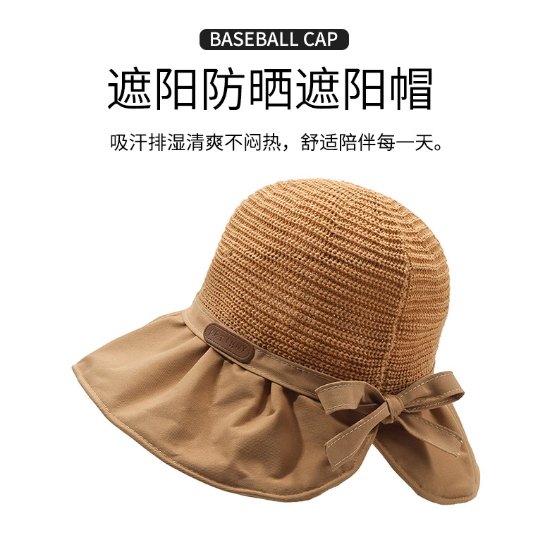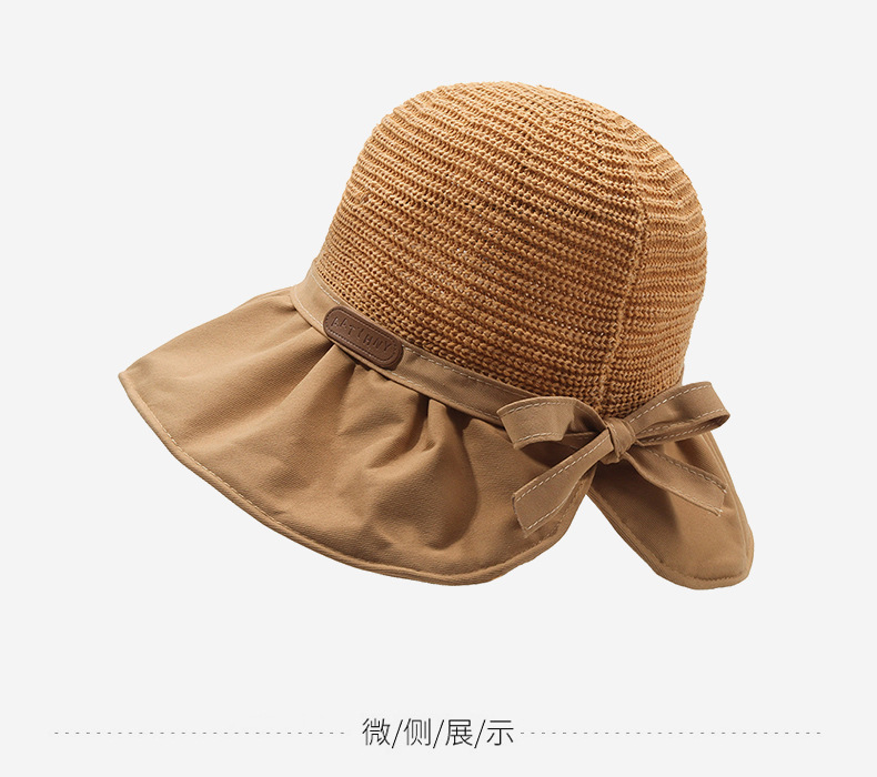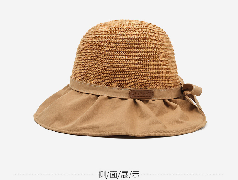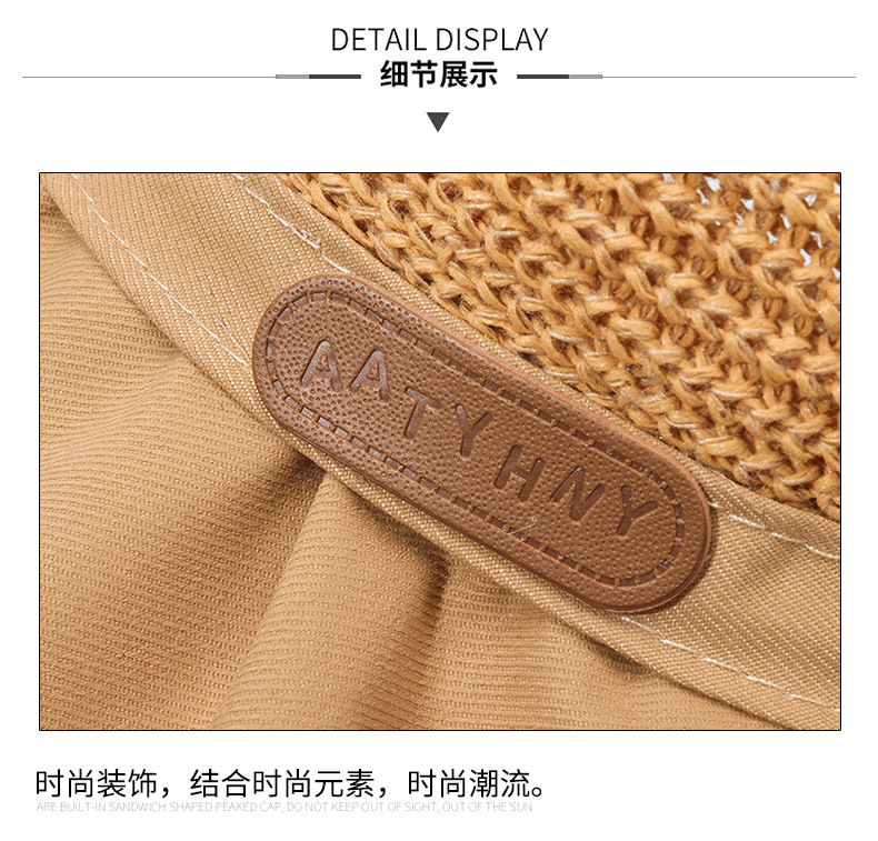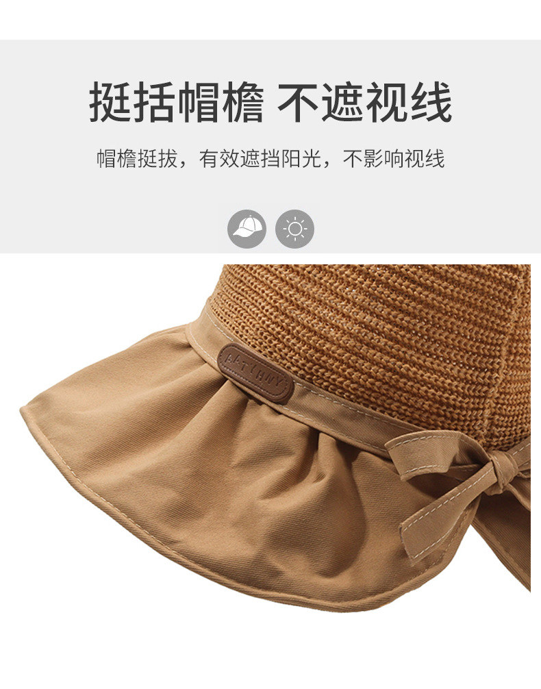 遮阳帽女韩版字母标渔夫帽镂空针织草帽大檐后开叉太阳帽沙滩防晒