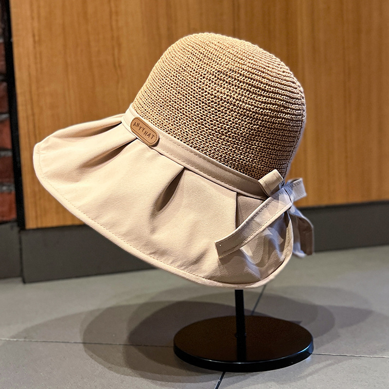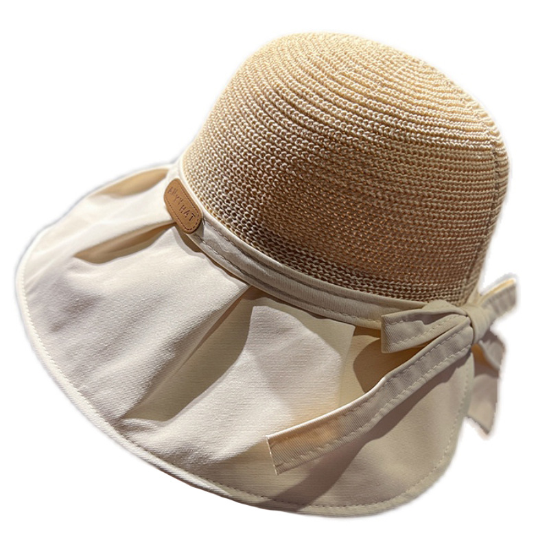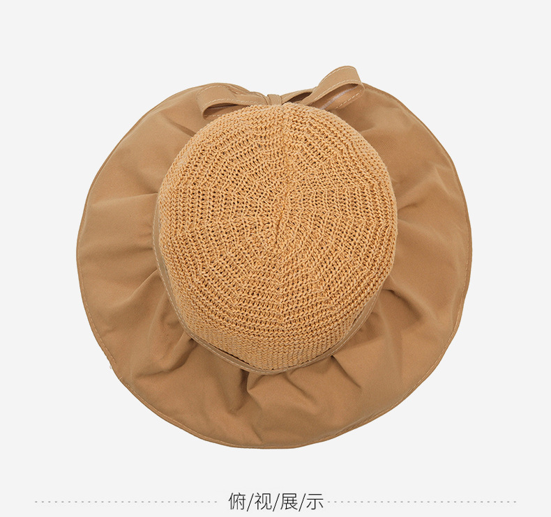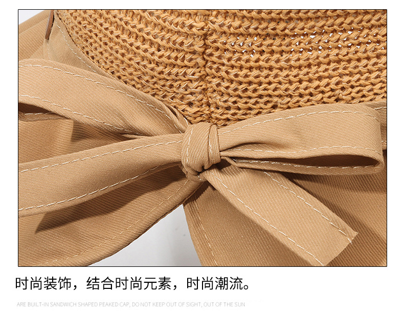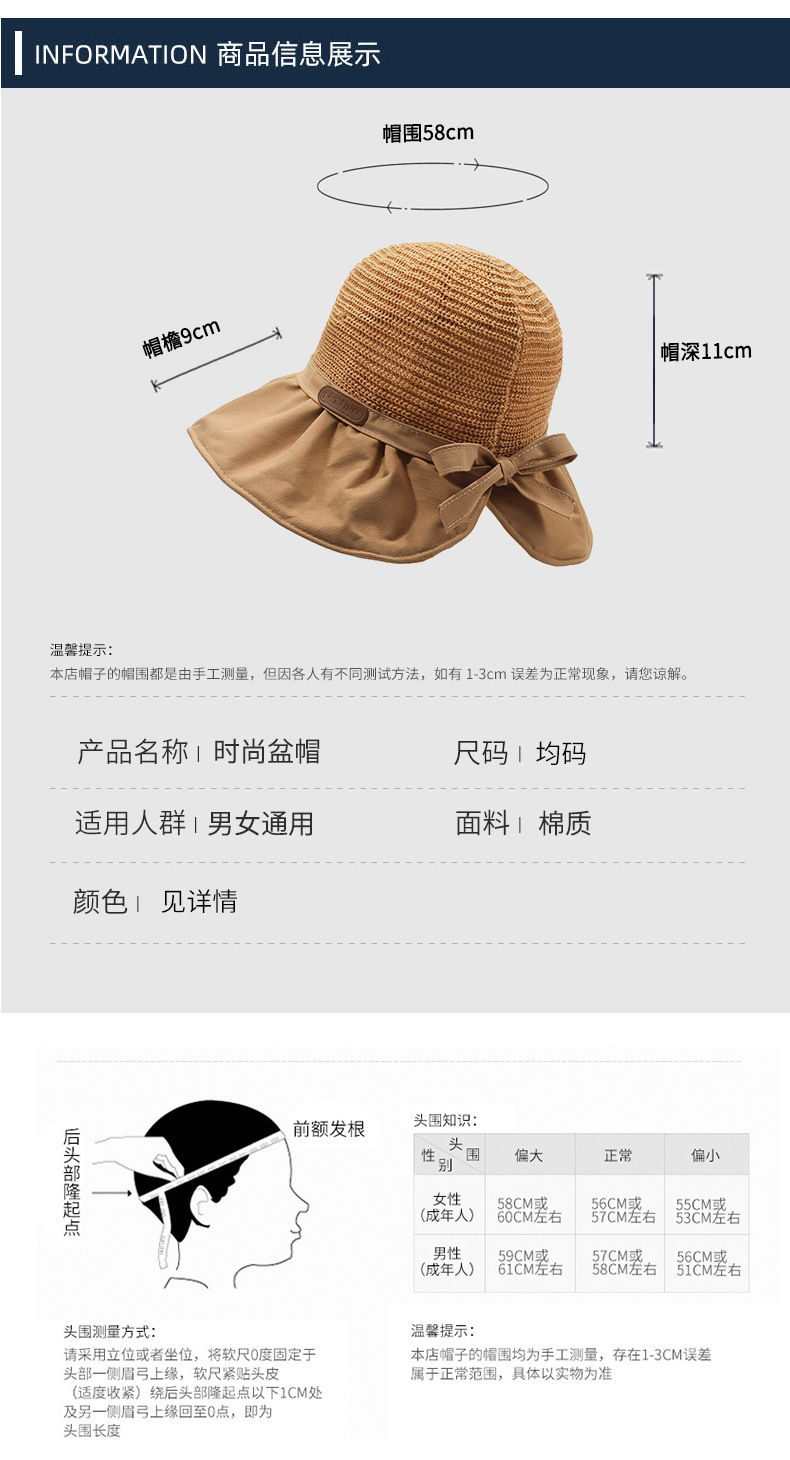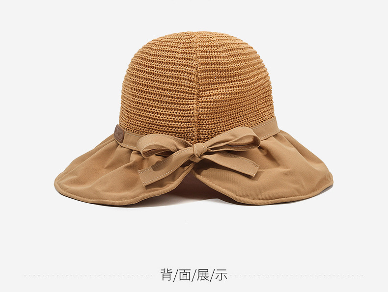 遮阳帽女韩版字母标渔夫帽镂空针织草帽大檐后开叉太阳帽沙滩防晒
