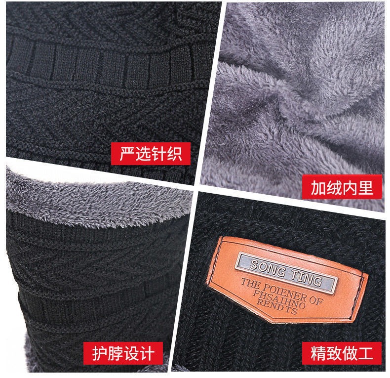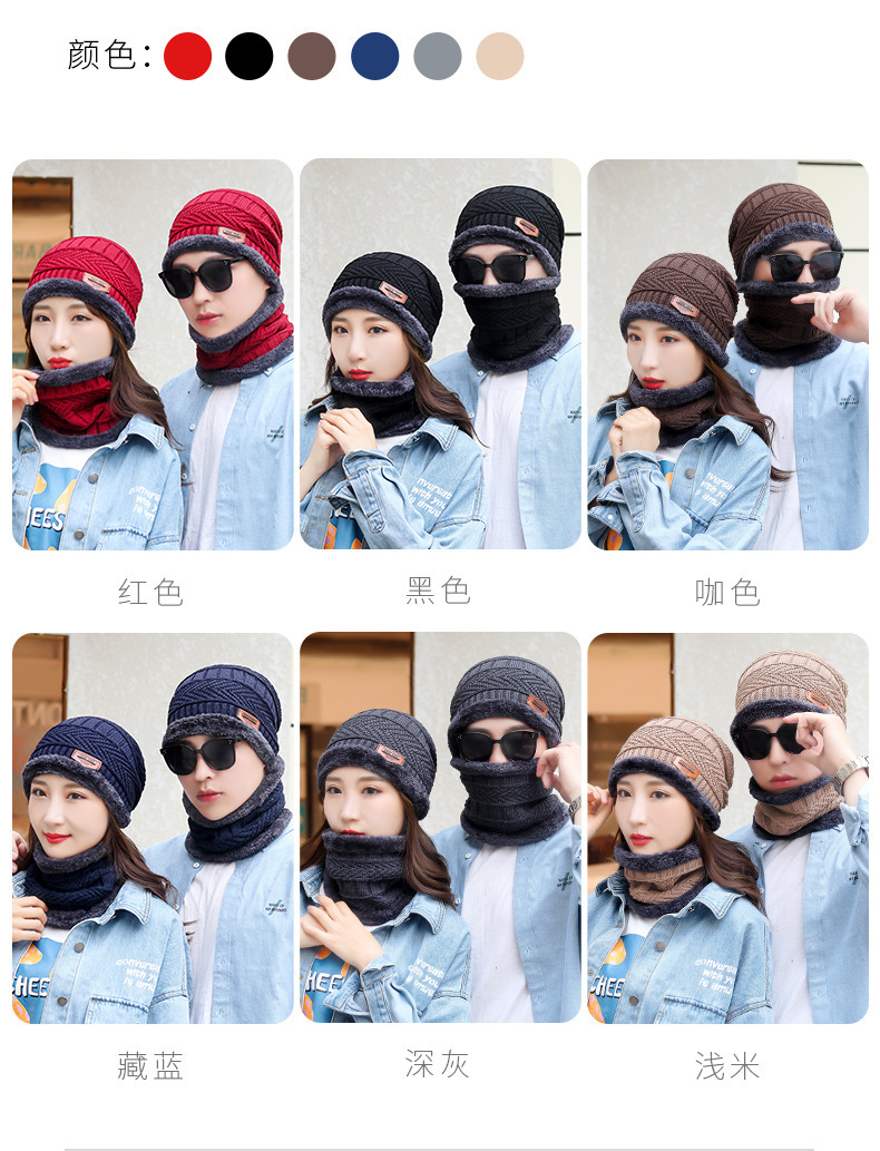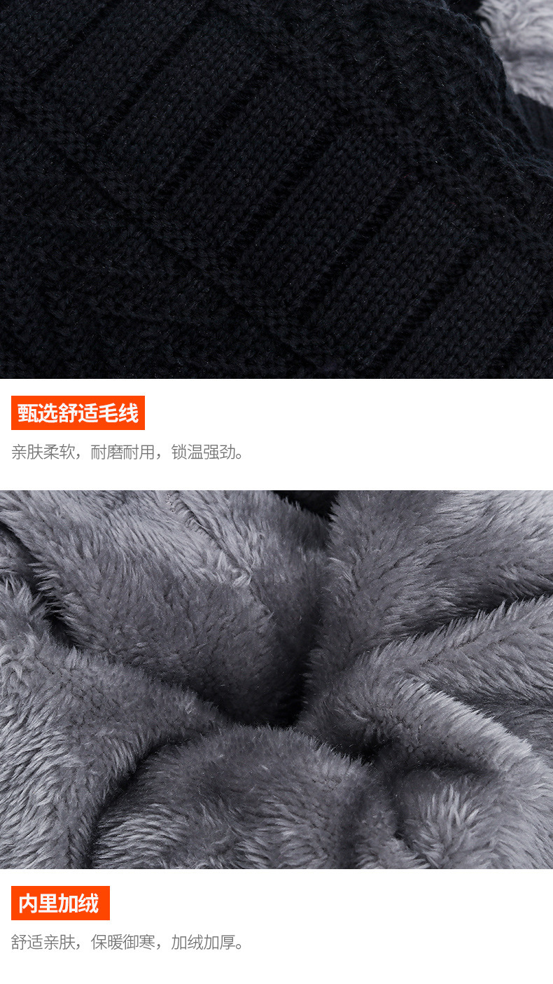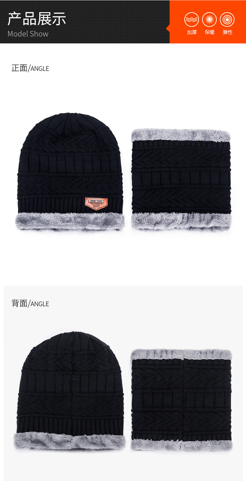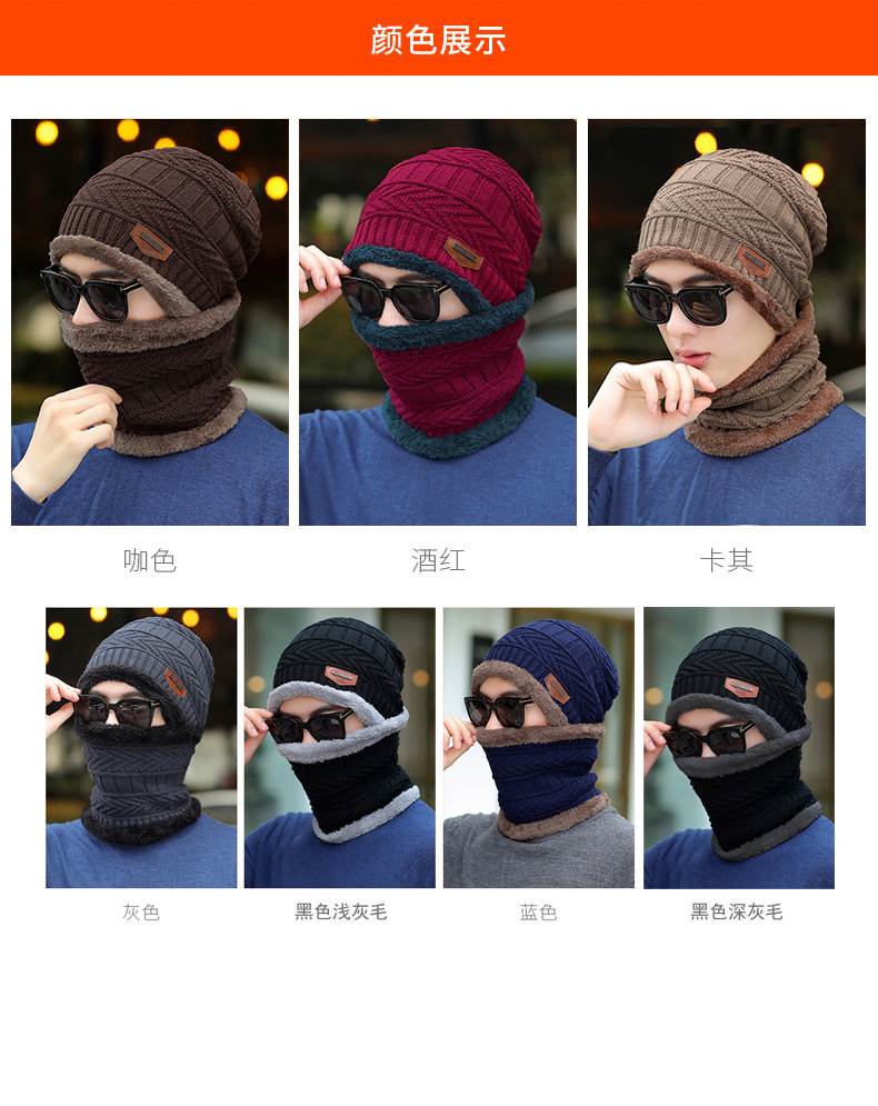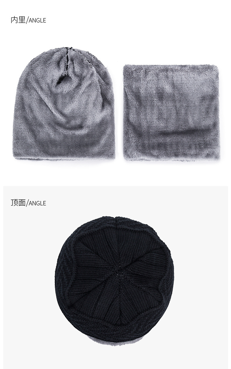 冬季针织帽子男加绒保暖围脖一体帽加厚毛线套帽女亲子帽跨境两件