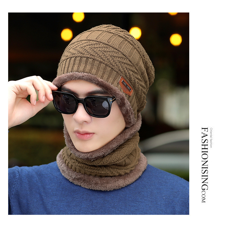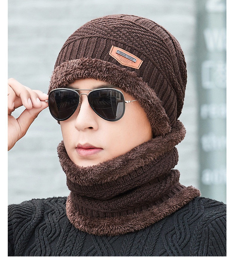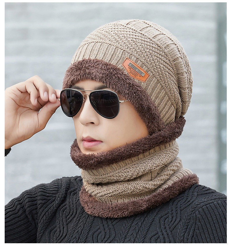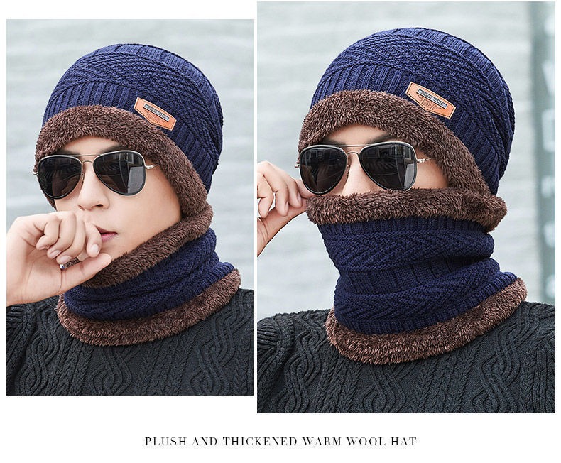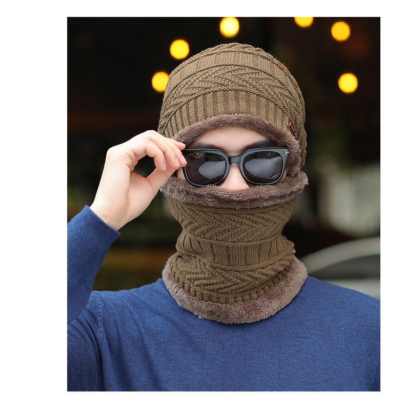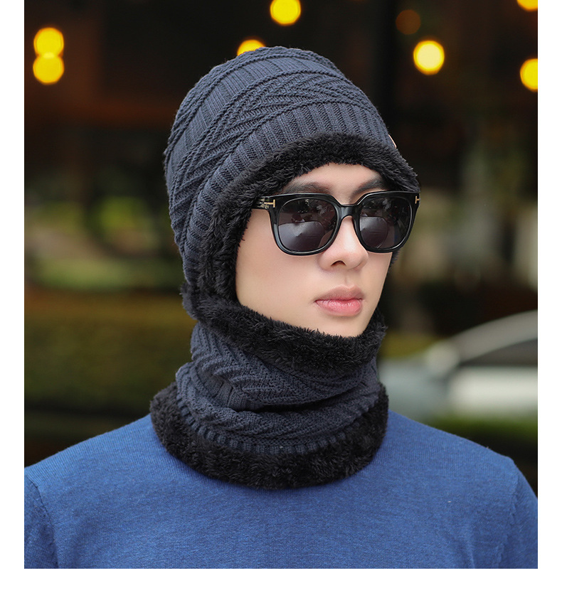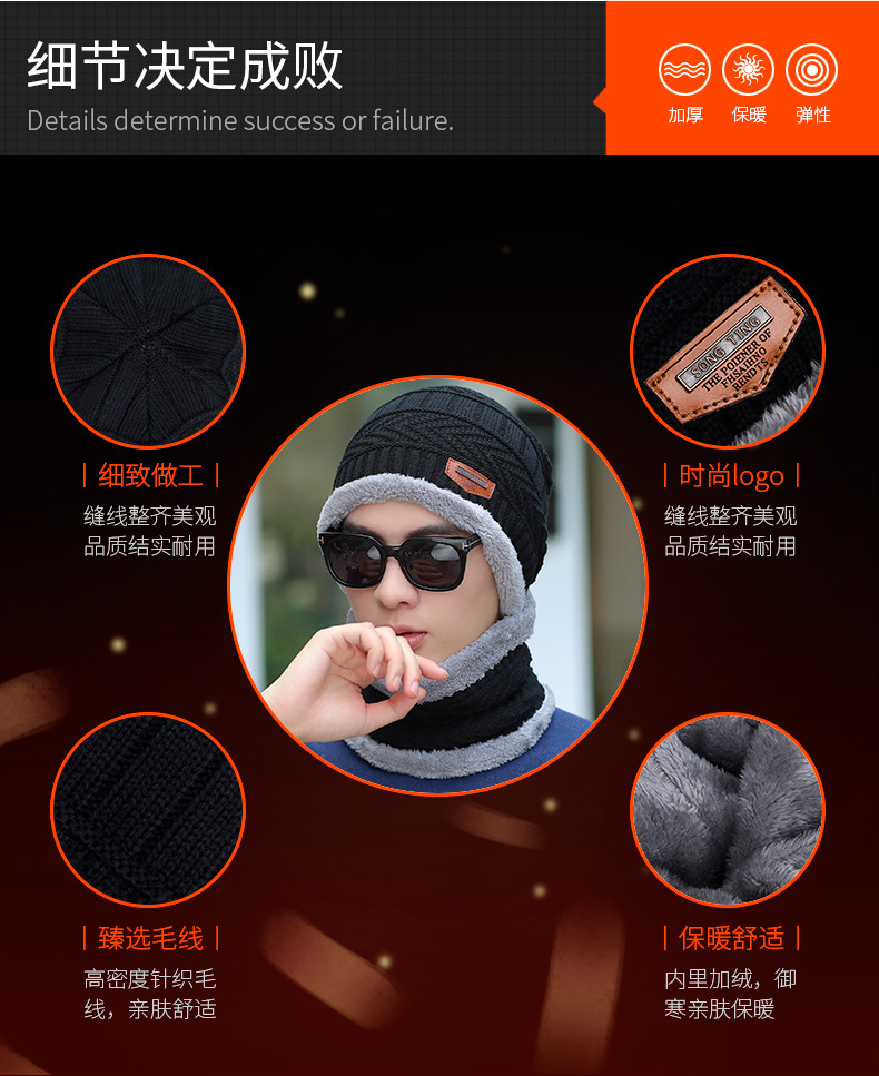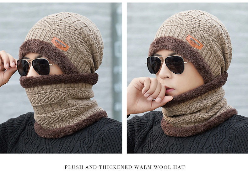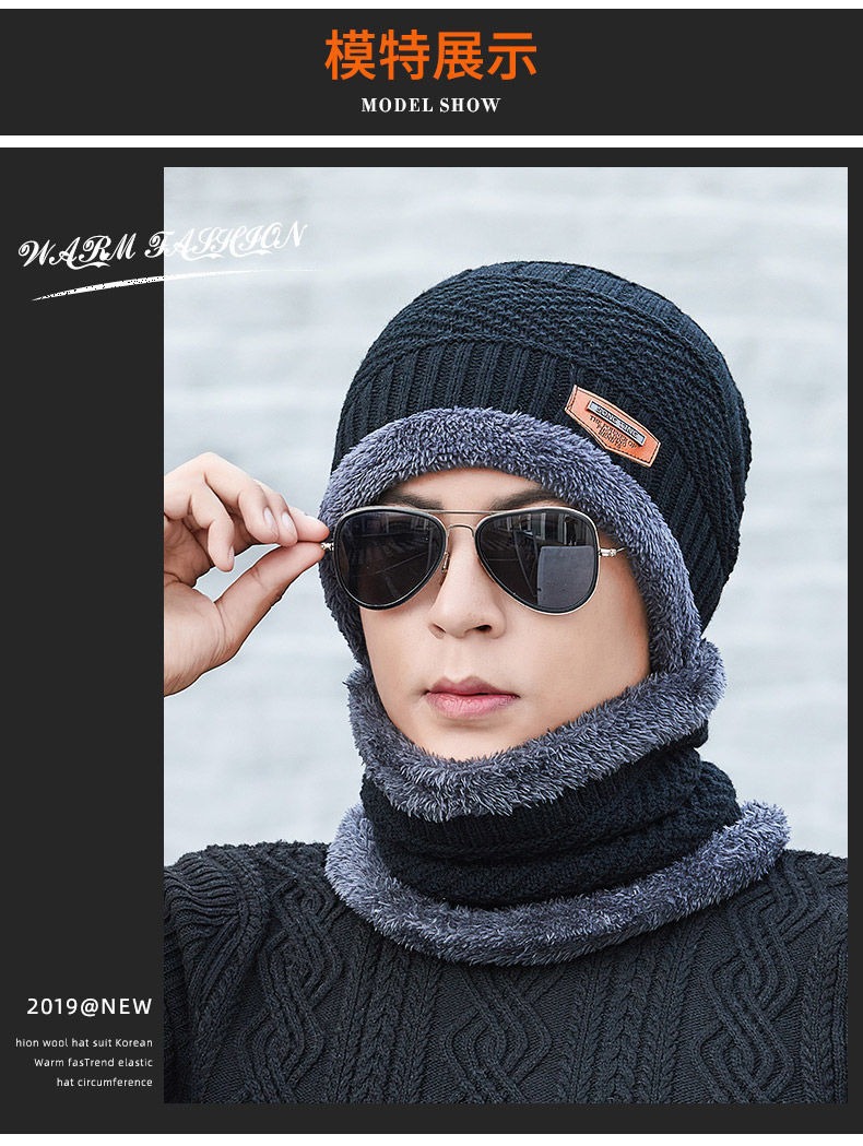 冬季针织帽子男加绒保暖围脖一体帽加厚毛线套帽女亲子帽跨境两件