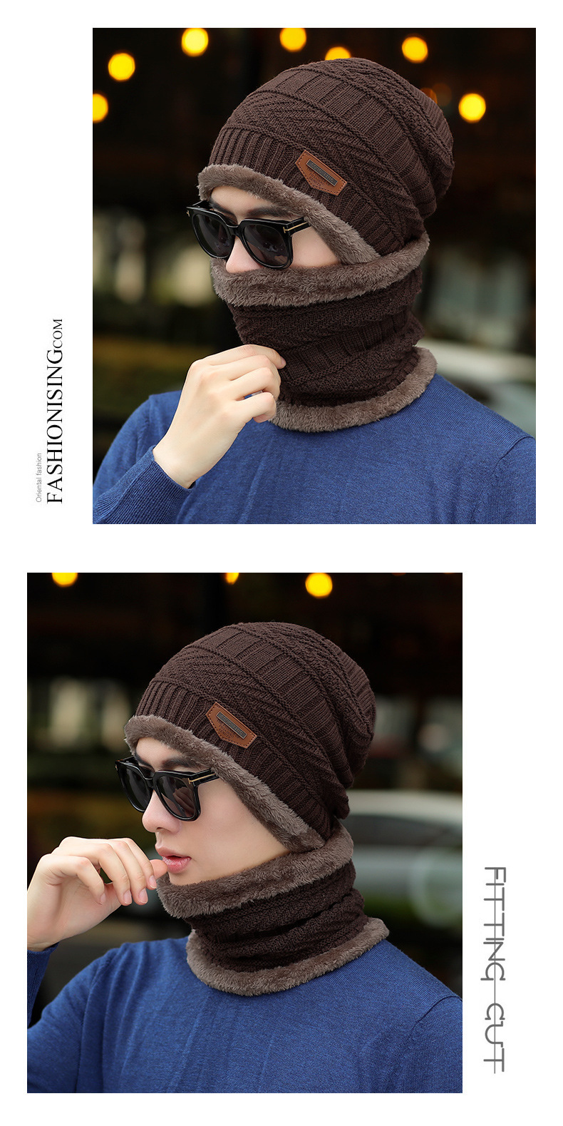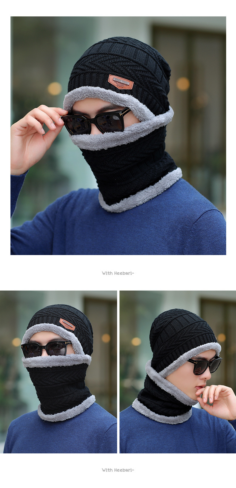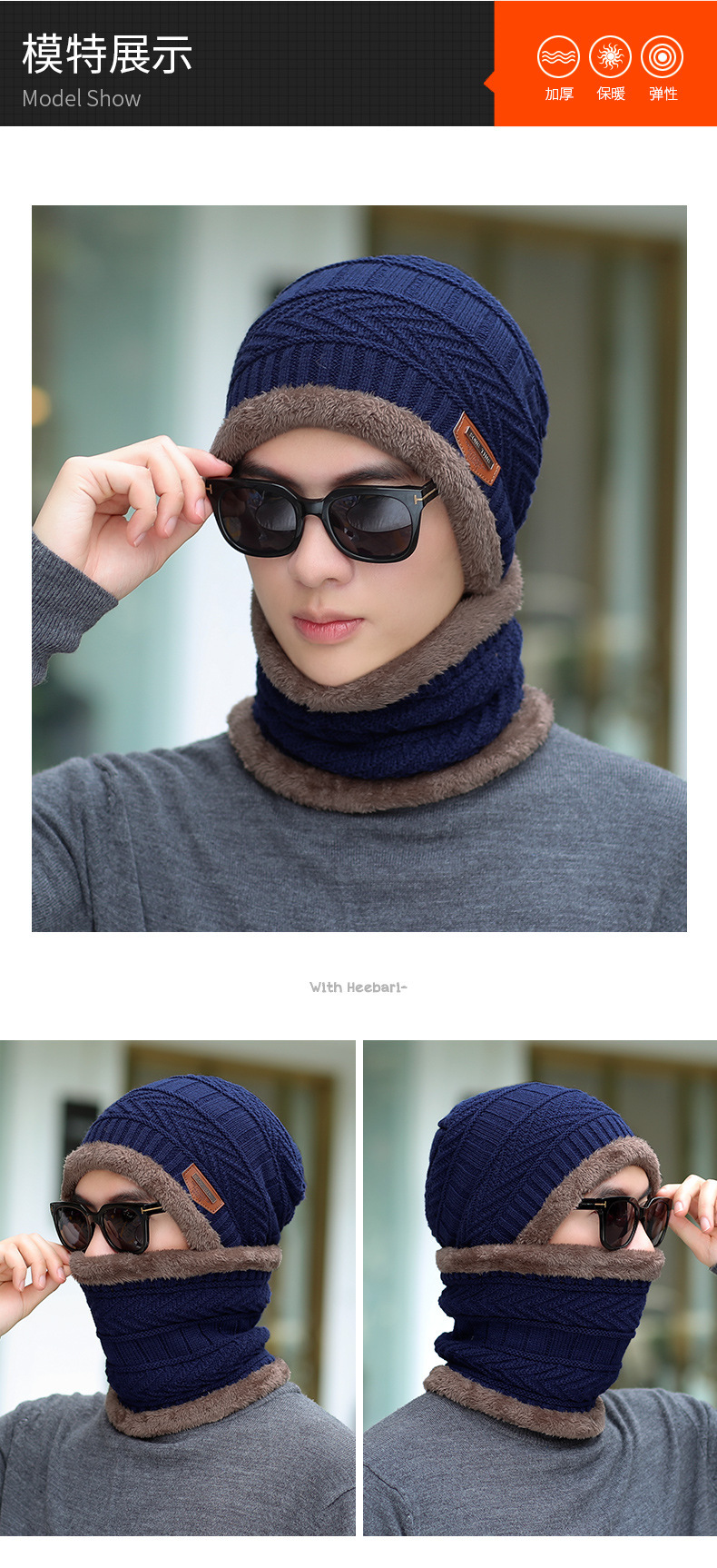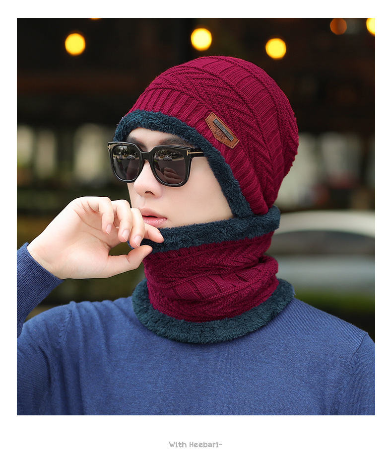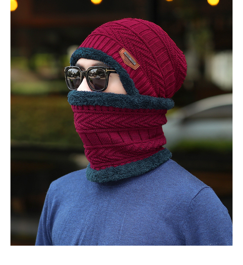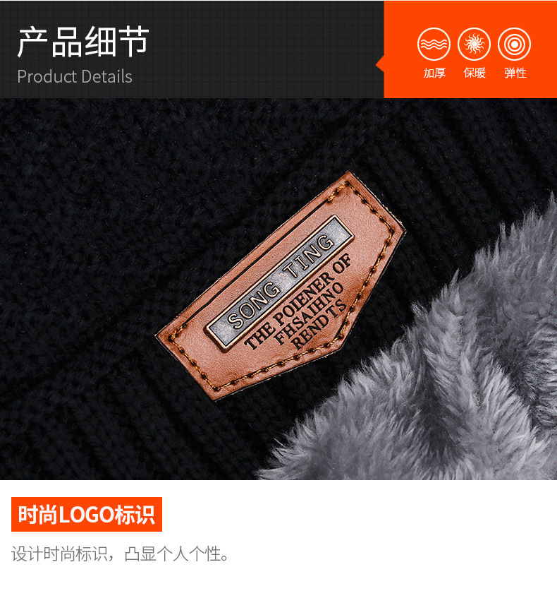 冬季针织帽子男加绒保暖围脖一体帽加厚毛线套帽女亲子帽跨境两件
