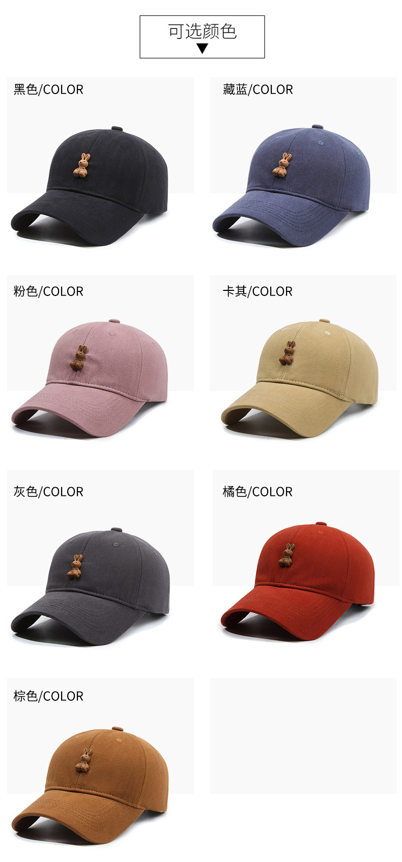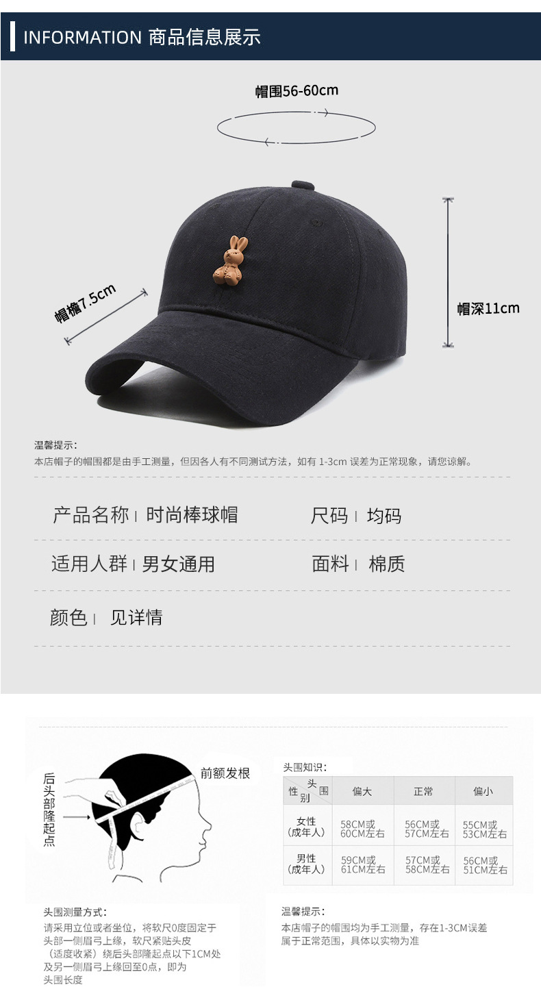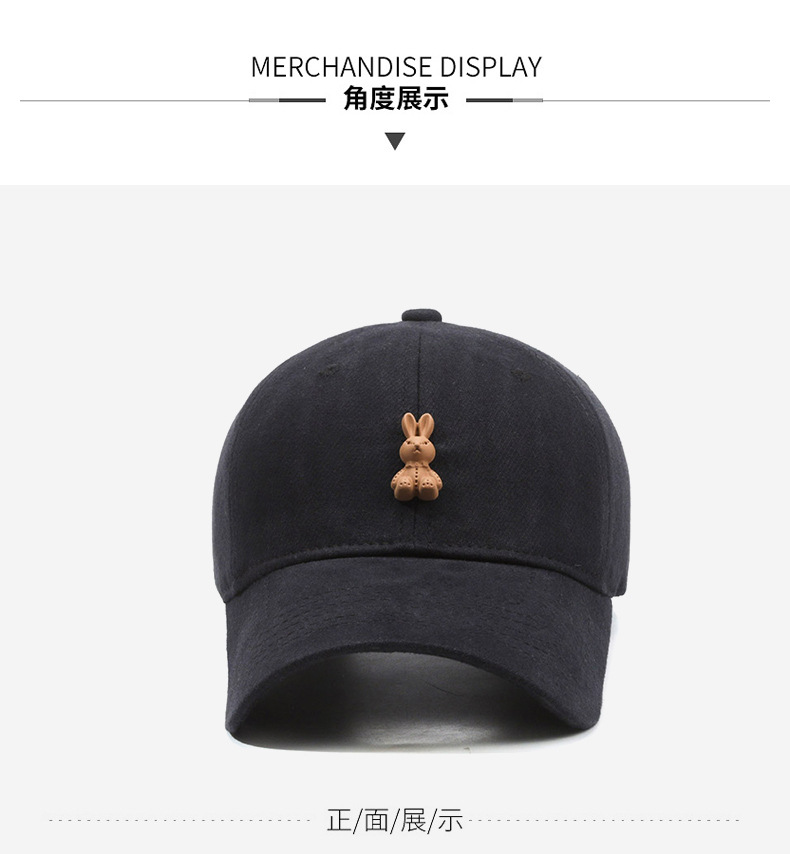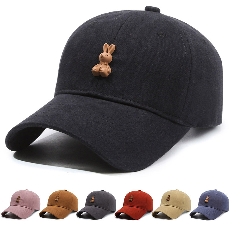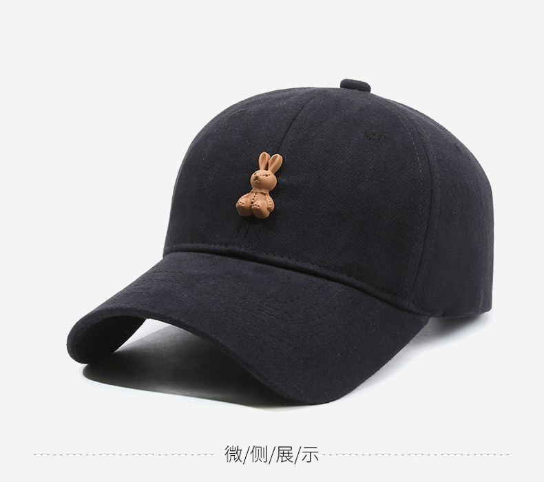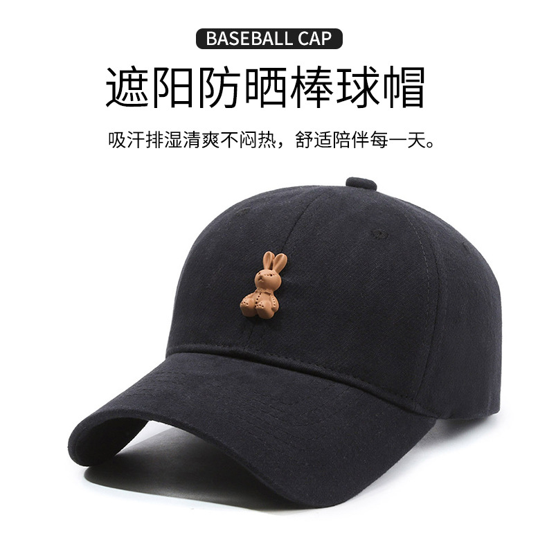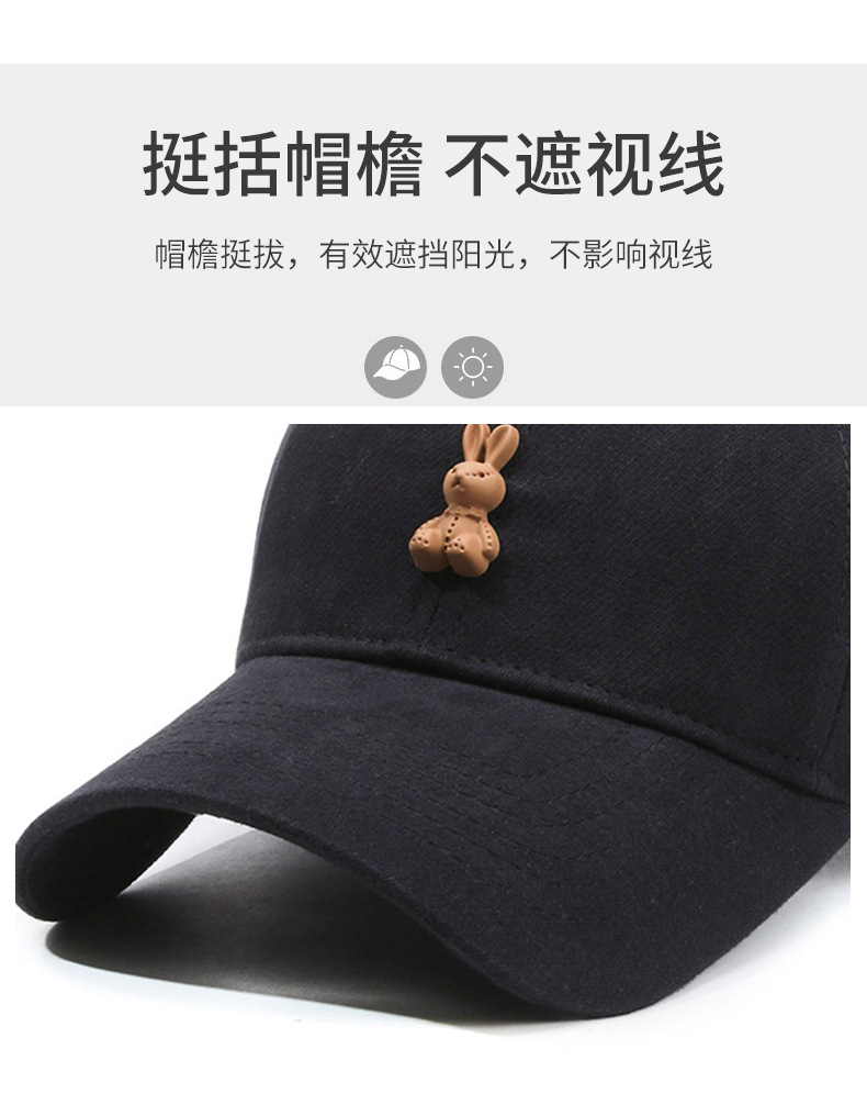 高品质磨毛软顶鸭舌帽子女生韩系小兔子棒球帽宽檐显脸小男士弯檐