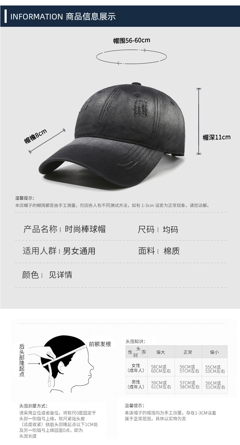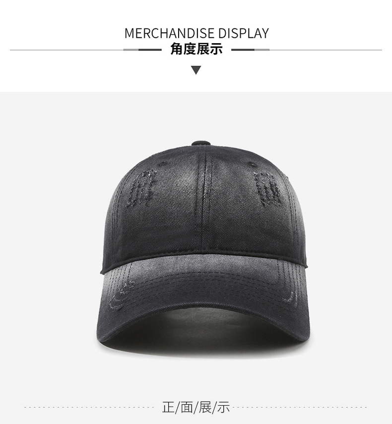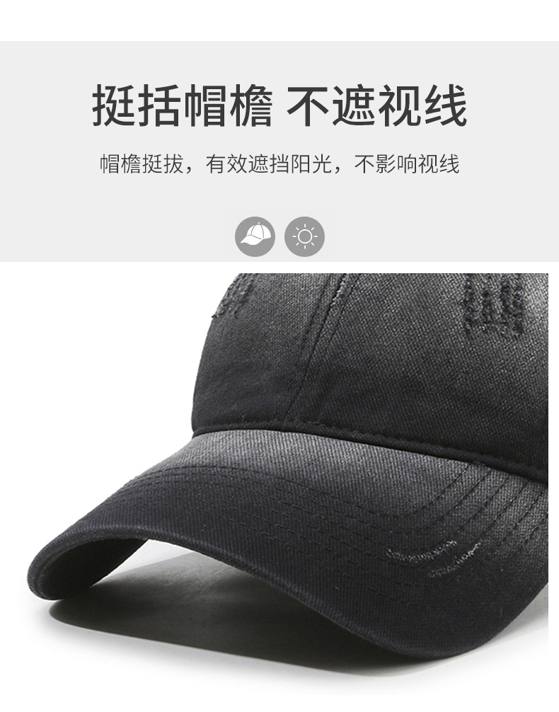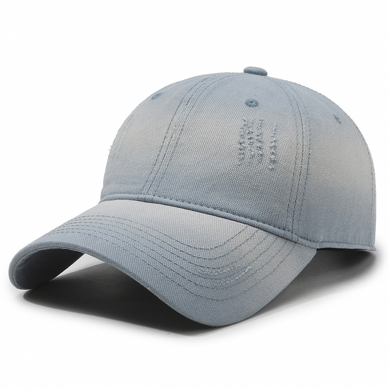 街头做旧破洞亮色棒球帽男女同款韩系大帽檐渐变色时尚休闲鸭舌帽