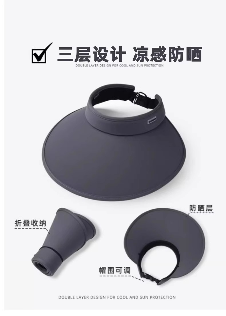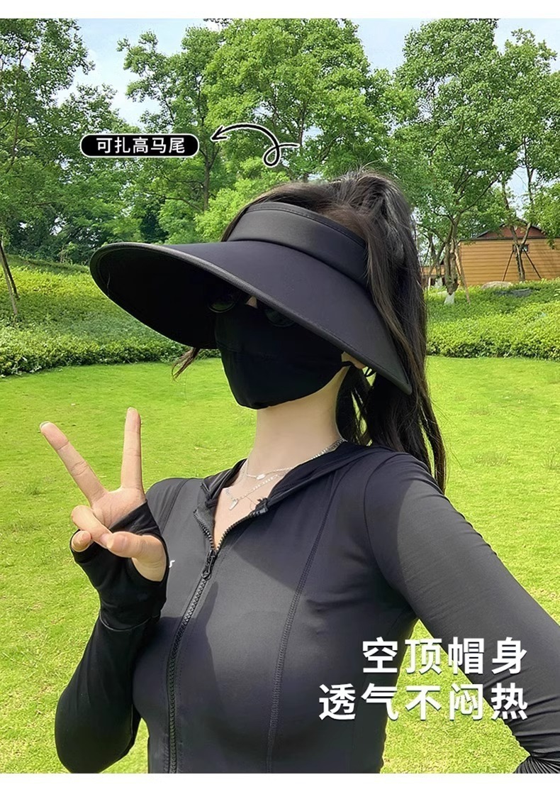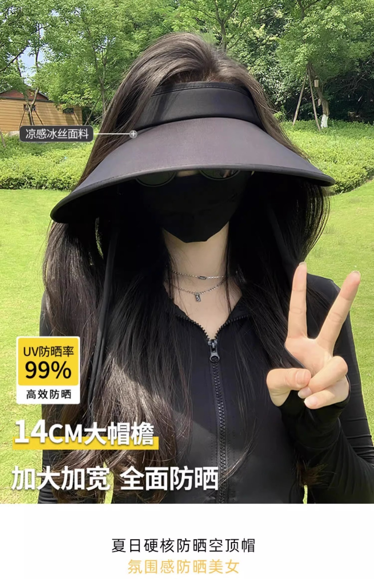 UPF50+女款2024新款大帽檐防晒帽夏防晒帽女空顶遮阳帽双面冰丝