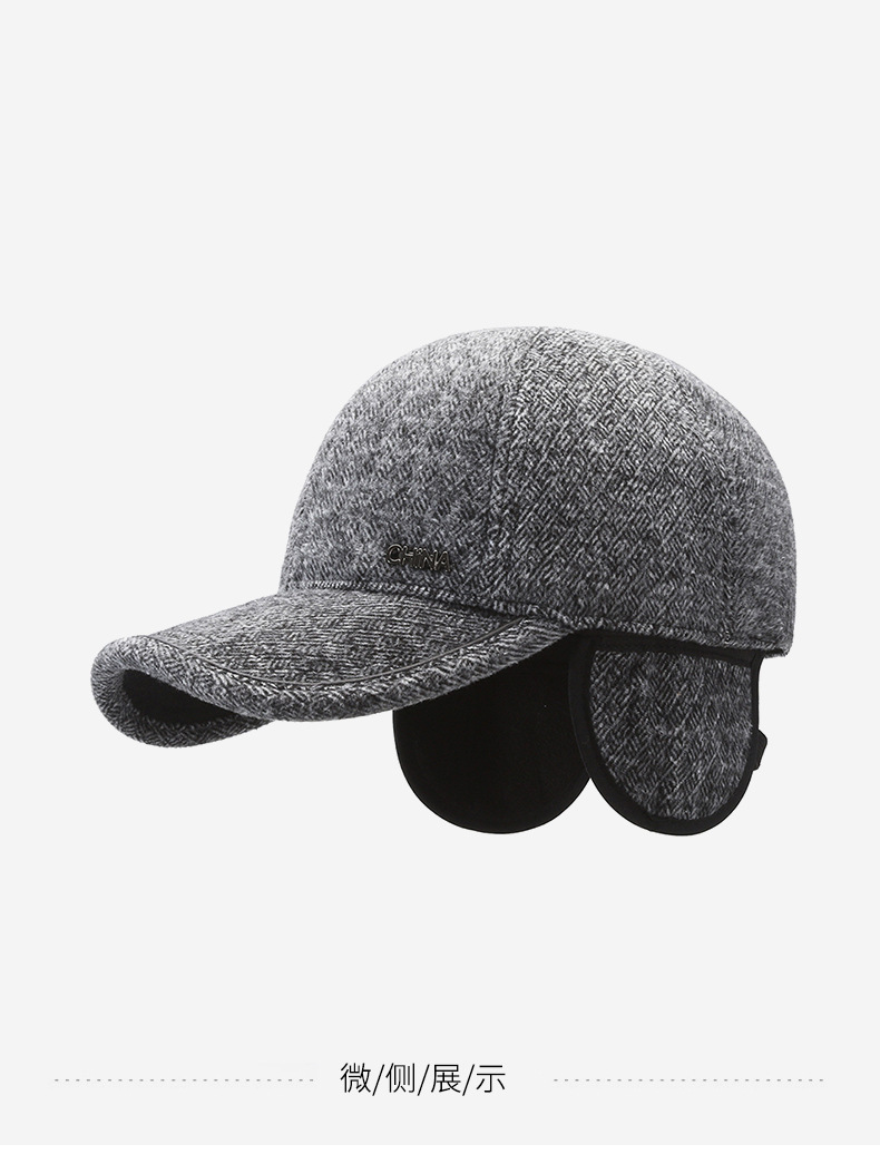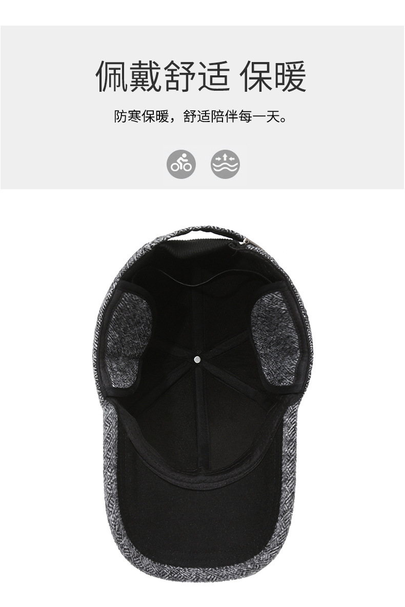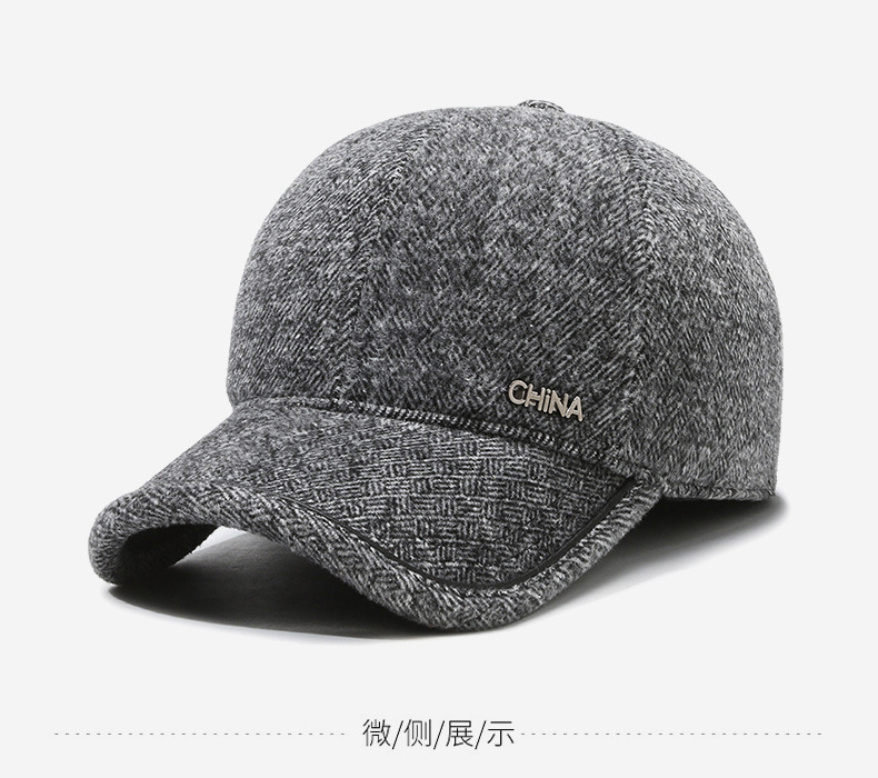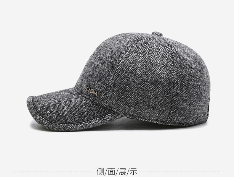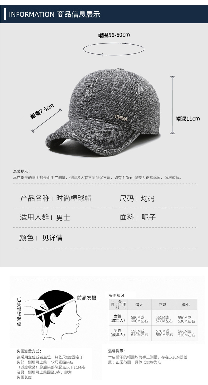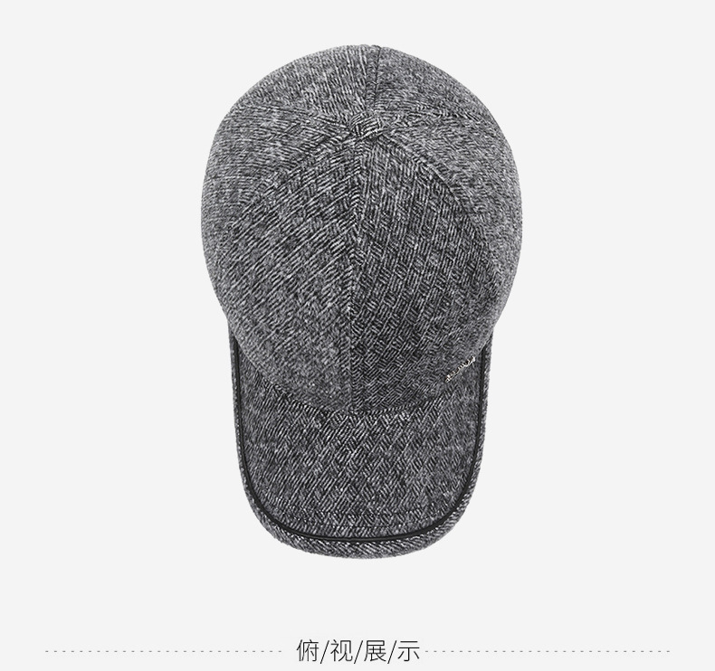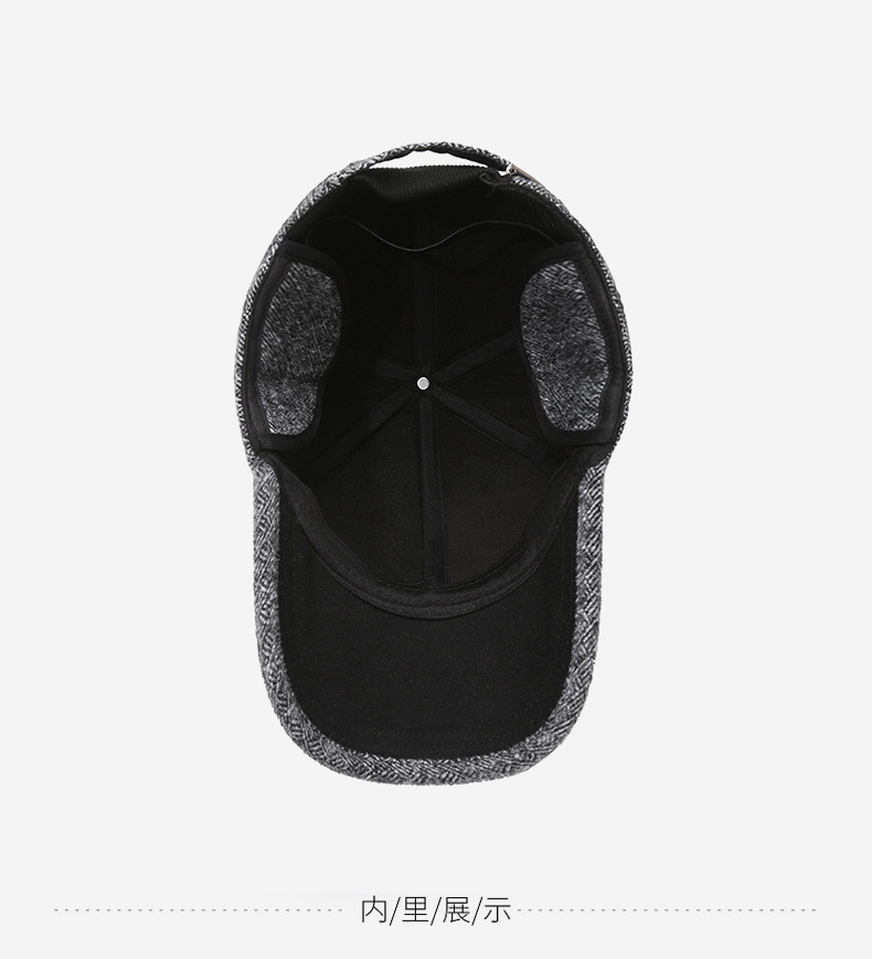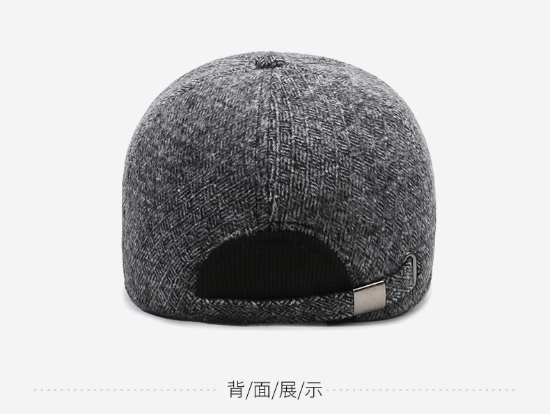 羊毛呢帽子男冬天防寒保暖户外滑雪后封口全封闭加大棒球帽鸭舌帽