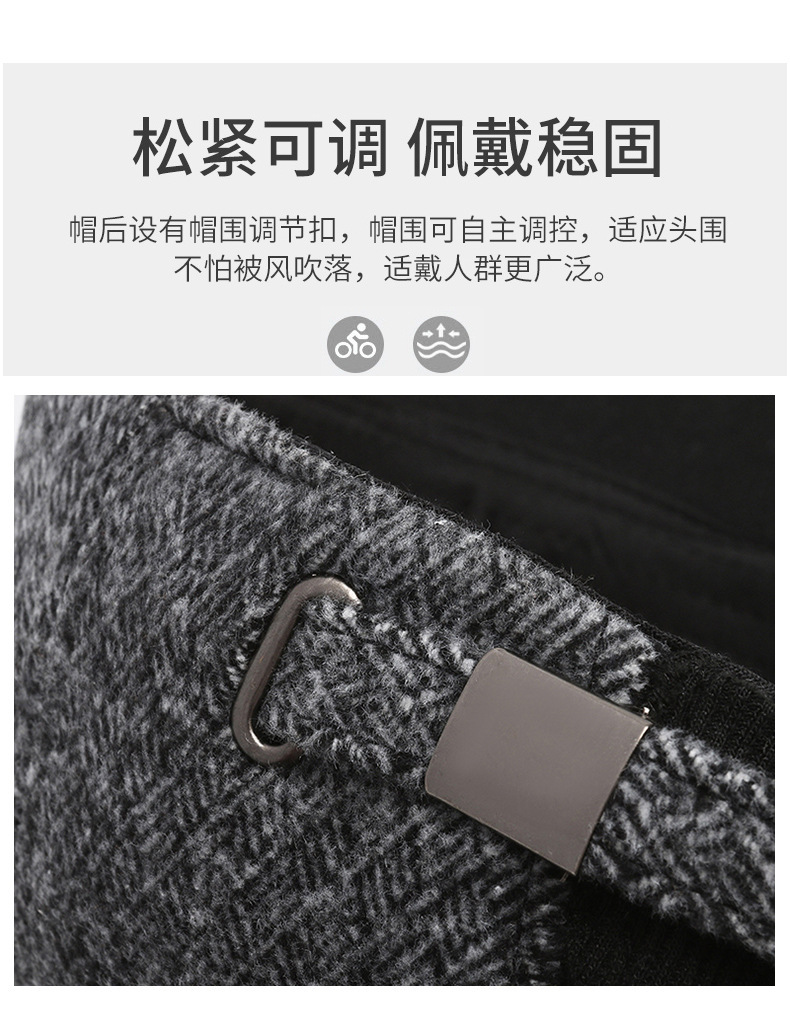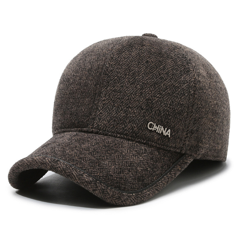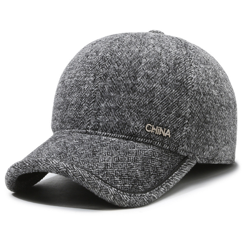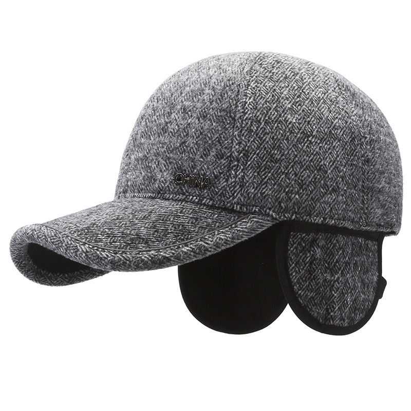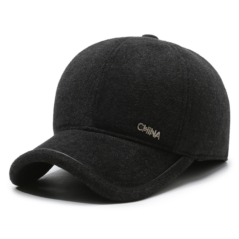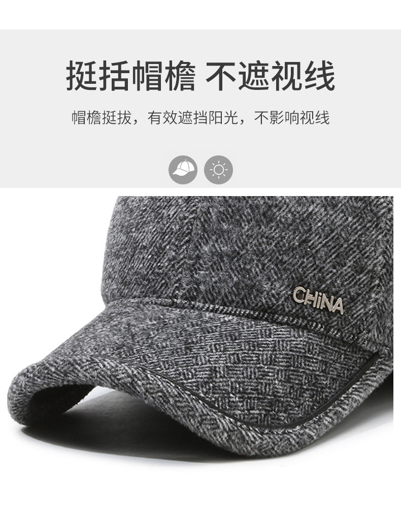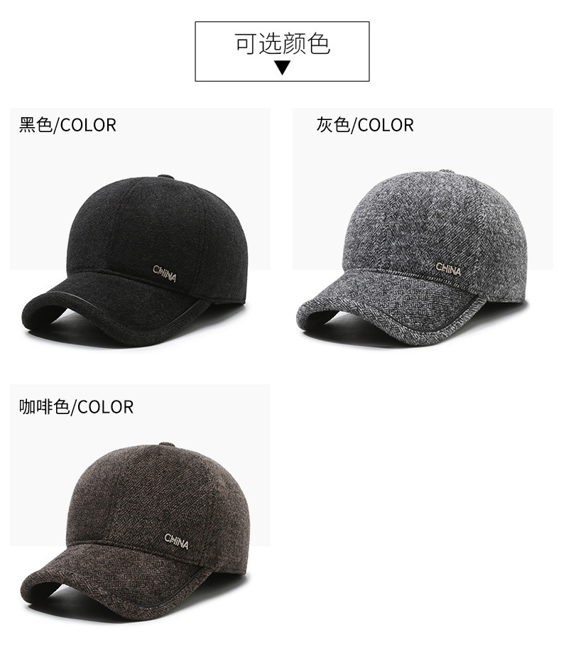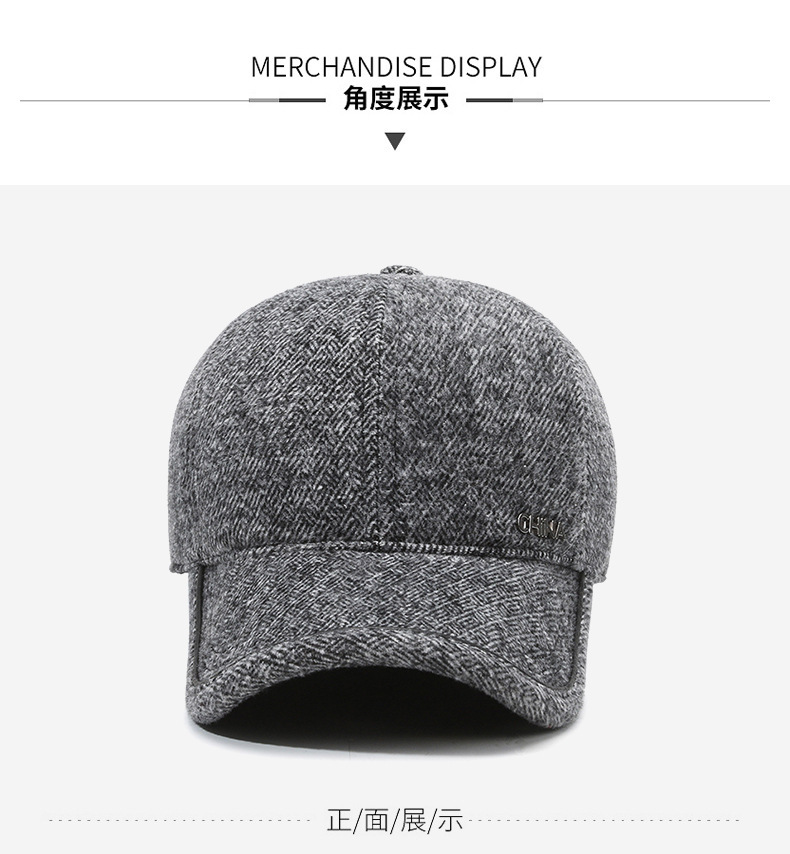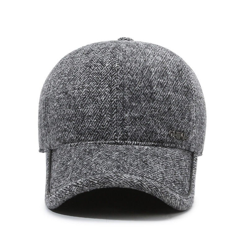 羊毛呢帽子男冬天防寒保暖户外滑雪后封口全封闭加大棒球帽鸭舌帽