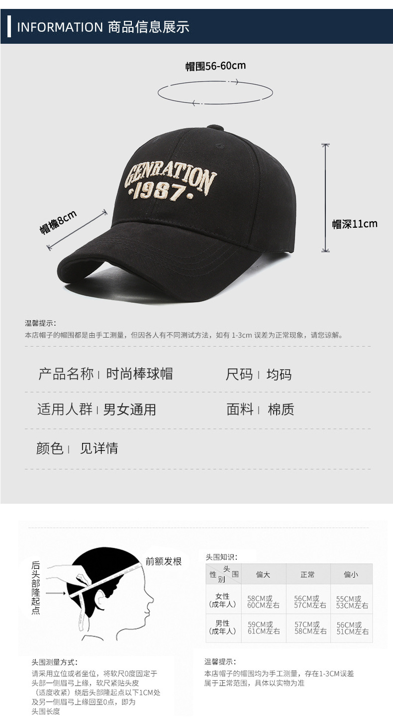 复古刺绣棒球帽子女春夏简约字母学生情侣休闲显脸小潮牌鸭舌帽男