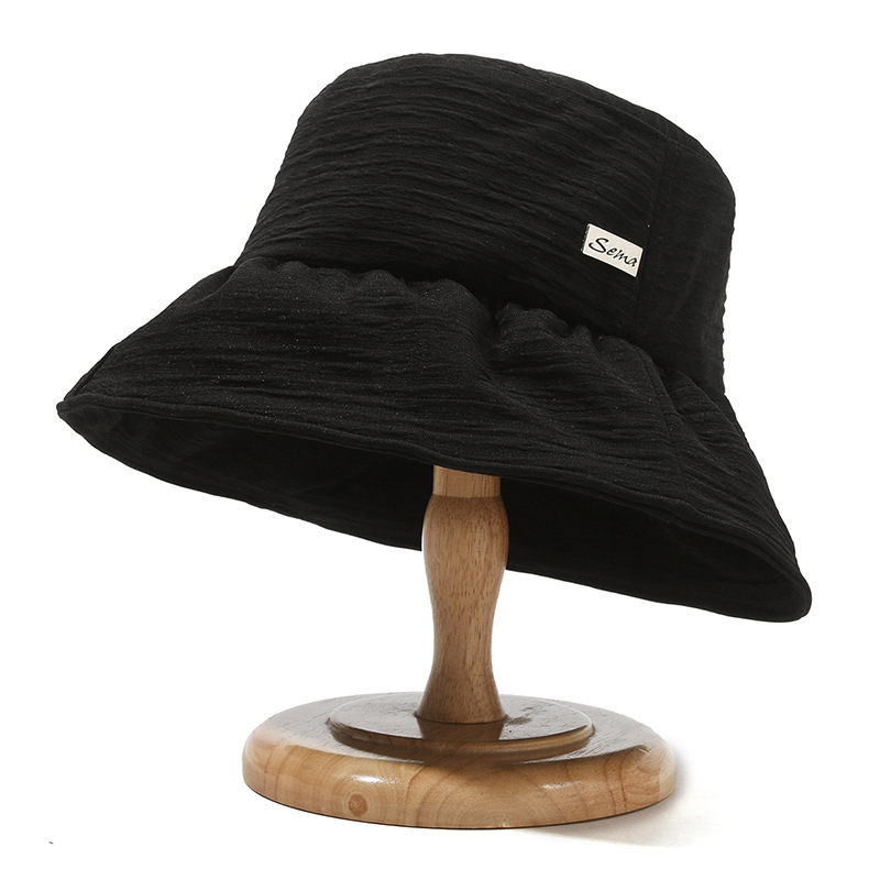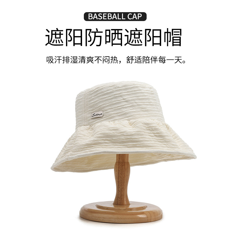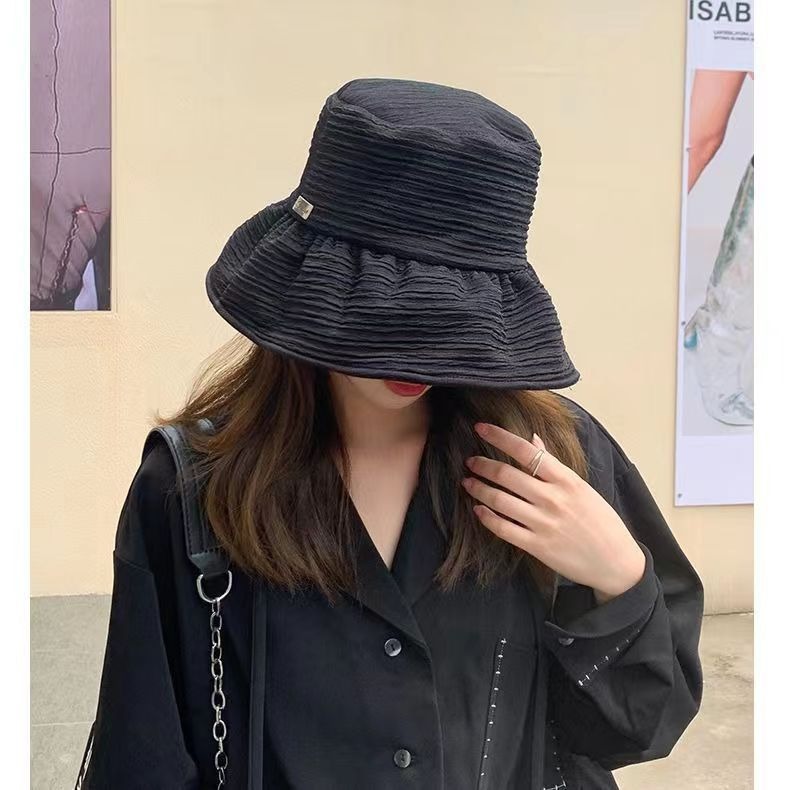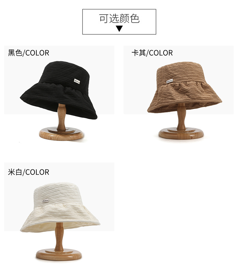 褶皱丝绸折叠帽子女夏季渔夫帽大头围太阳帽户外遮阳帽防晒帽礼帽